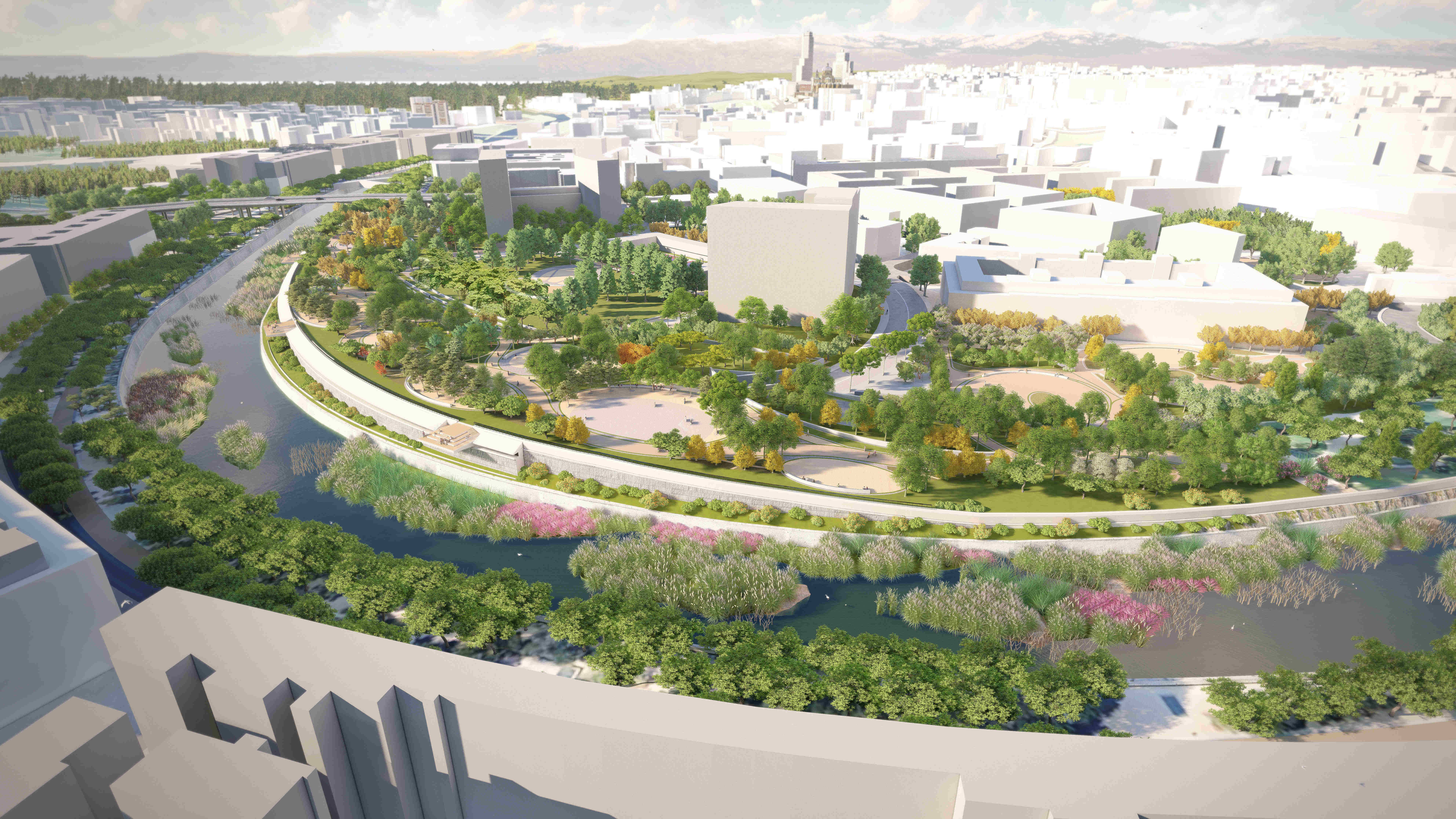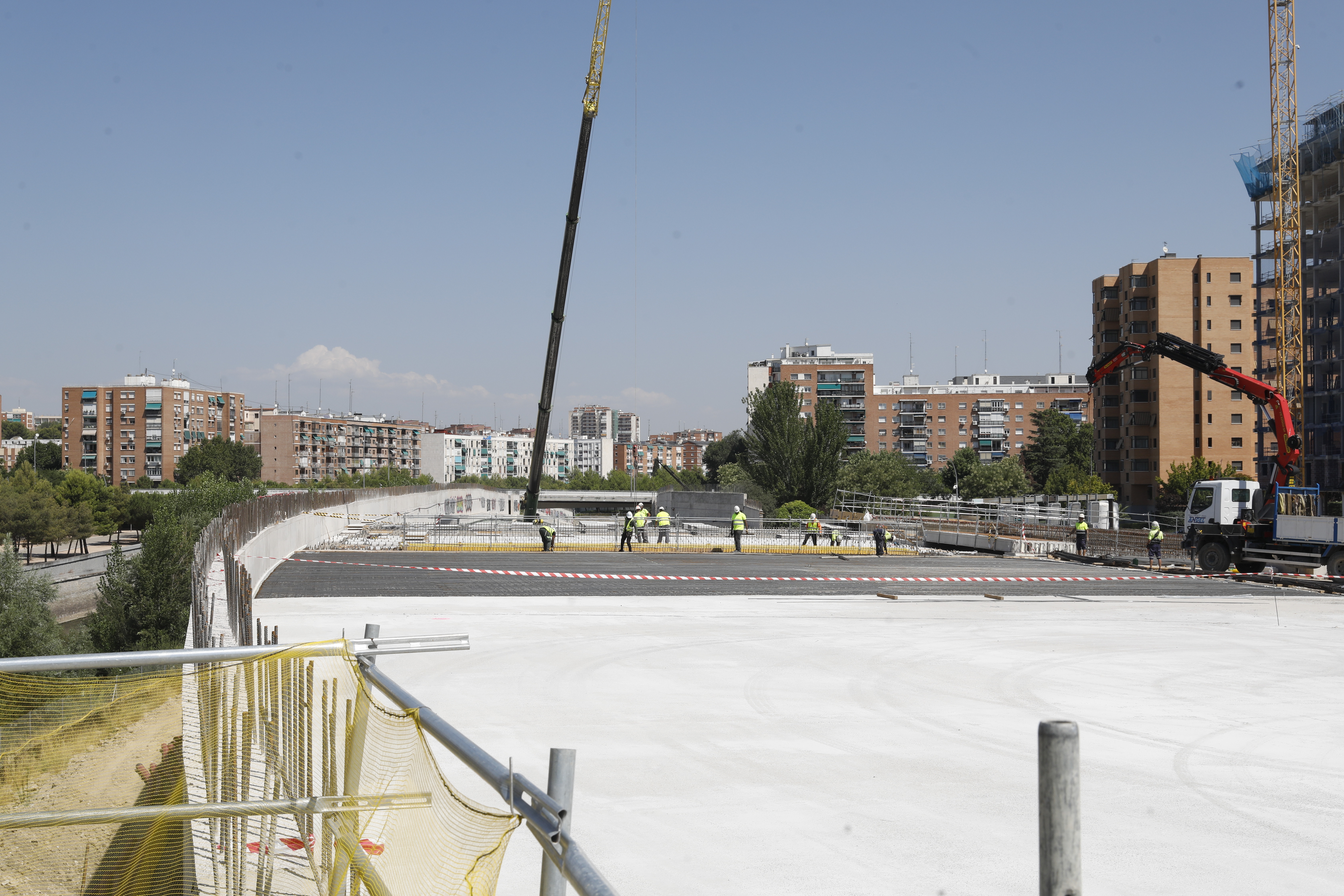Las obras de cubrición de la M-30 a su paso por el ámbito Mahou-Calderón permitirán culminar el parque Madrid Río, completando la continuidad ambiental, peatonal y paisajística de uno de los proyectos de transformación urbana más importantes de la ciudad en este siglo. Para ello, el Ayuntamiento está ejecutando la construcción de una estructura de 620 metros de longitud y 40 metros de anchura que conllevará la mejora de la seguridad de la vía y de la calidad del aire de la zona. /
