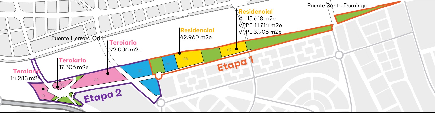 - El ámbito contará con 91.162 m2 de zonas verdes con tres parques principales