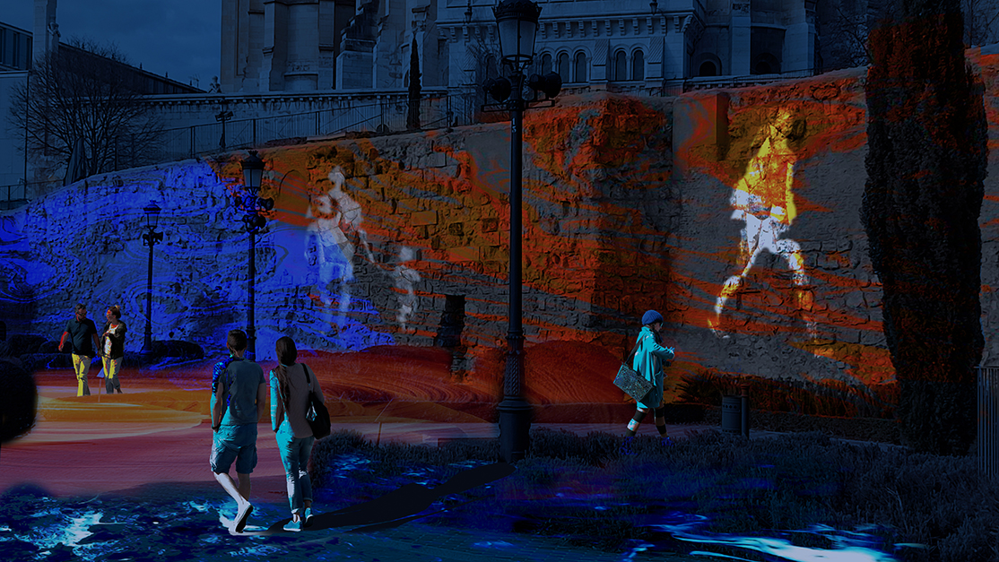 A través de un sistema de micrófonos y cámaras de circuito cerrado, se proyectará la imagen de los visitantes sobre la muralla y, a la vez, la piedra sobre ellos. Un entramado de vibraciones sonoras, olfativas, táctiles y visuales se transmiten por todo el espacio. La instalación contará, entre otras medidas de accesibilidad, con mochilas vibratorias, audioguía explicativa y paseos escénicos dirigidos a personas con discapacidad visual e intelectual.