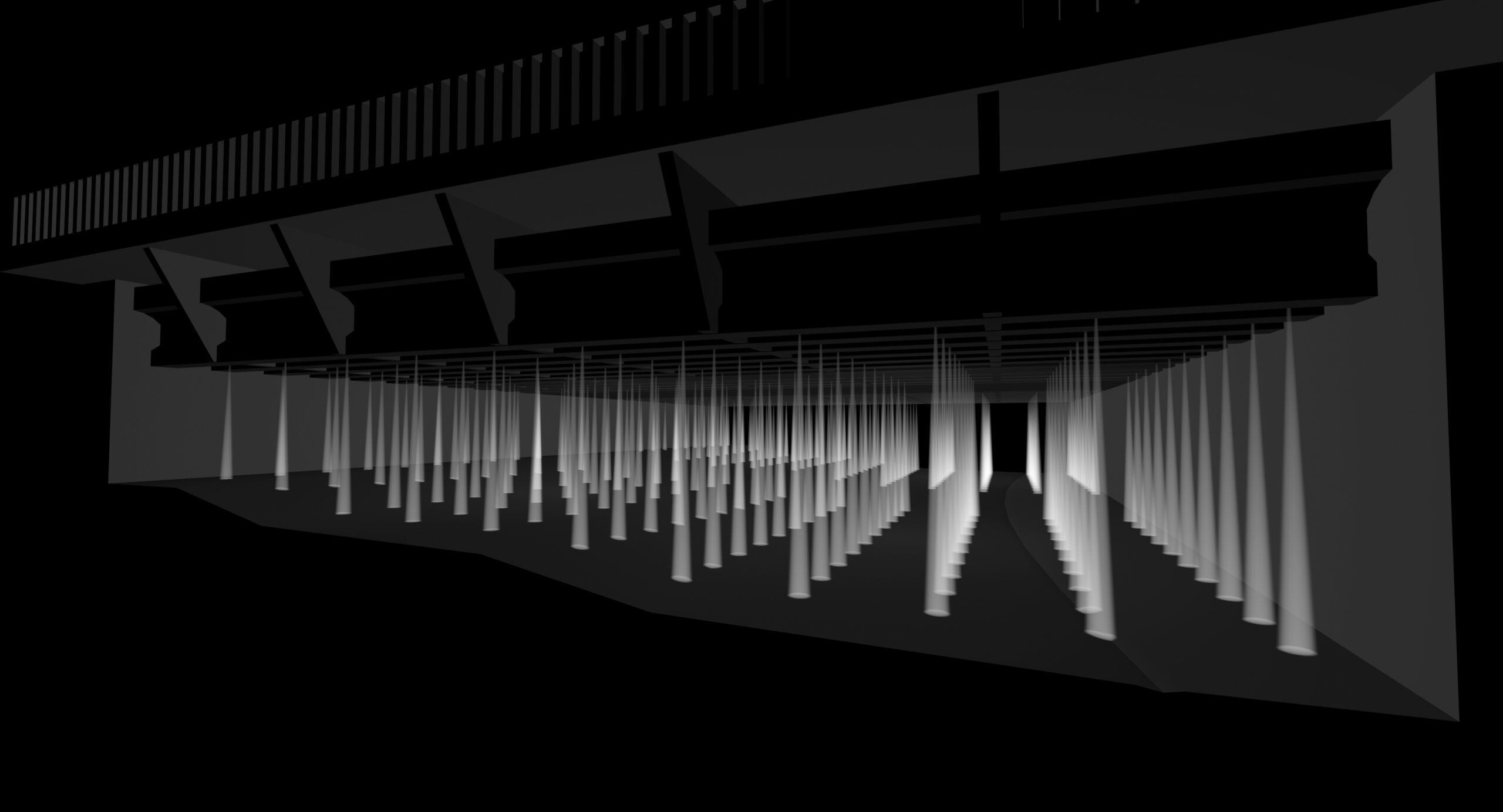 Bajo el Puente de Praga Hipóstila, ensayo de luz y sonido creado especialmente para el festival por Cube.bz, está inspirado en el monumentalismo de templos como Karnak o Luxor.