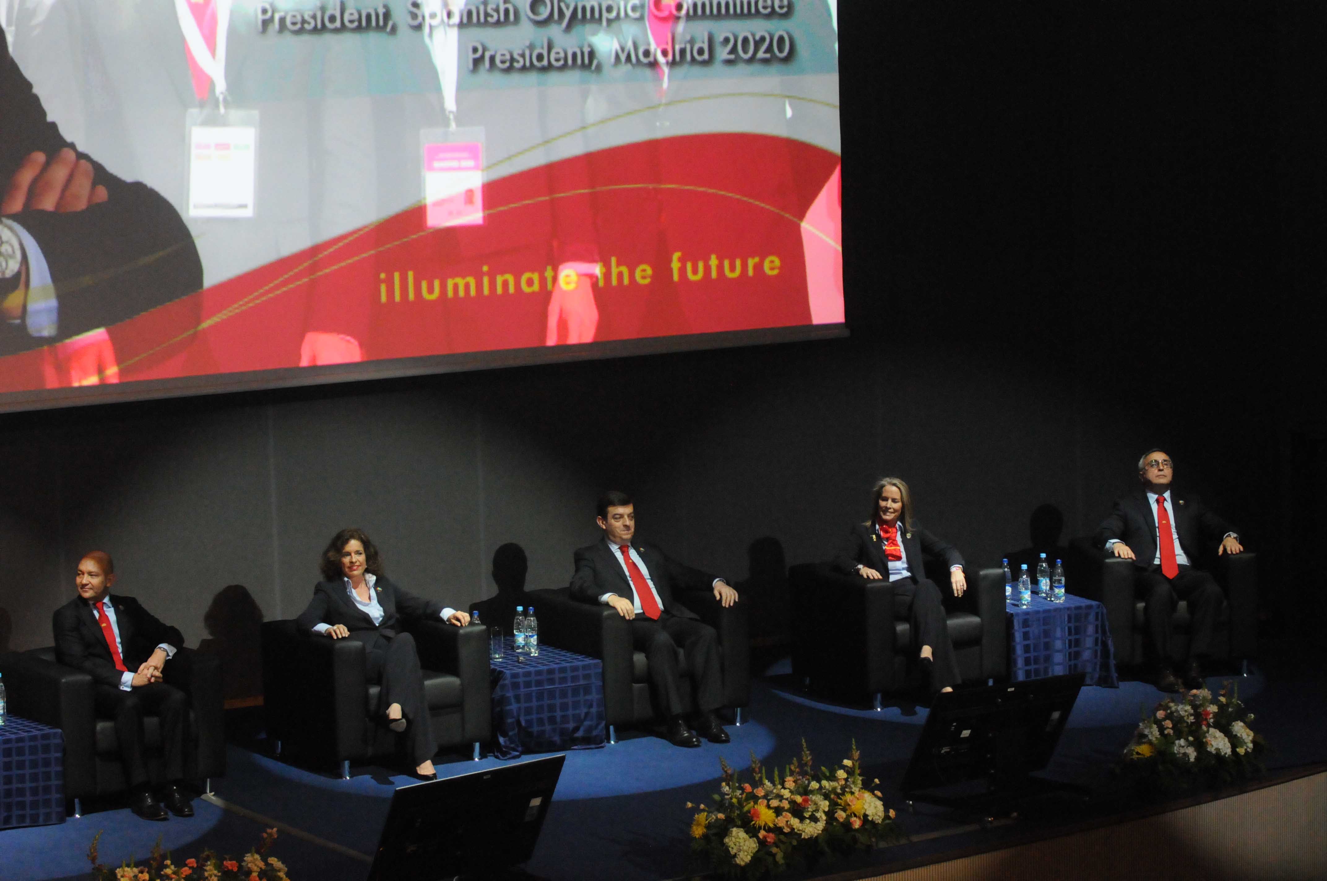 - Seis ponentes: la alcaldesa, Ana Botella; el presidente de Madrid 2020, Alejandro Blanco; secretario de Estado de Comercio, Jaime García-Legaz; Marisol Casado, miembro del COI, y los dos consejeros delegados de la candidatura, Víctor Sánchez y Theresa Zabell