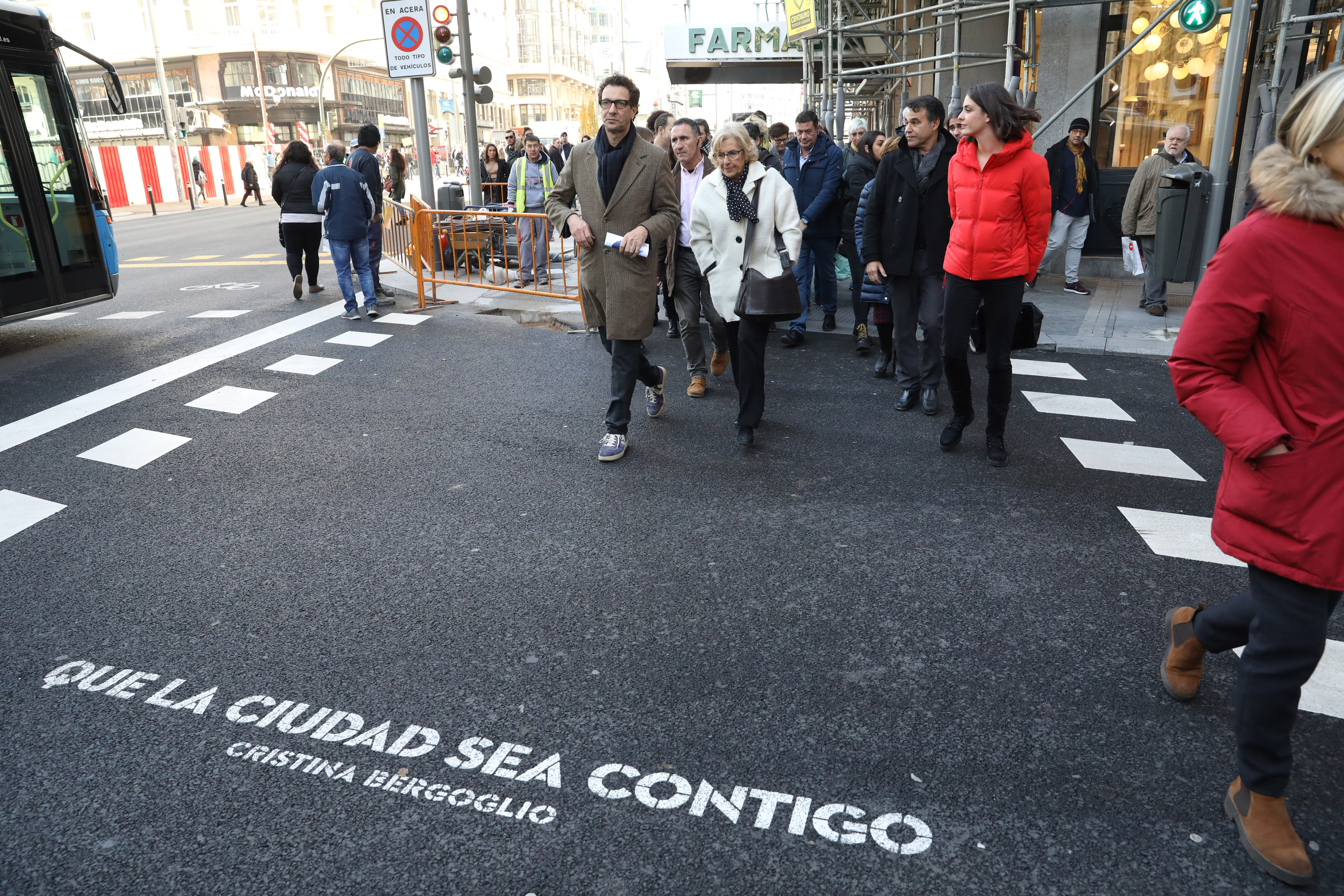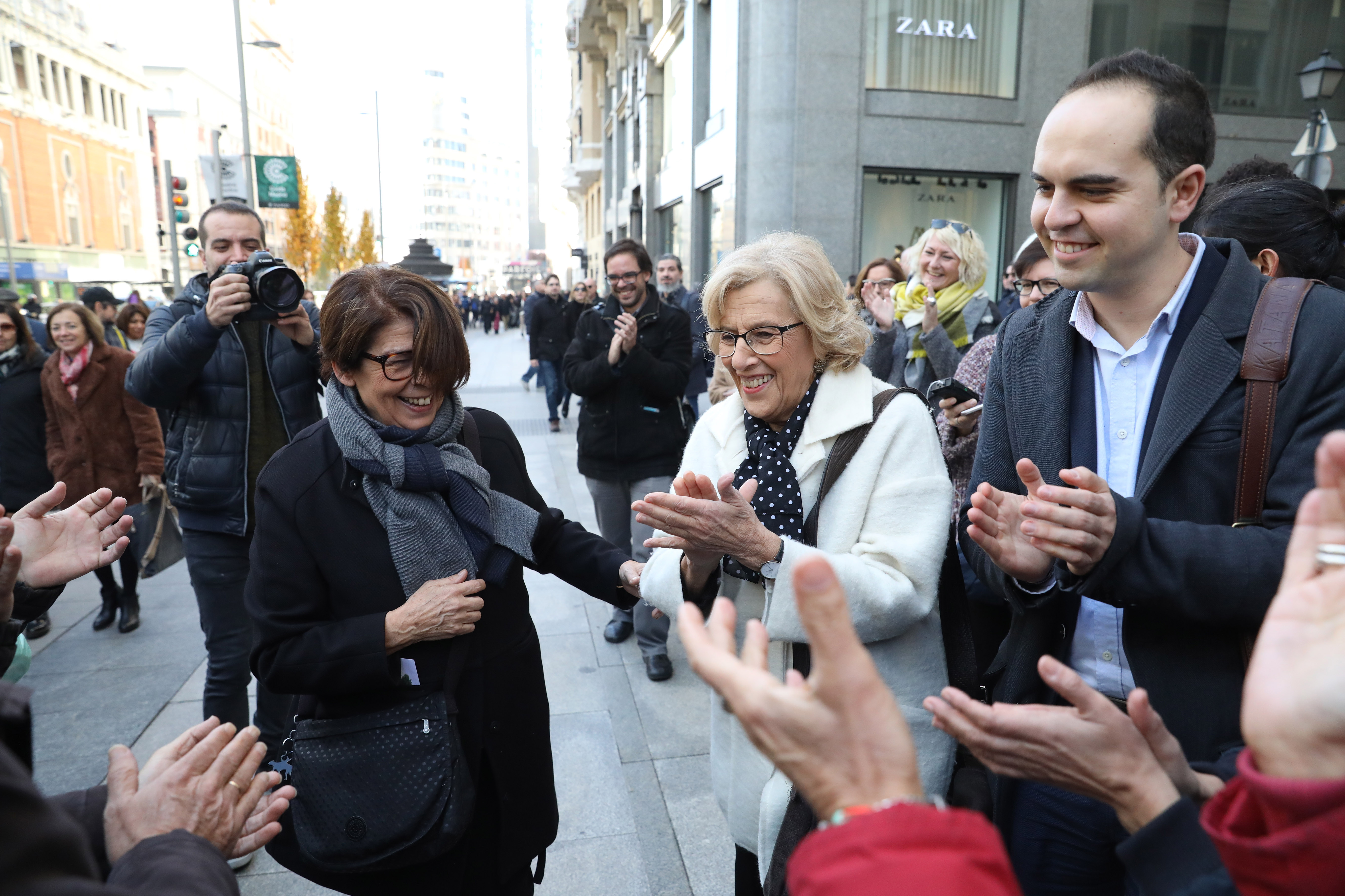 Madrid Central ya está en vigor. Este 30 de noviembre, a las 00.00, ha arrancado esta zona de bajas emisiones, incluida en el Plan de Calidad del Aire y Cambio Climático, con el objetivo de reducir la contaminación, el ruido y mejorar el reparto del espacio público. Hoy la alcaldesa de Madrid, Manuela Carmena, la delegada de Medio Ambiente y Movilidad, Inés Sabanés, el delegado de Desarrollo Urbano Sostenible, José Manuel Calvo y el delegado de Economía y Hacienda y distrito Centro, Jorge García Castaño, han presentado la entrada en vigor de Madrid Central y han realizado un recorrido desde la Plaza de Callao hasta la Plaza de Pedro Zerolo bajando por la Gran Vía.