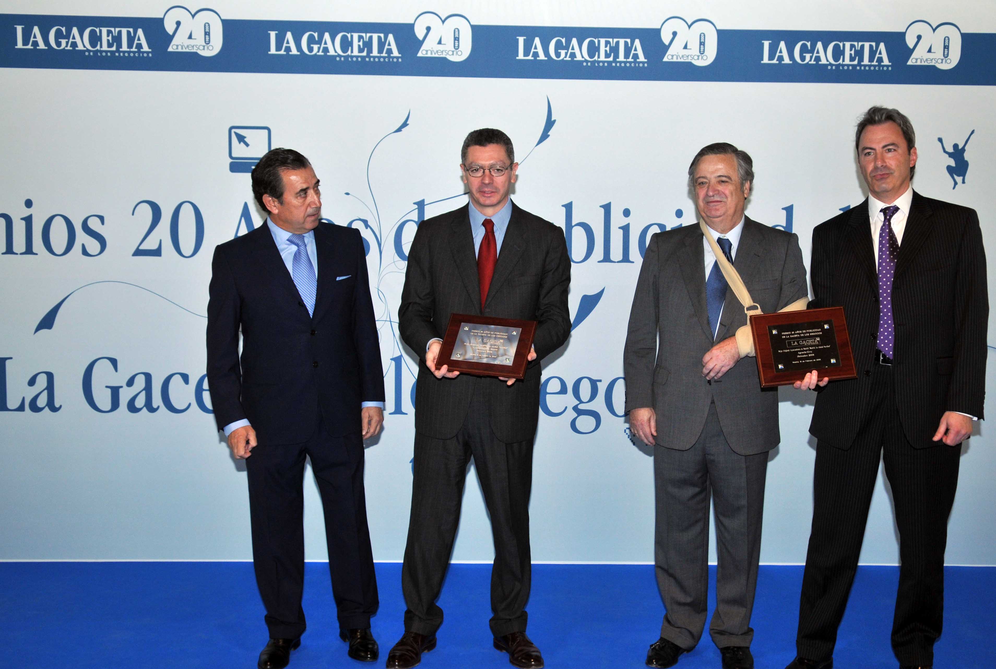El alcalde de la Ciudad de Madrid, Alberto Ruiz-Gallardón, ha recogido este mediodía en el pabellón Cecilio Rodríguez de El Retiro el premio de Gaceta de los Negocios por la campaña publicitaria "Madrid, Ciudad Navidad". Gallardón ha hecho entrega de otros galardones a diferentes anunciantes y agencias a lo largo del acto que conmemoraba los 20 años de la publicación.