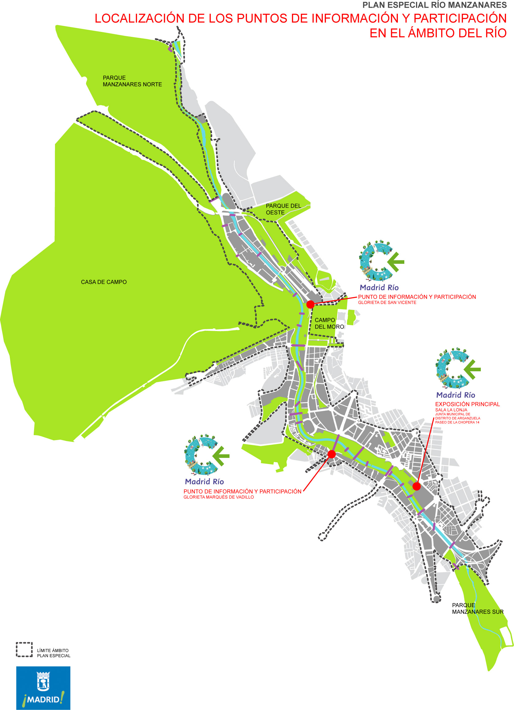 - A través de la web www.munimadrid.es/madridrio se puede acceder permanentemente a la información actualizada sobre el proyecto y, desde el día 21, presentar alegaciones y sugerencias, al igual que por el correo madridrio@munimadrid.es