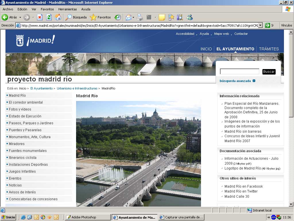 Un proyecto que los madrileños han hecho suyo. Eso es, entre otras muchas cosas, Madrid Río. Lo demuestran, por ejemplo las 4.232 alegaciones que presentaron los madrileños al Plan Especial; las más de 1.000 peticiones de información o sugerencias, o las 45.225 visitas recibidas en los tres puntos de información. Conscientes de estos datos, el Gobierno de Ruiz-Gallardón, ha querido dar un paso más y llevar el que el alcalde ha calificado como "la más ambiciosa transformación acometida en Madrid", a las redes sociales: Facebook, Twitter, Flickr, Youtube y Google Earth. "Una de las revoluciones asociadas a Internet es el hecho de que el ciudadano -subrayó el alcalde- ya no quiere tener un fácil acceso a la información, sino que quiere compartirla, comentarla, proponer cambios o hacer críticas. Madrid Río es prueba de ello".