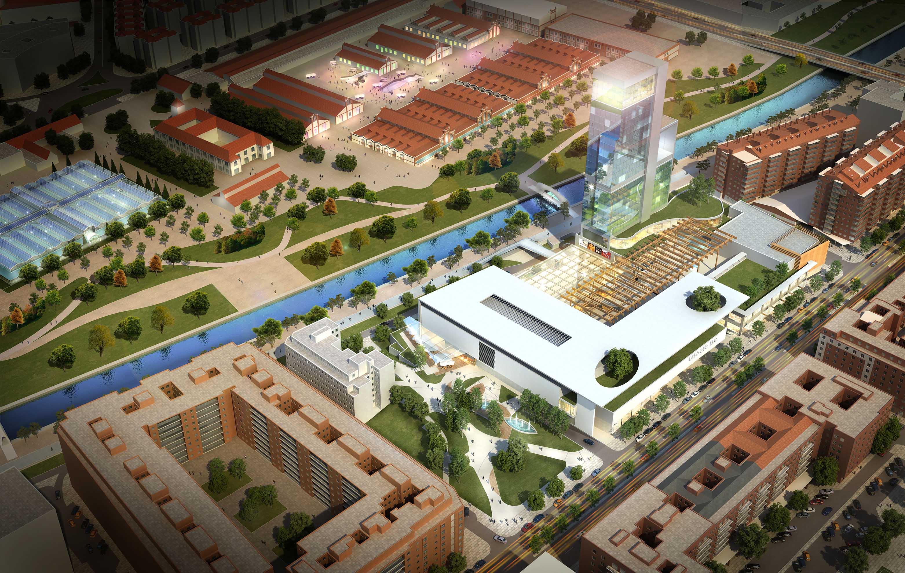 Con este diseño la actividad urbana continúa y se extiende por el interior del complejo, gracias a los espacios abiertos, a los recorridos peatonales y a un gran espacio abierto al río a modo de gran terraza urbana, desde donde se podrá contemplar una panorámica de la ciudad y el propio parque de Madrid Río.