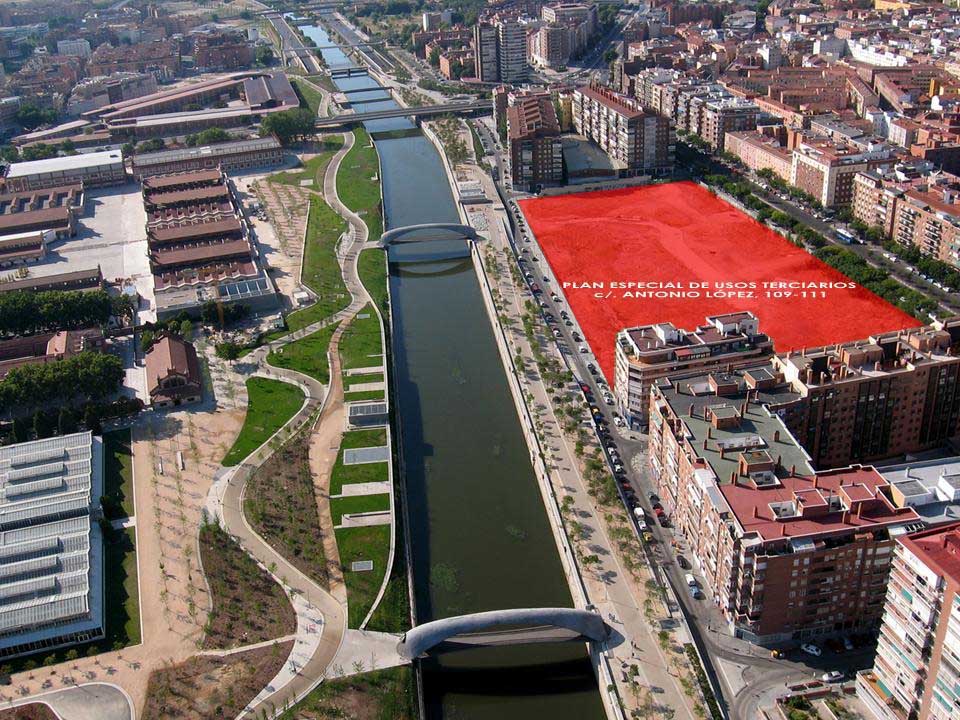 La parcela, actualmente vacía, tiene 20.921 metros cuadrados de superficie y está ubicada entre la avenida del Manzanares y las calles de Antonio López, San Zacarías y Eugenio Caxes. Este ‘balcón urbano' devolverá la continuidad, ahora interrumpida, de la actividad de Antonio López -uno de los ejes comerciales principales de la ciudad-, ya que la planta baja del complejo estará ocupada por locales comerciales en su fachada a esa calle.