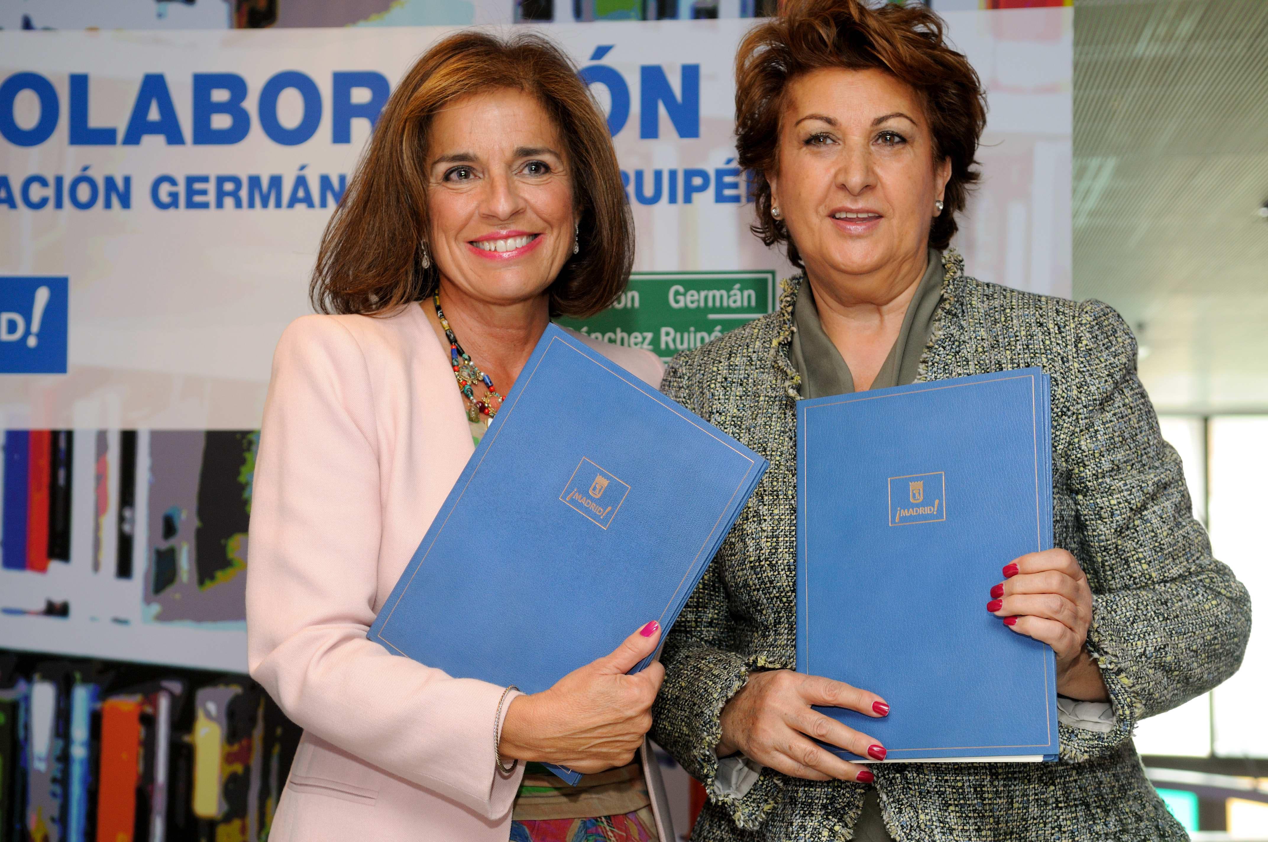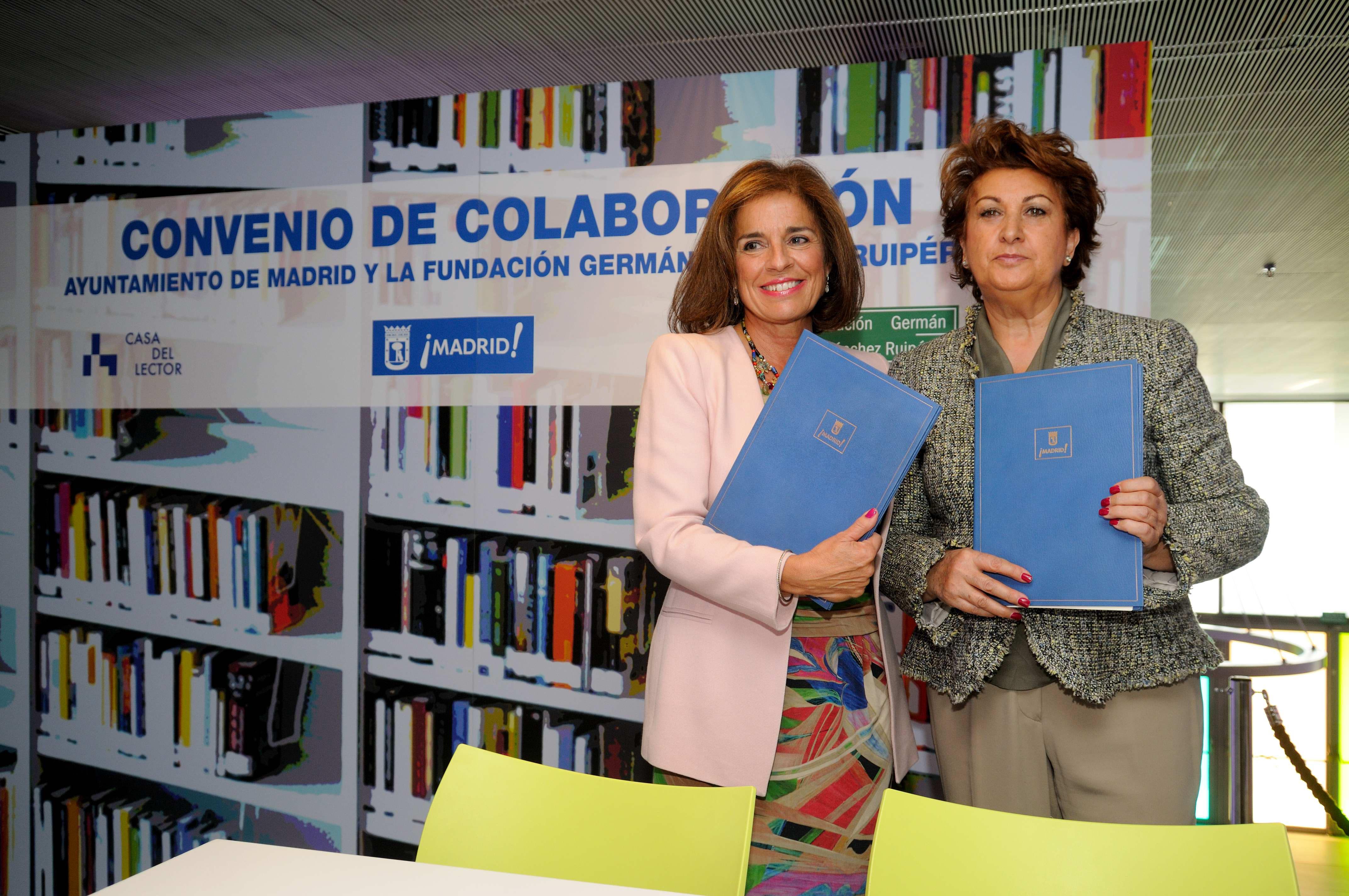La alcaldesa de Madrid, Ana Botella, ha firmado hoy un convenio con la presidente de la Fundanción Germán Sánchez Ruipérez, Isabel de Andrés, para fomentar la lectura entre los ciudadanos.