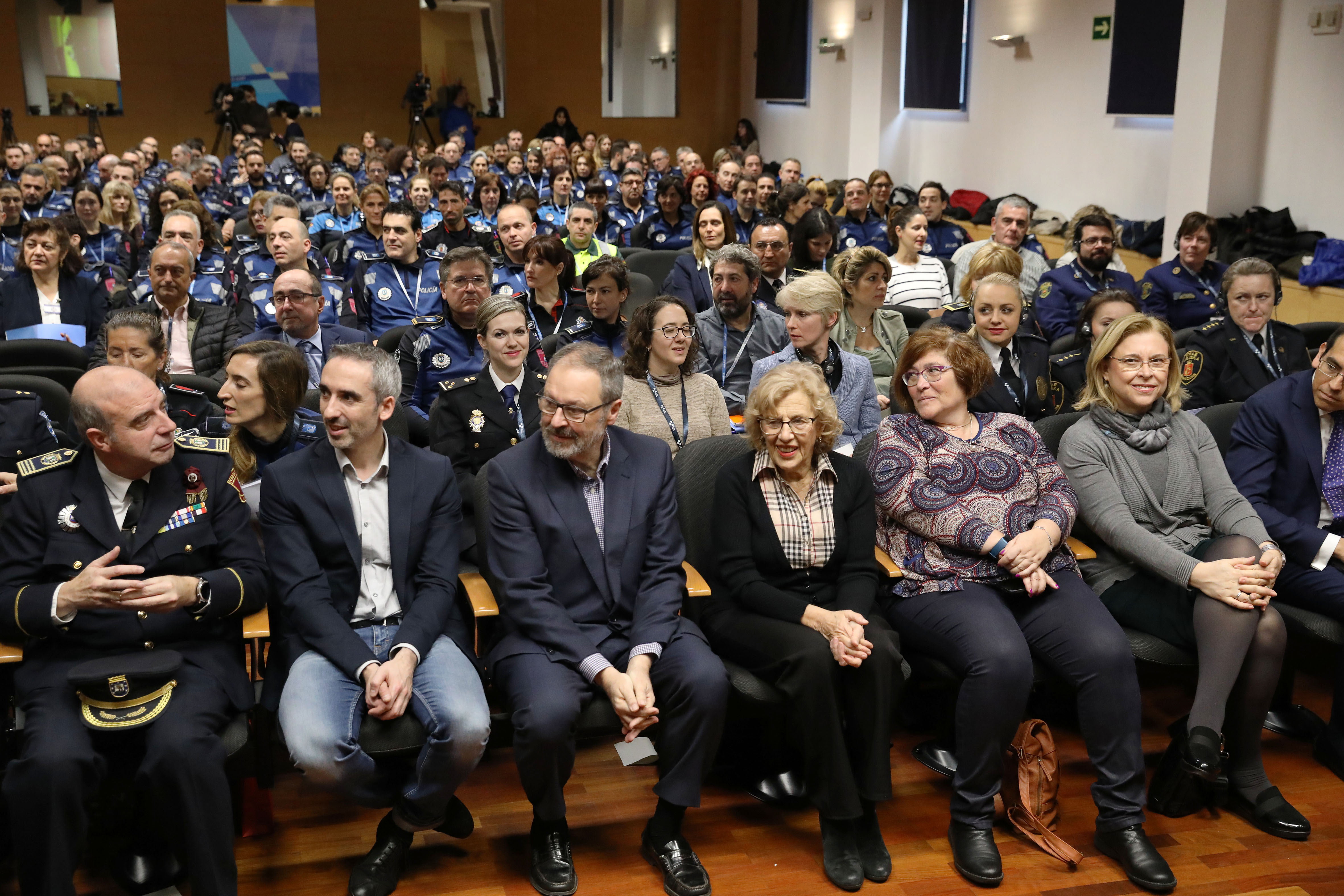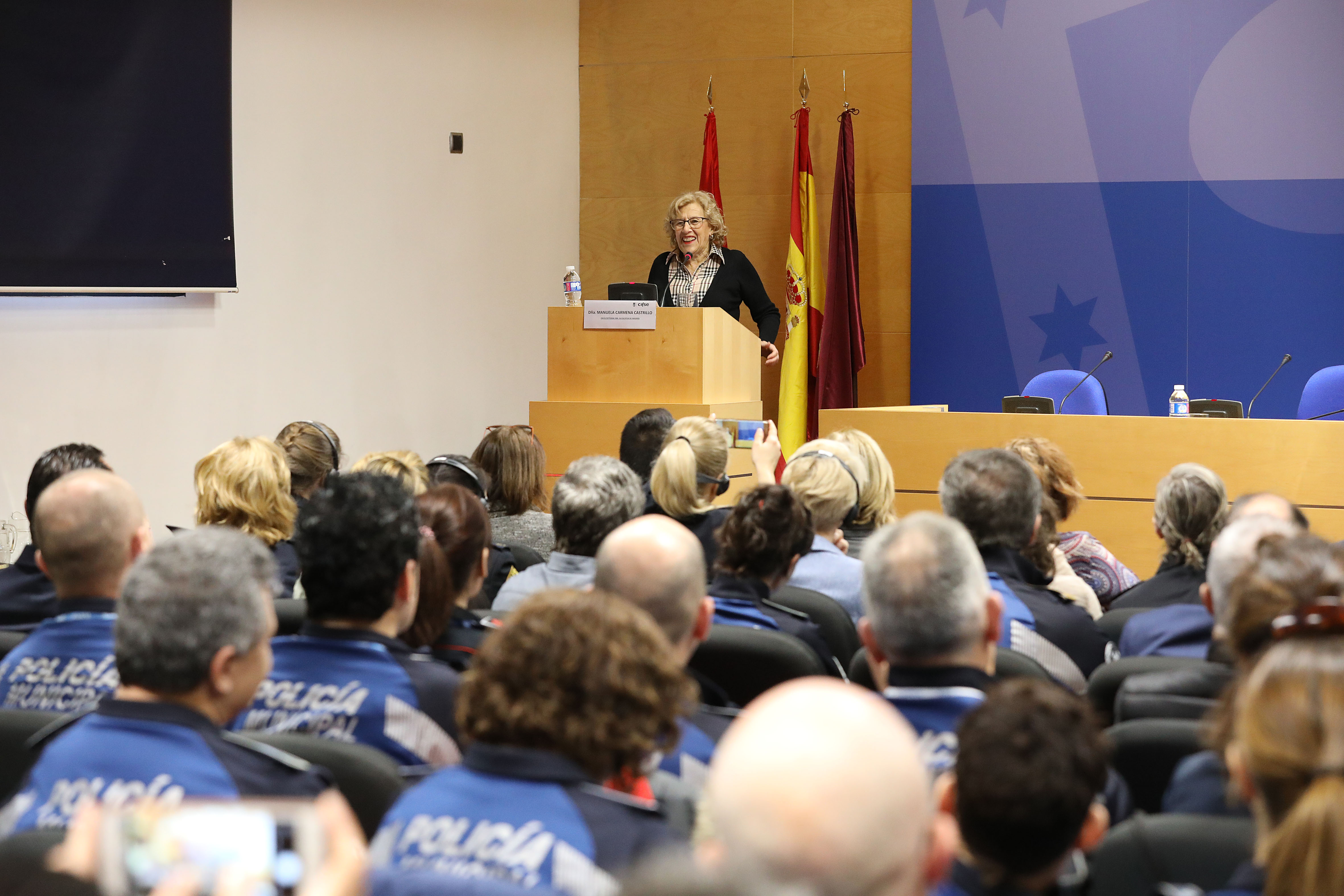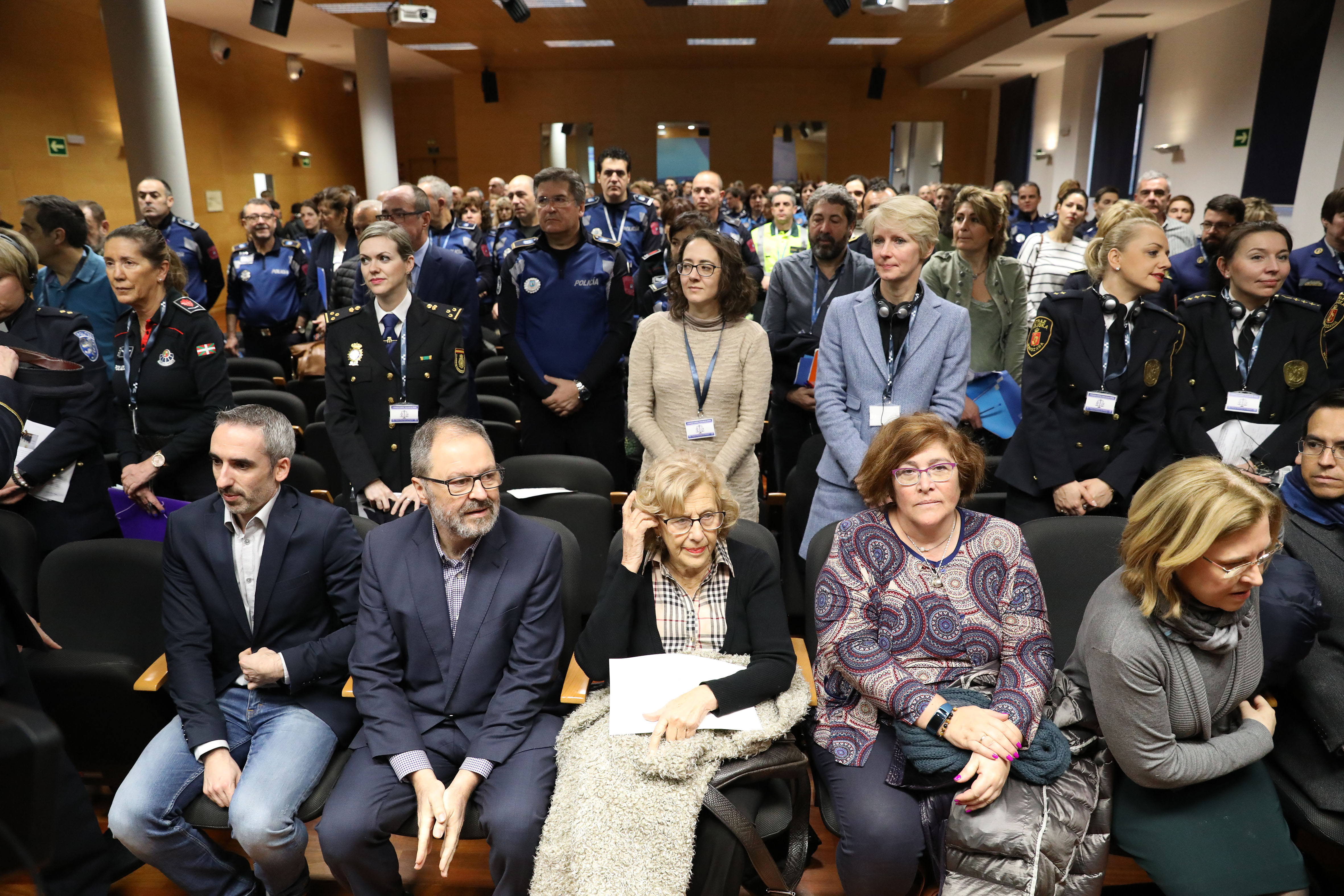 La alcaldesa de Madrid, Manuela Carmena, ha asistido esta mañana a la inauguración del I Congreso Europeo “Igualdad de Género en los cuerpos policiales”, que ha organizado la Policía Municipal de Madrid, y al que asisten representantes de cuerpos policiales de diversas ciudades españolas y europeas. En el acto ha estado también el delegado del Área de Salud, Seguridad y Emergencias, Javier Barbero.