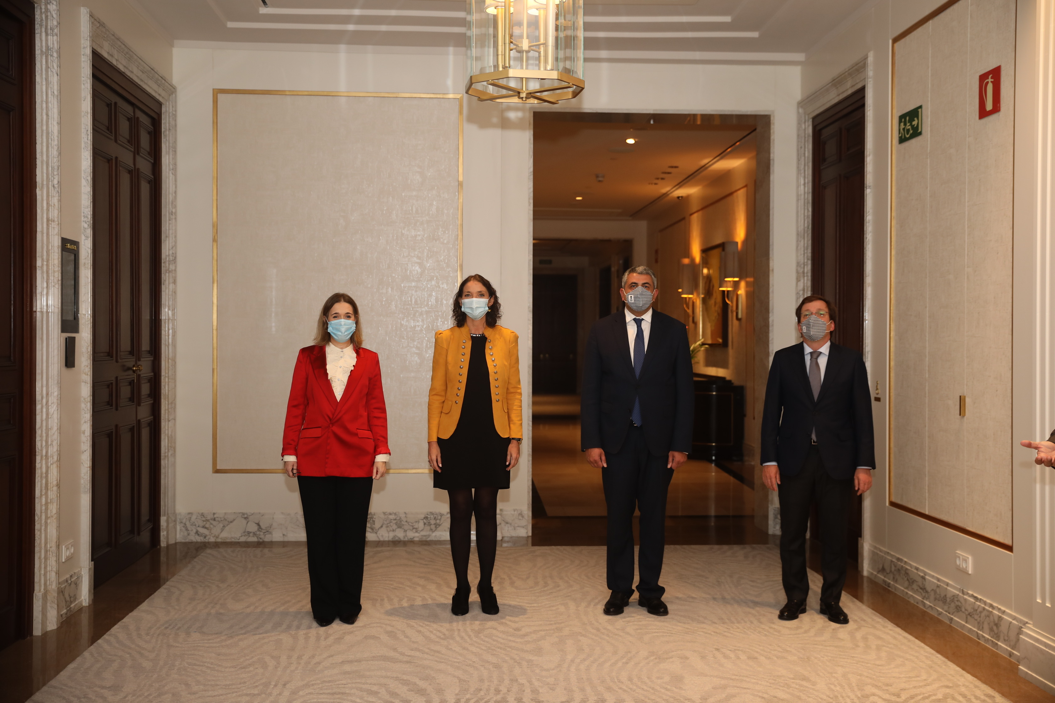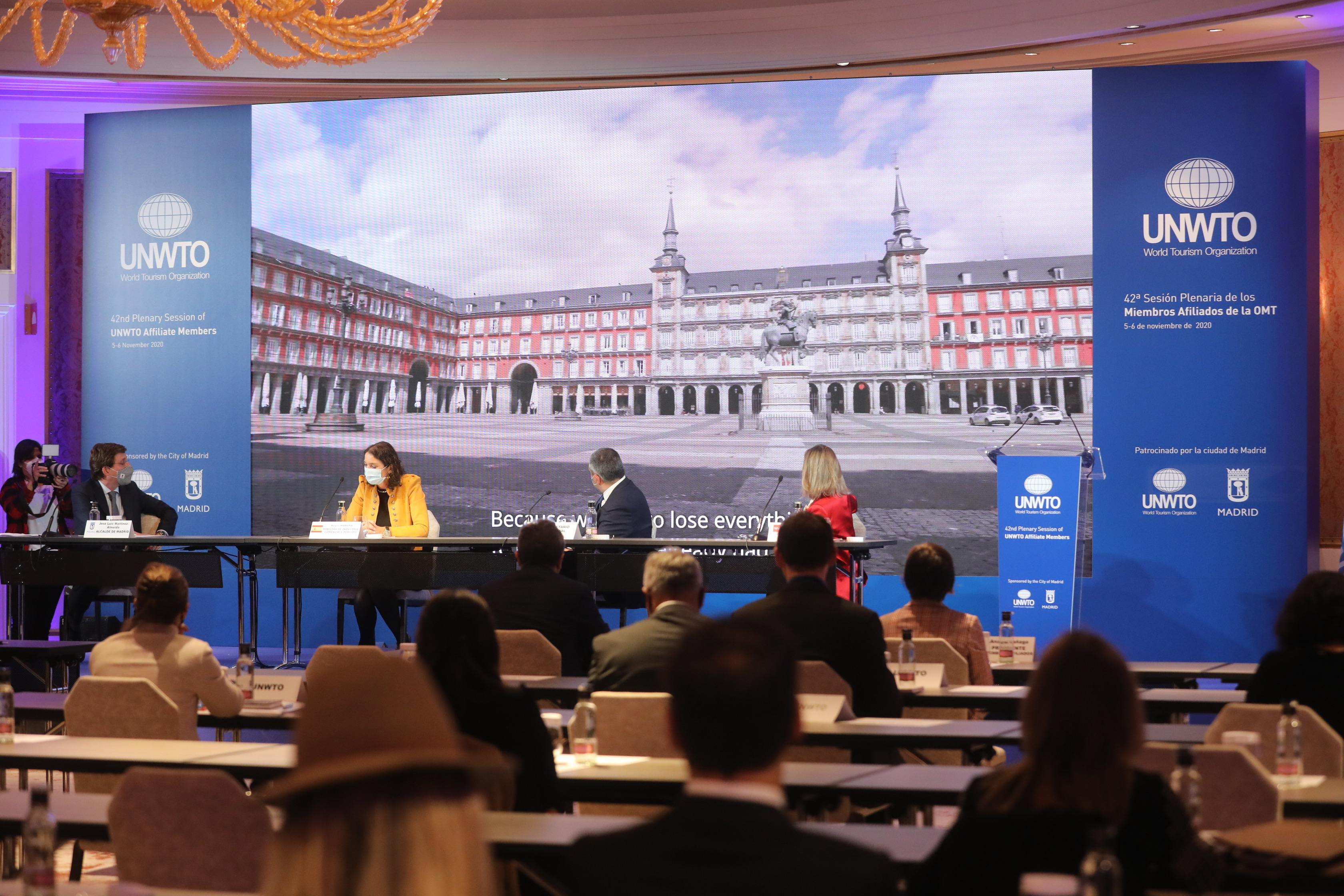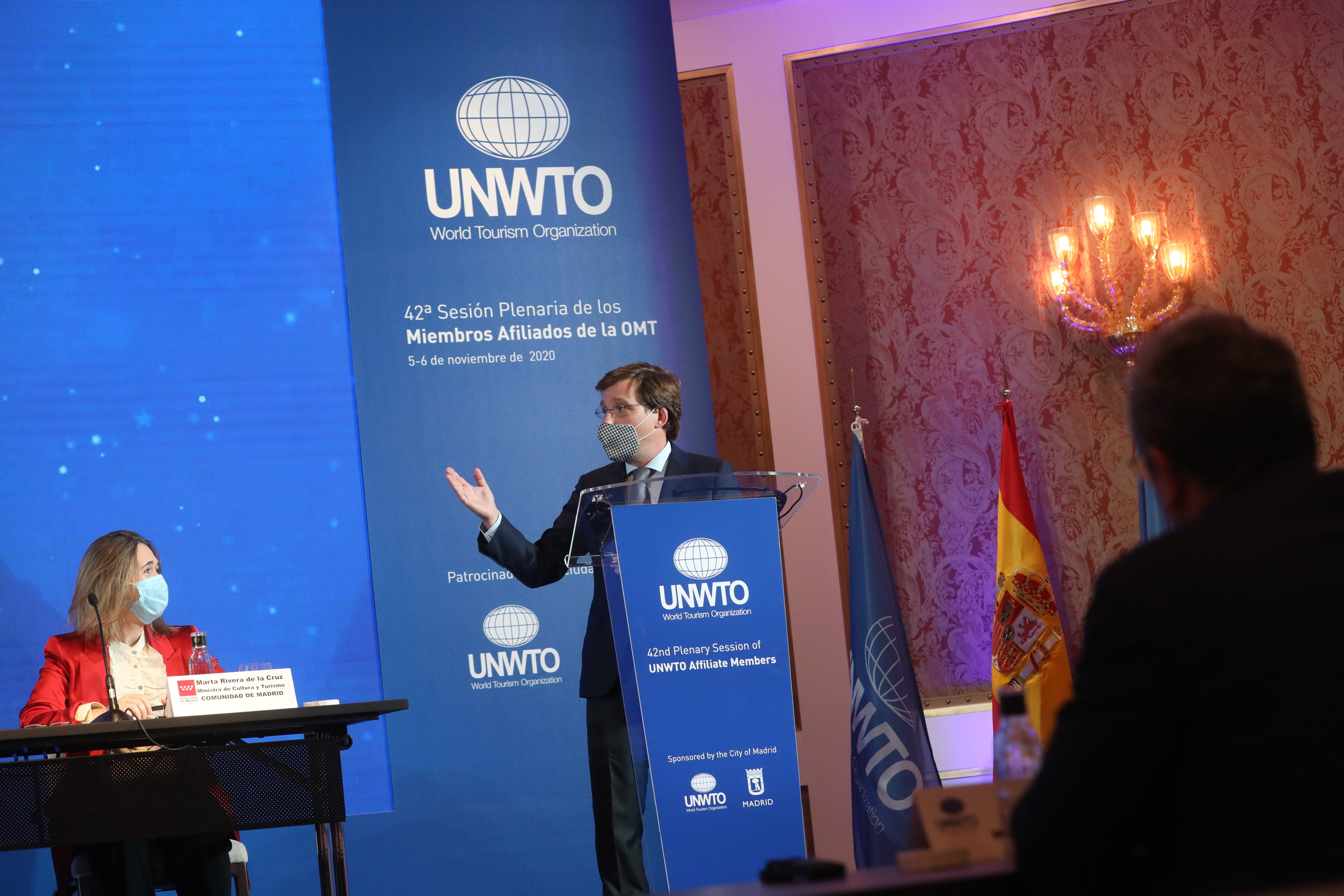 Madrid se convierte estos días en escenario de análisis de los nuevos desafíos que la pandemia de COVID-19 ha supuesto para el sector turístico. La capital acoge la 42ª sesión plenaria de miembros afiliados de la Organización Mundial del Turismo (OMT). El alcalde de Madrid, José Luis Martínez-Almeida, junto a la ministra de Industria, Comercio y Turismo, Reyes Maroto, y la consejera de Turismo de la Comunidad de Madrid, Marta Rivera de la Cruz, ha dado la bienvenida oficial a todos los participantes en esta reunión que se celebra hoy y mañana en el hotel Four Seasons Madrid y en la que participa la concejala delegada de Turismo, Almudena Maíllo.