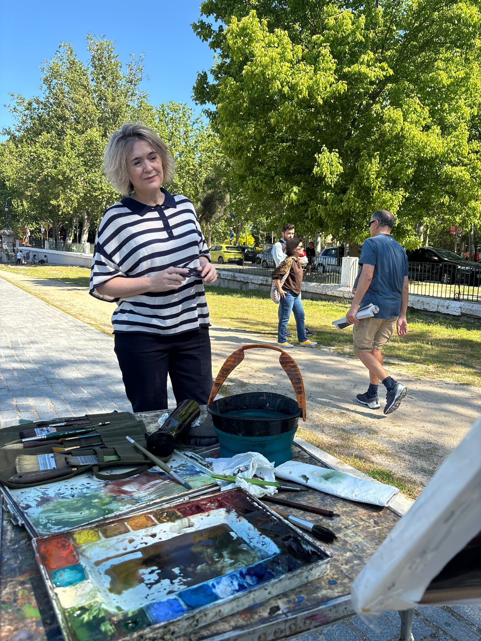 La delegada de Cultura, Turismo y Deporte, Marta Rivera de la Cruz, ha asistido hoy a la XXIV Jornada de Pintura al Aire Libre en la Ermita de San Antonio de la Florida, coincidiendo con la celebración del Día Internacional de los Museos. Esta iniciativa, impulsada por el Ayuntamiento para fomentar la actividad artística y creativa, ha reunido a artistas que han pintado sus obras al aire libre en uno de los entornos más singulares del patrimonio madrileño. Las piezas, realizadas con libertad de estilo y técnica, han girado en torno a la ermita y sus alrededores, incluyendo referencias a las pinturas de Goya que decoran su interior.