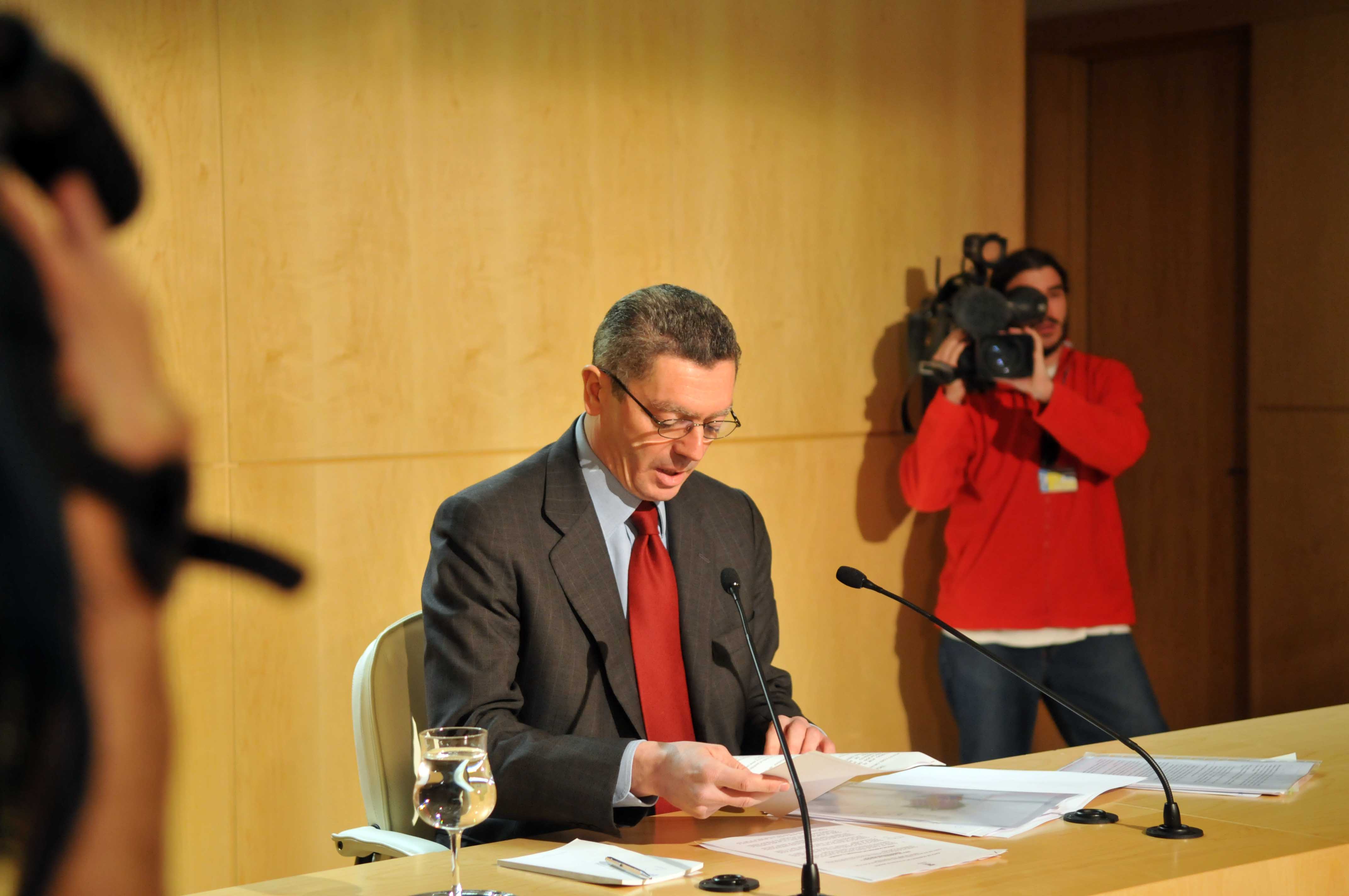El alcalde, Alberto Ruiz-Gallardón, durante la rueda de prensa celebrada tras la Junta de Gobierno en la que ha anunciado la constitución de una comisión para organizar los actos conmemorativos del centenario de la Gran Vía