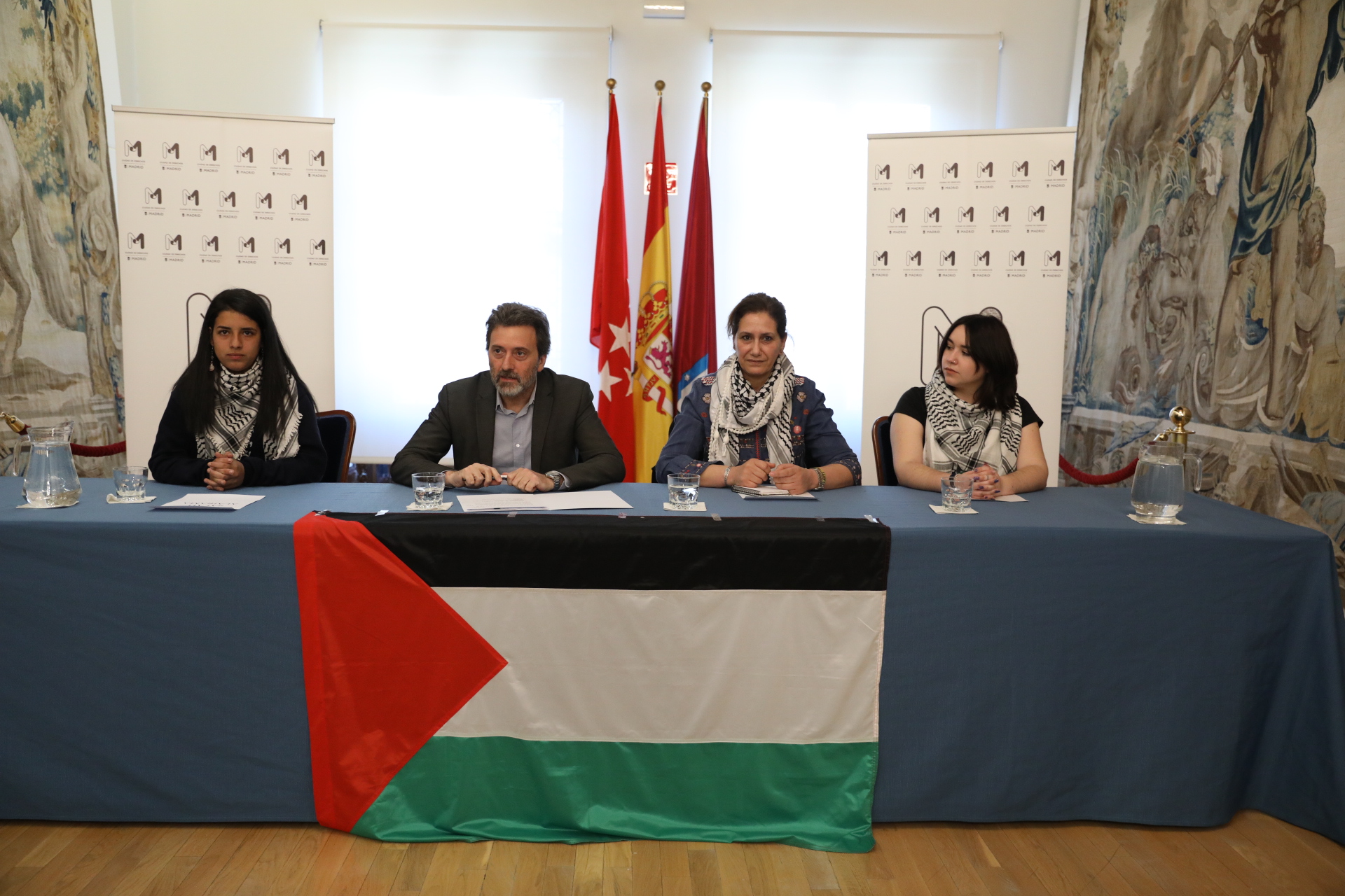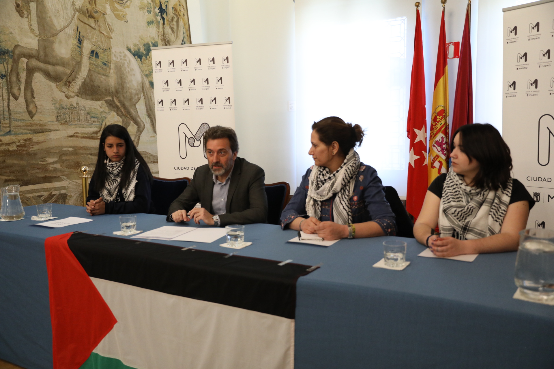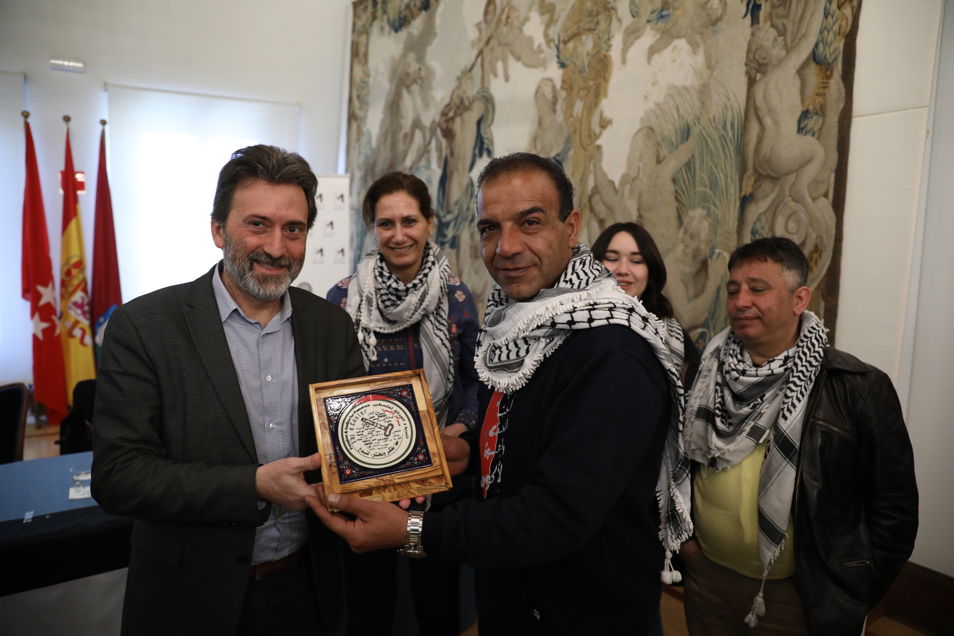 El tercer teniente de alcalde y responsable de la Oficina de Derechos Humanos y Memoria de Madrid, Mauricio Valiente, ha recibido esta mañana, viernes 1 de marzo, en el Salón de Tapices de la Casa de la Villa a catorce jóvenes músicos palestinos procedentes del campo de refugiados de Aida, en Belén. Durante el acto también se encontraban presentes representantes del proyecto PalSpain y Jaldia Abubakra, del Movimiento de Mujeres Palestinas Alkarama.