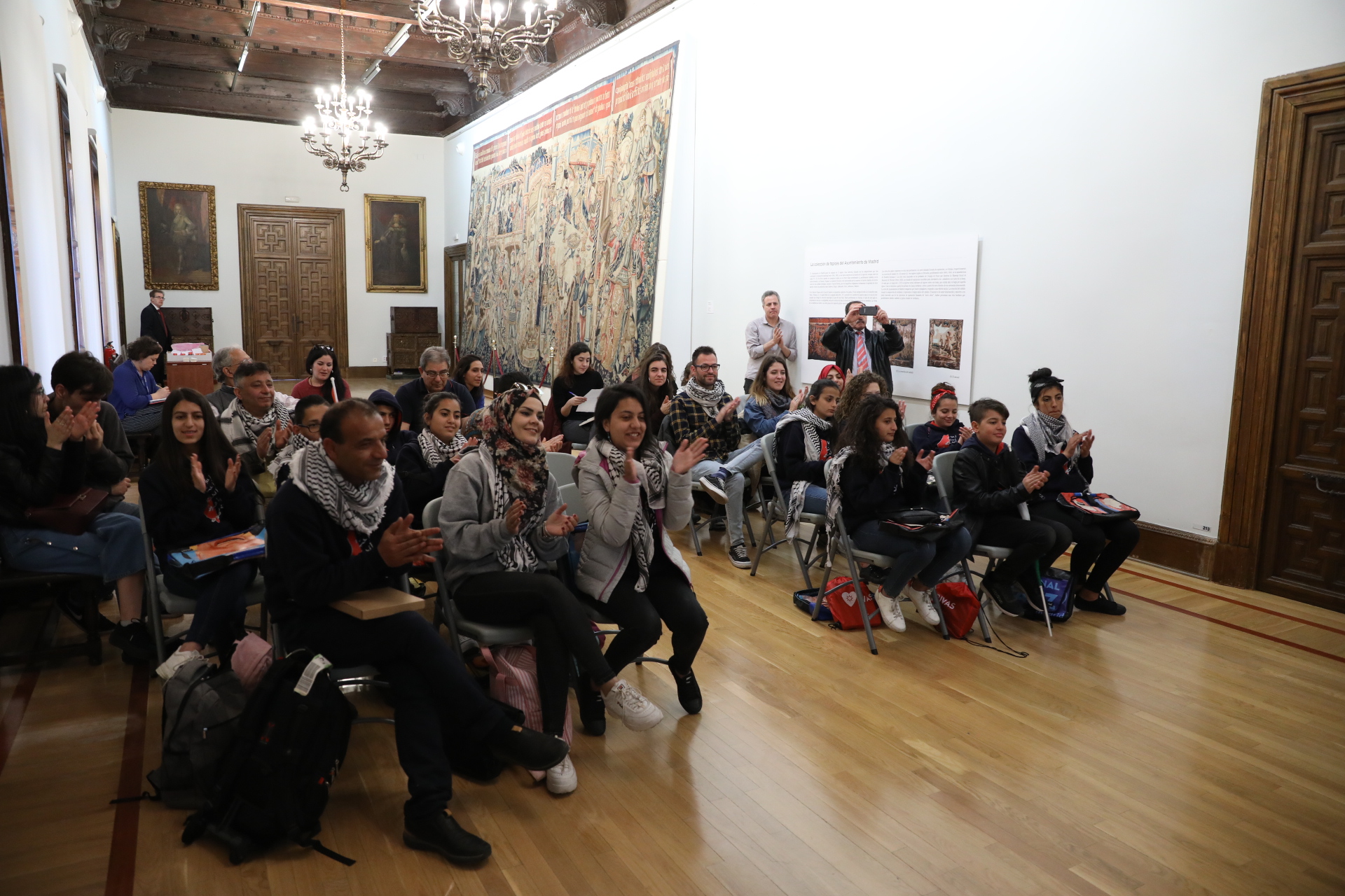 Durante el encuentro, una de las jóvenes, Raghad Alhjrama, ha agradecido al consistorio el acogimiento recibido y ha resaltado que el sentido de su visita es sobre todo “hacer llegar nuestra voz como representantes del campo de refugiados de Aida y también de todos los refugiados”. Raghad también ha explicado que el proyecto del Centro Cultural Lajee se formó hace cinco años y lo componen jóvenes refugiados que trabajan en torno a cinco unidades: música, danza, medioambiente, arte y sanidad. /