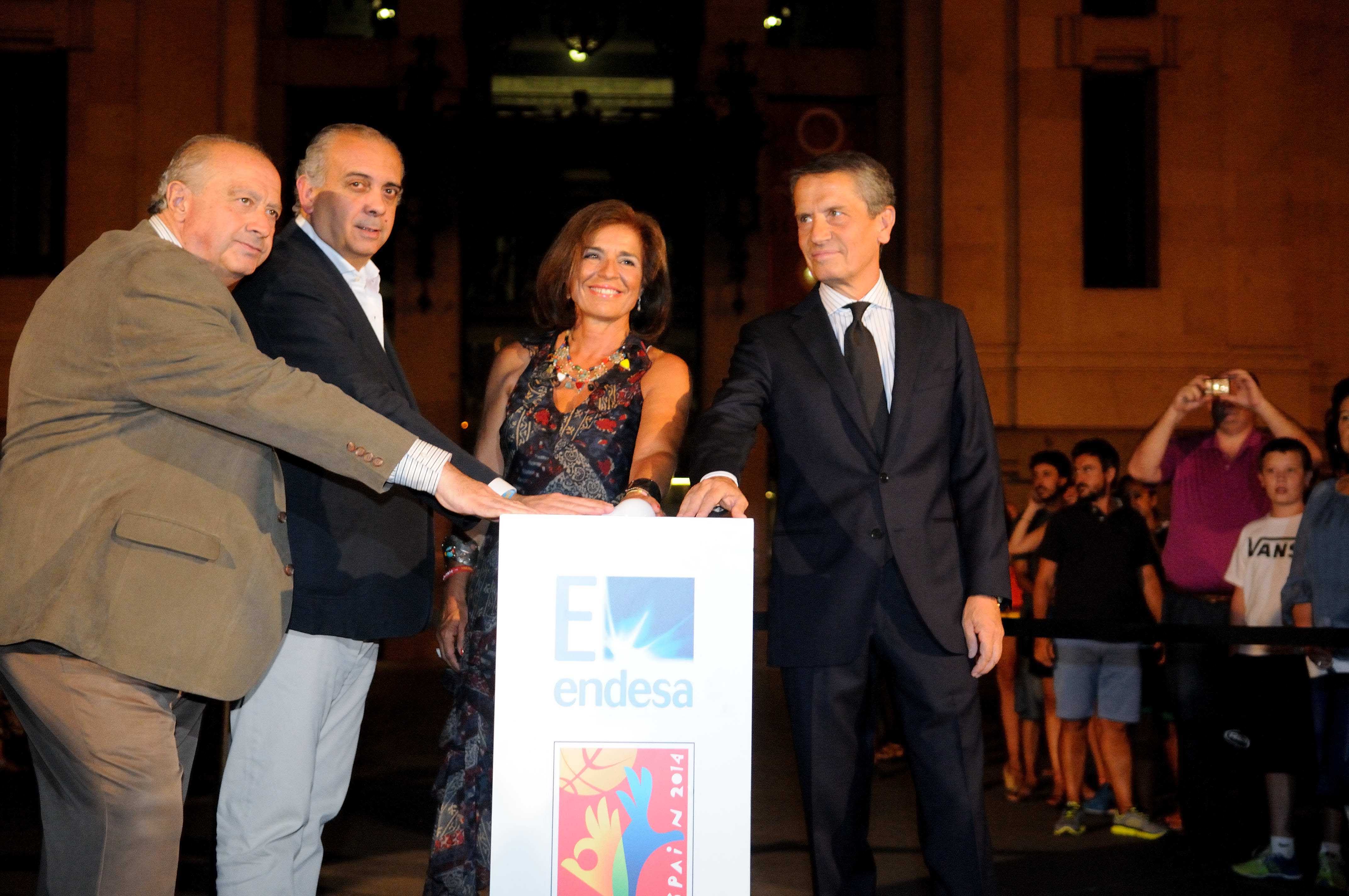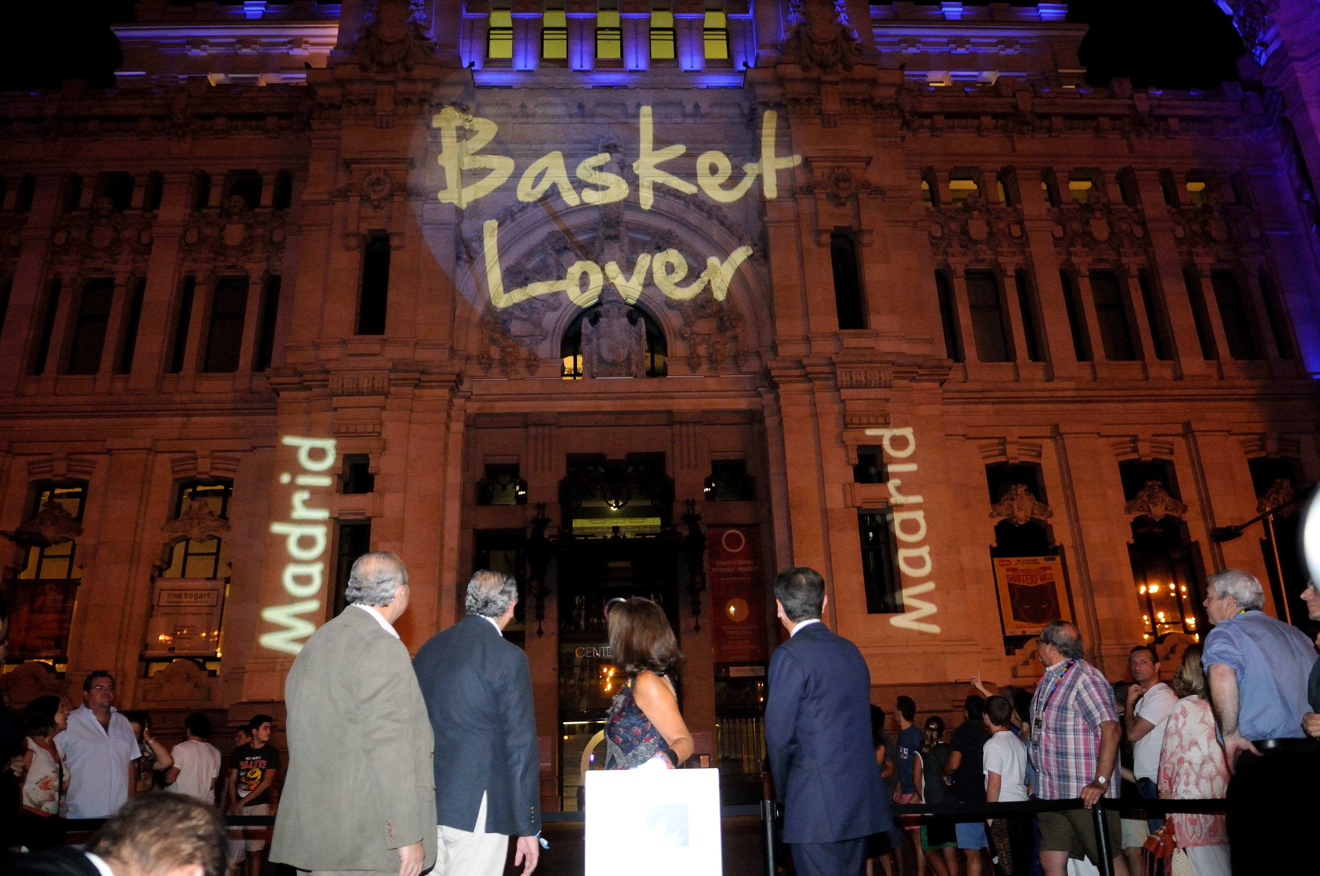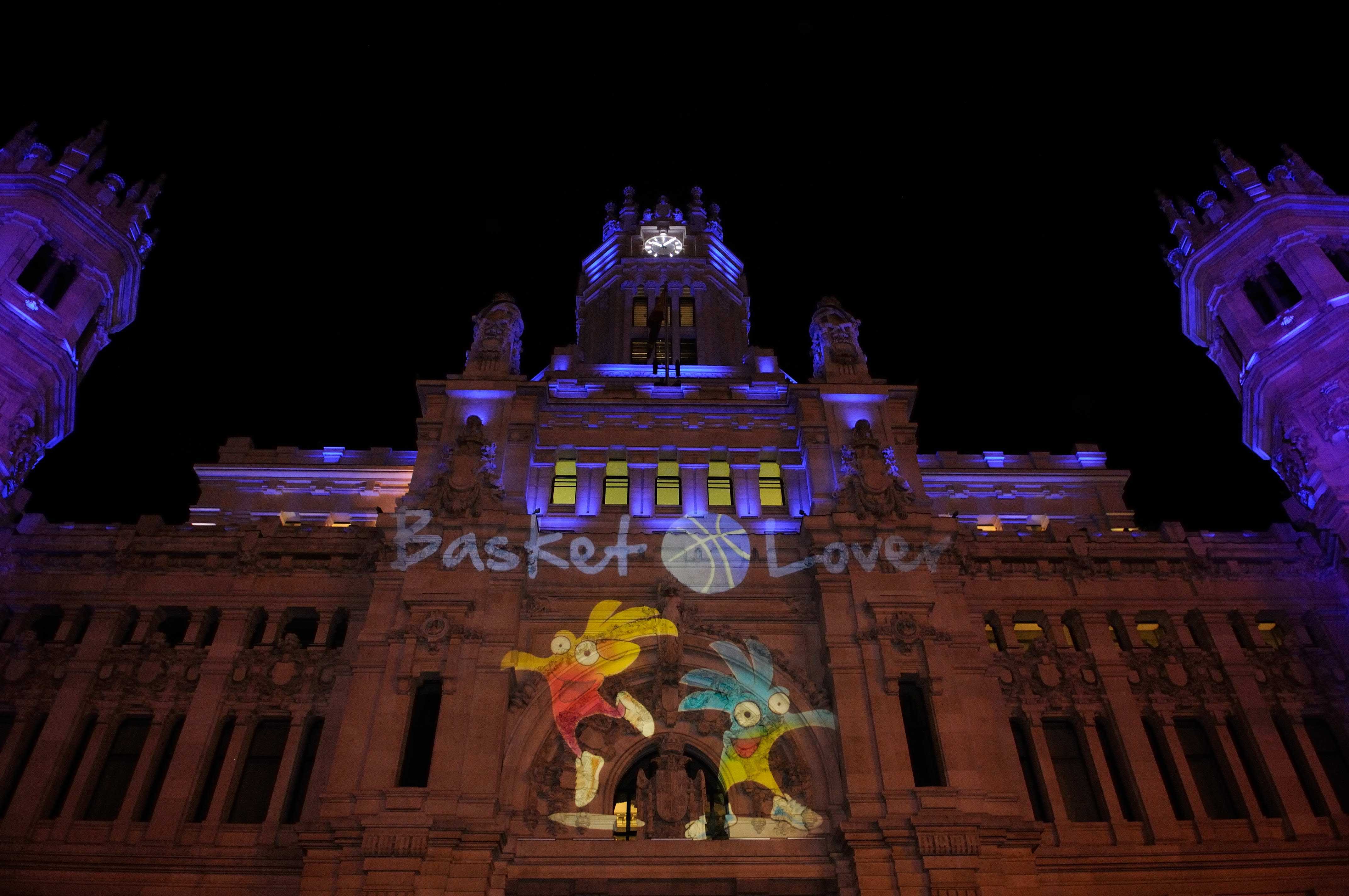 El Palacio de Cibeles se iluminará cada noche, hasta el próximo 12 de septiembre, para celebrar que la fase final de los Campeonatos del Mundo de Baloncesto se juega en Madrid. La alcaldesa, Ana Botella, encendió anoche las luces que se proyectarán sobre la fachada principal de la sede del Ayuntamiento, en un acto realizado simultáneamente en la ciudad de Barcelona, donde, por igual motivo, y a la misma hora, se iluminó el Museo Nacional de Arte de Cataluña.