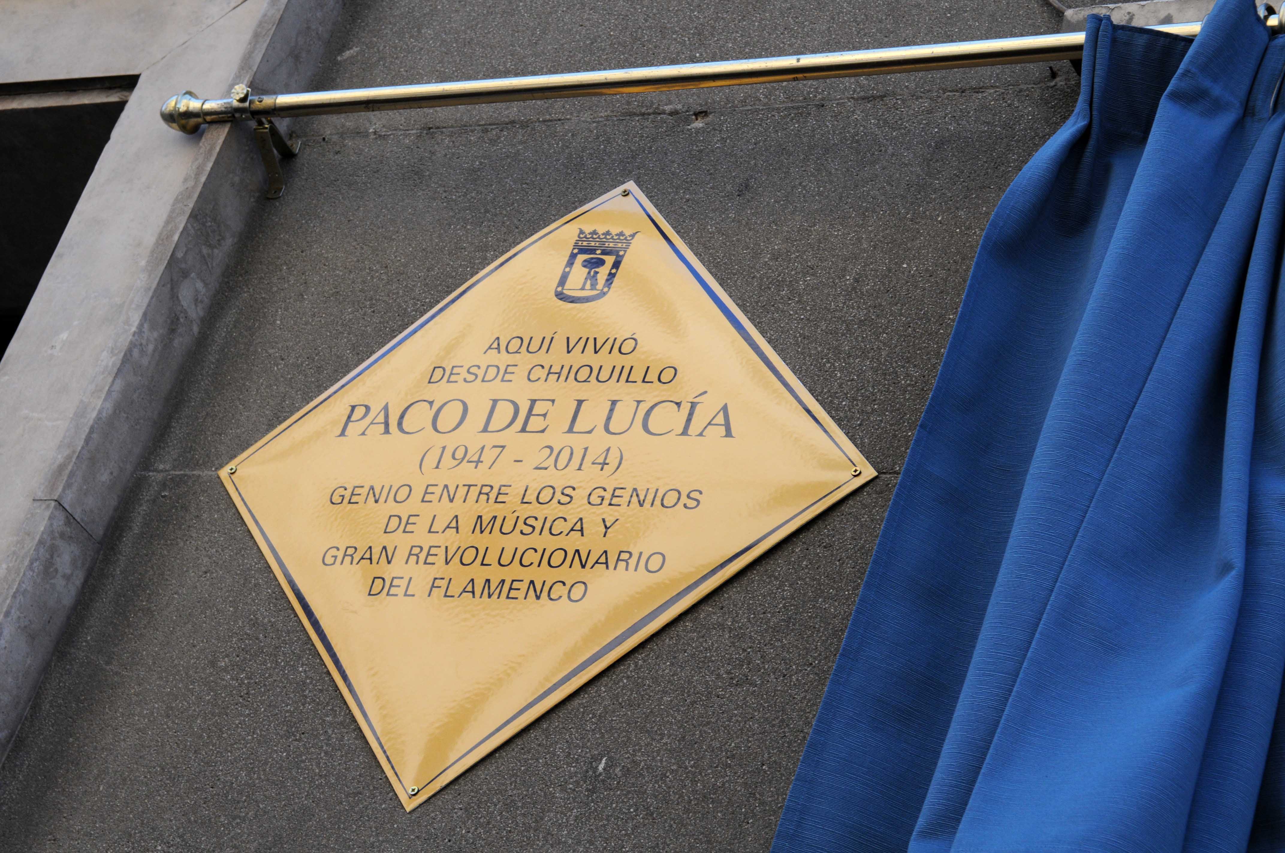 Esta mañana la alcaldesa de Madrid ha descubierto una placa conmemorativa en el número 17 de la calle Ilustración, en la casa en la que Paco de Lucía residió de niño a su llegada a Madrid.