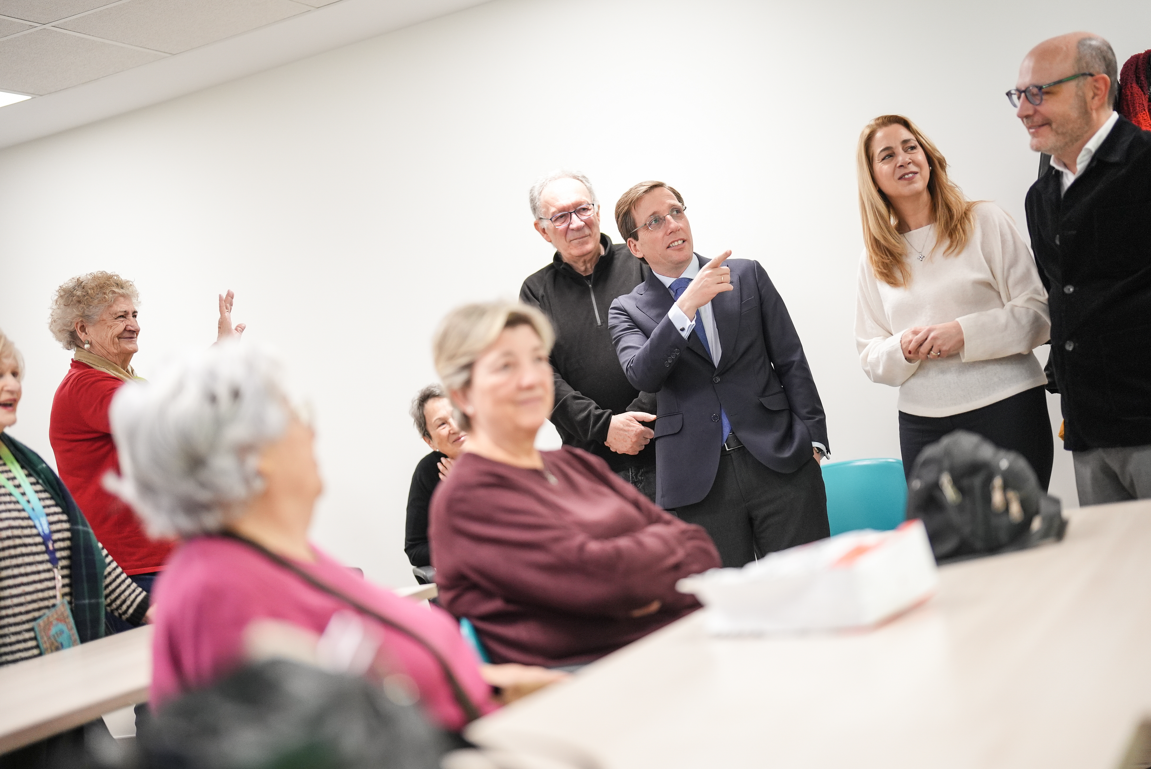 El alcalde de Madrid, José Luis Martínez-Almeida, acompañado por el delegado de Políticas Sociales, Familia e Igualdad, José Fernández, y la concejala de Ciudad Lineal, Nadia Álvarez, ha comprobado hoy cómo evoluciona la digitalización del servicio de Teleasistencia Avanzada del Ayuntamiento de Madrid en una visita al Centro Municipal de Mayores Canal de Panamá. Tal como ha informado, el Consistorio sigue incorporando innovaciones tecnológicas para mejorar esta prestación, entre las que se encuentran relojes inteligentes con geolocalización y botón SOS, de los que ya se benefician 9.000 personas. Con dispositivos como estos, el Consistorio favorece que personas mayores o con dependencia reconocida permanezcan en sus domicilios el mayor tiempo posible con seguridad y autonomía.