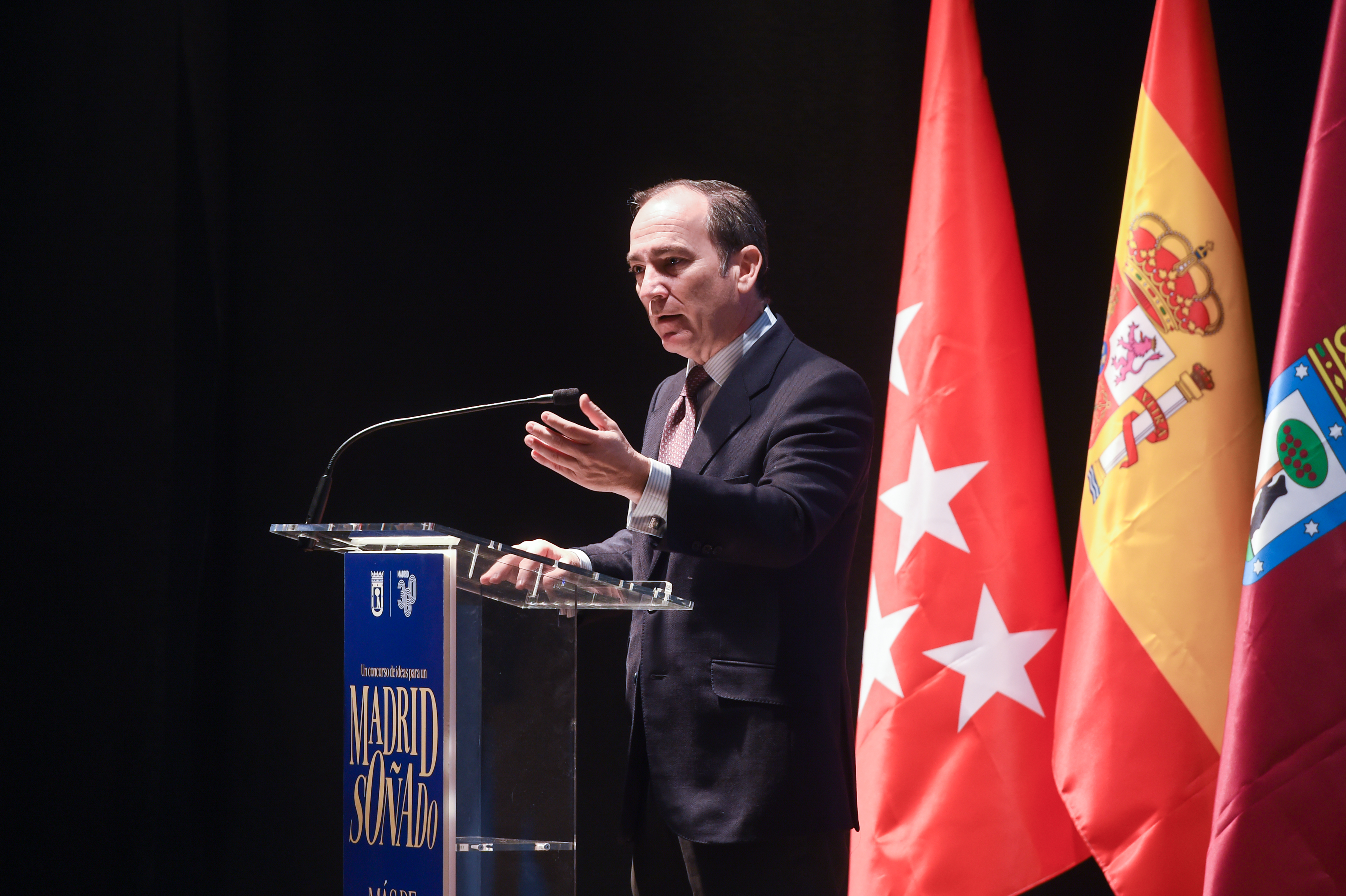 Carabante en el acto de entrega de galardones del concurso de ideas ‘Sueña Madrid 2025’, celebrado en el Centro Cultural San Francisco La Prensa, en Carabanchel