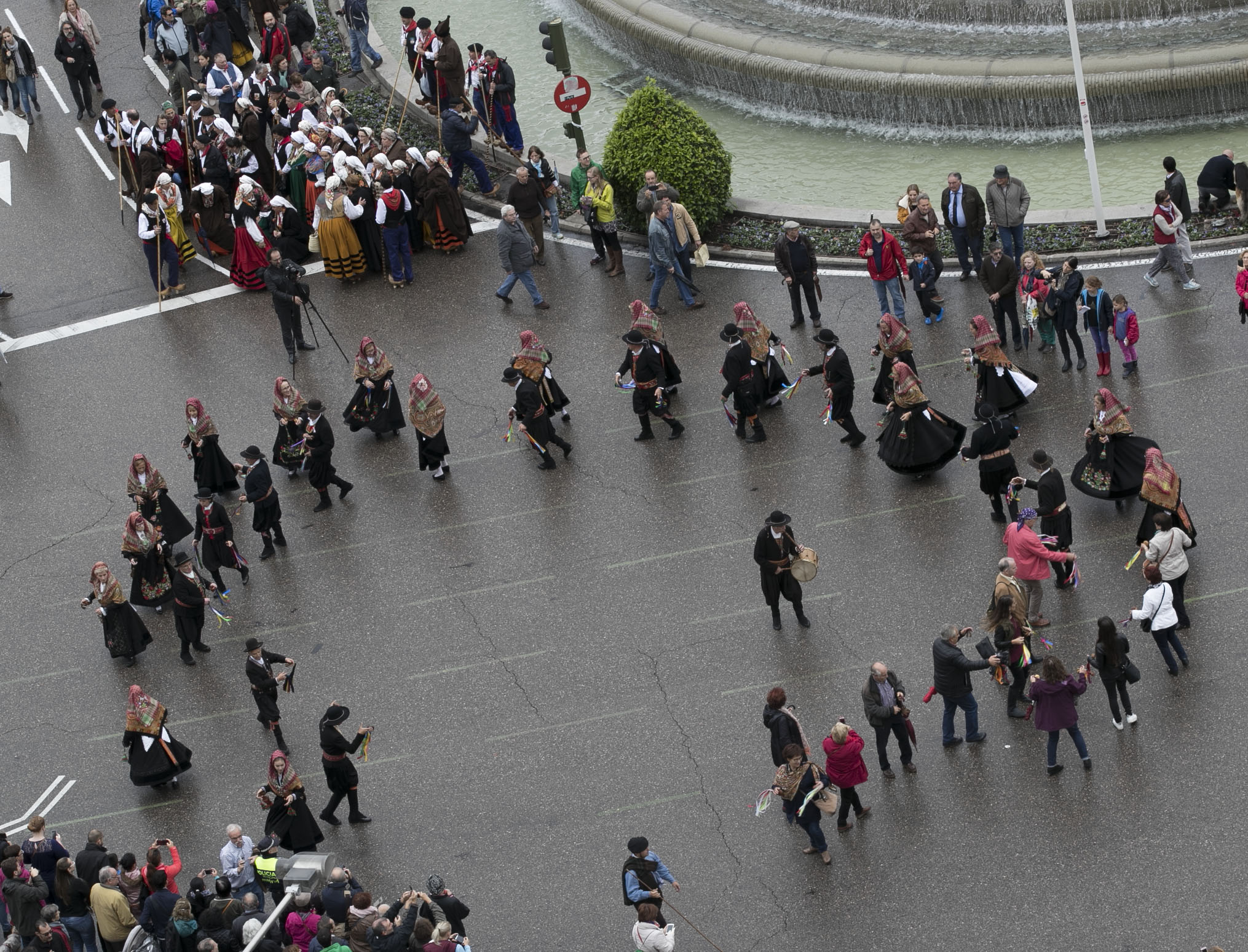 Los pendones concejiles de Astorga son la referencia fundamental para mantener las distancias entre los distintos grupos. Les siguen los arrieros maragatos, encargados de garantizar con sus recuas de mulas el tráfico de mercancías desde los puertos gallegos hasta Madrid. Les acompaña la Cabaña Real de Carreteros, fundada por los Reyes Católicos y representada por las carretas de bueyes seranos y de vacas avileñas. Distintos grupos populares acompañarán el paso de los rebaños al son de la música tradicional de las distintas comarcas/.