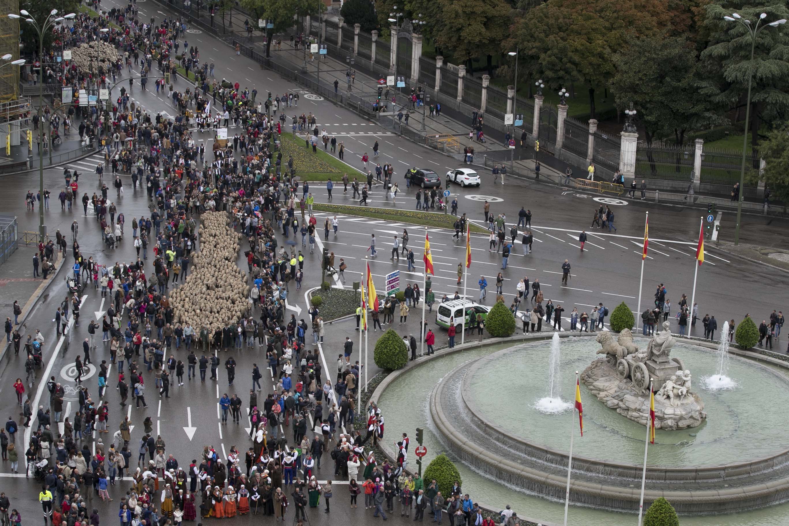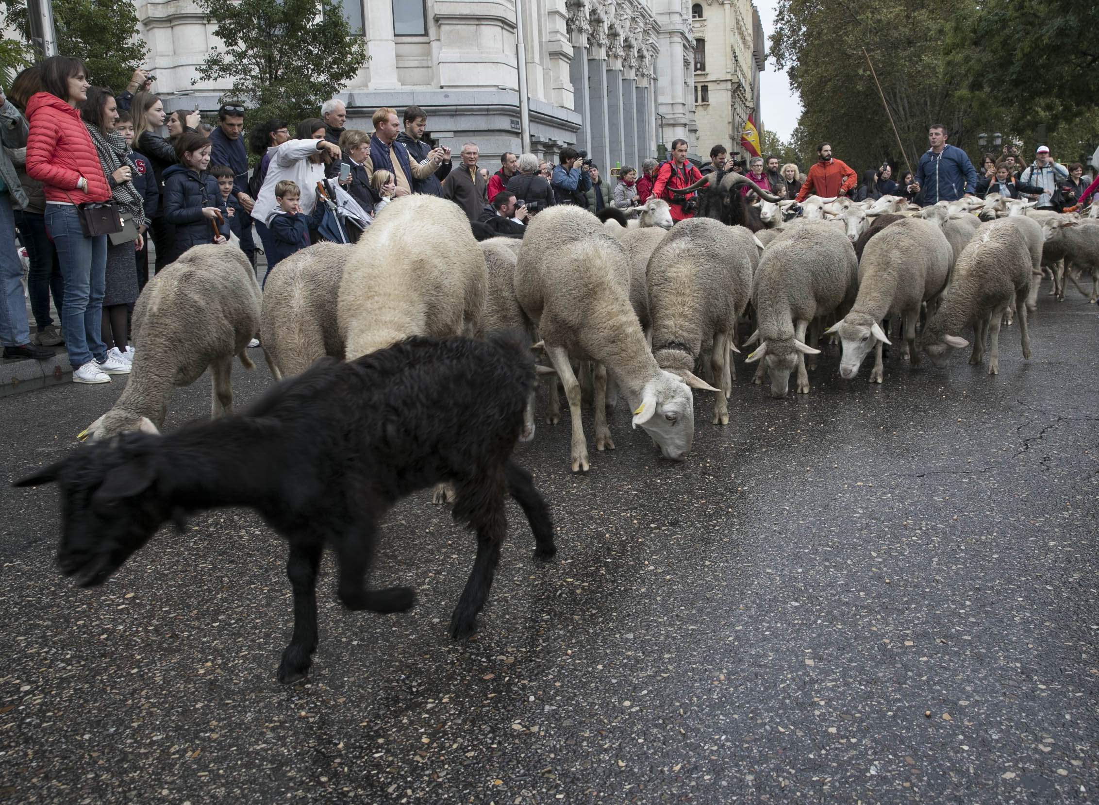 El escenario ha sido por primera vez la plaza de Cibeles. Hasta allí han llegado dos rebaños integrados por algo más de un millar de ovejas y cabras, procedentes de Ávila y Badajoz. Esta mañana han salido de la Casa de Campo y, tras subir por la Cuesta de la Vega y cruzar Bailén, recorrieron la Calle Mayor hasta la Puerta del Sol. Enfilaron después la calle de Alcalá para alcanzar Cibeles desde donde regresaron por el mismo camino a la Casa de Campo. Es la primera vez que los rebaños cierran el recorrido andando ya que, en ocasiones anteriores, el retorno se hacía en camiones.