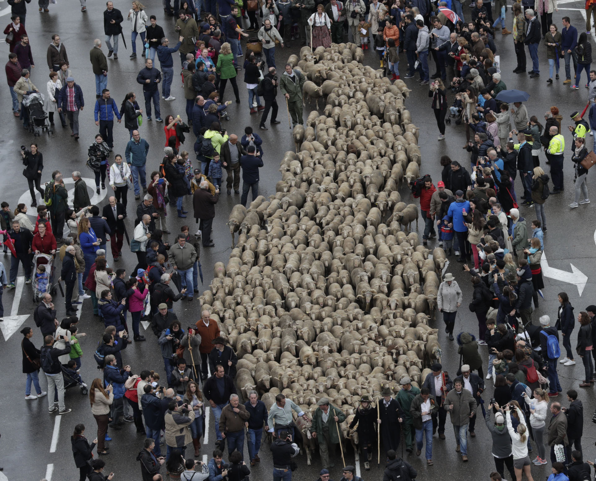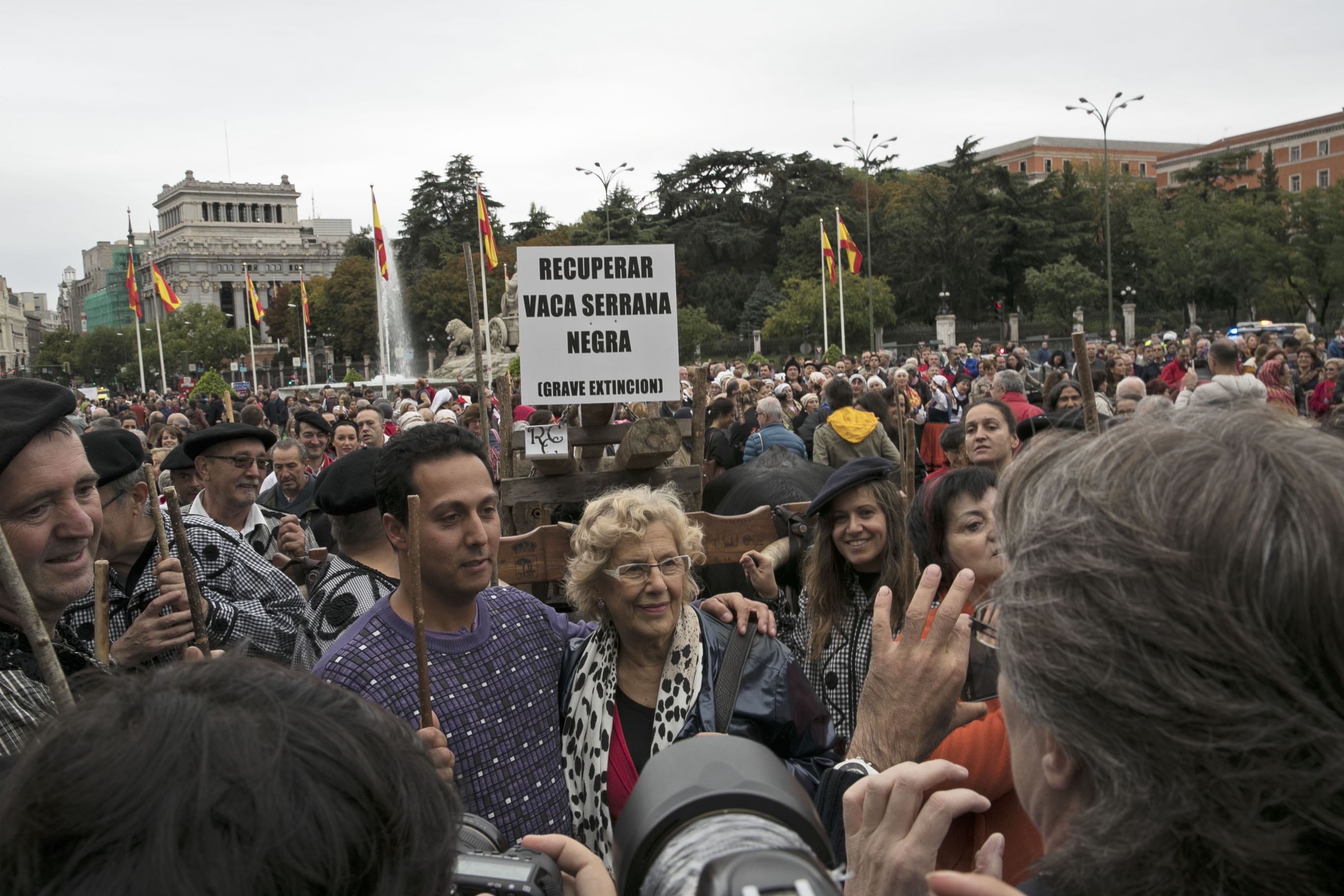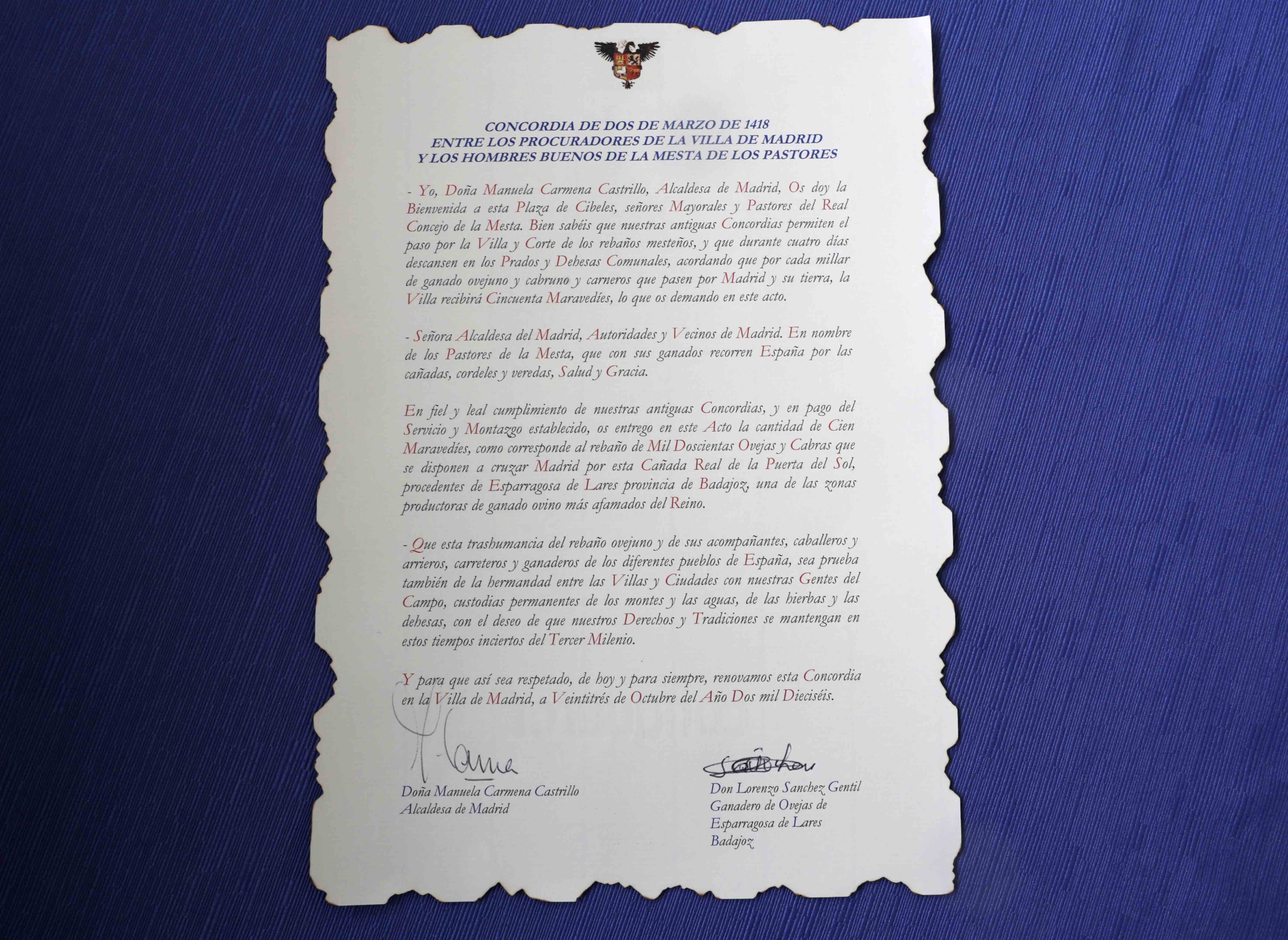 Empezó en 1994 como un acto simbólico para reivindicar la trashumancia como una forma de ganadería extensiva y sostenible, estrechamente vinculada a valores culturales, ecosistemas y paisajes característicos de la Península Ibérica. Veintidós años después, el paso de los rebaños por las calles de la ciudad se ha convertido en un ritual del otoño madrileño. Hoy, la alcaldesa Manuela Carmena ha dado la bienvenida a los pastores, acompañados por los mayorales, rabadanes y ganaderos, y ha recibido el pago de los “50 maravedís al millar” estipulados por la Concordia de 1418 entre los Hombres Buenos de la Mesta y los Procuradores del Concejo de la Villa.