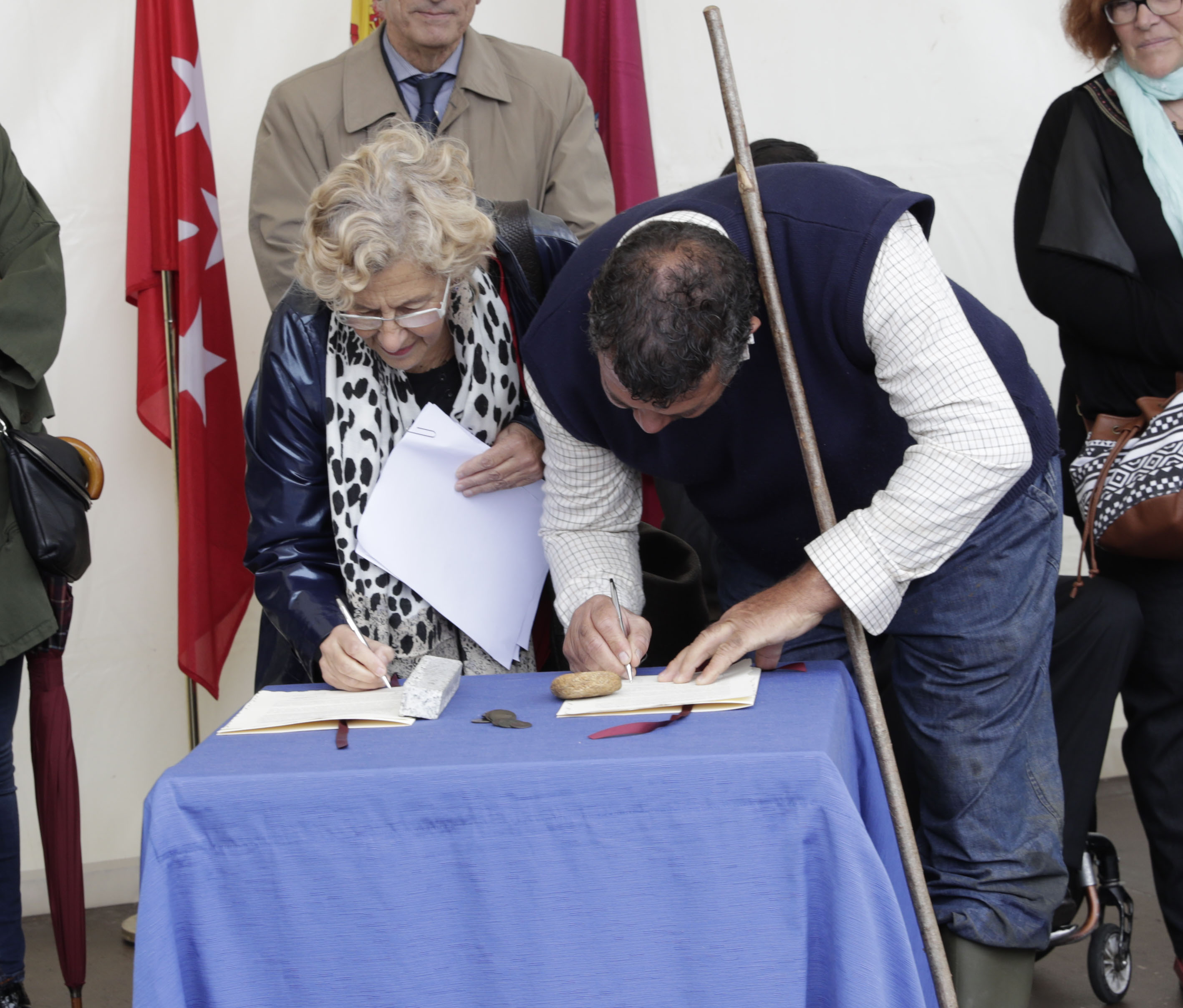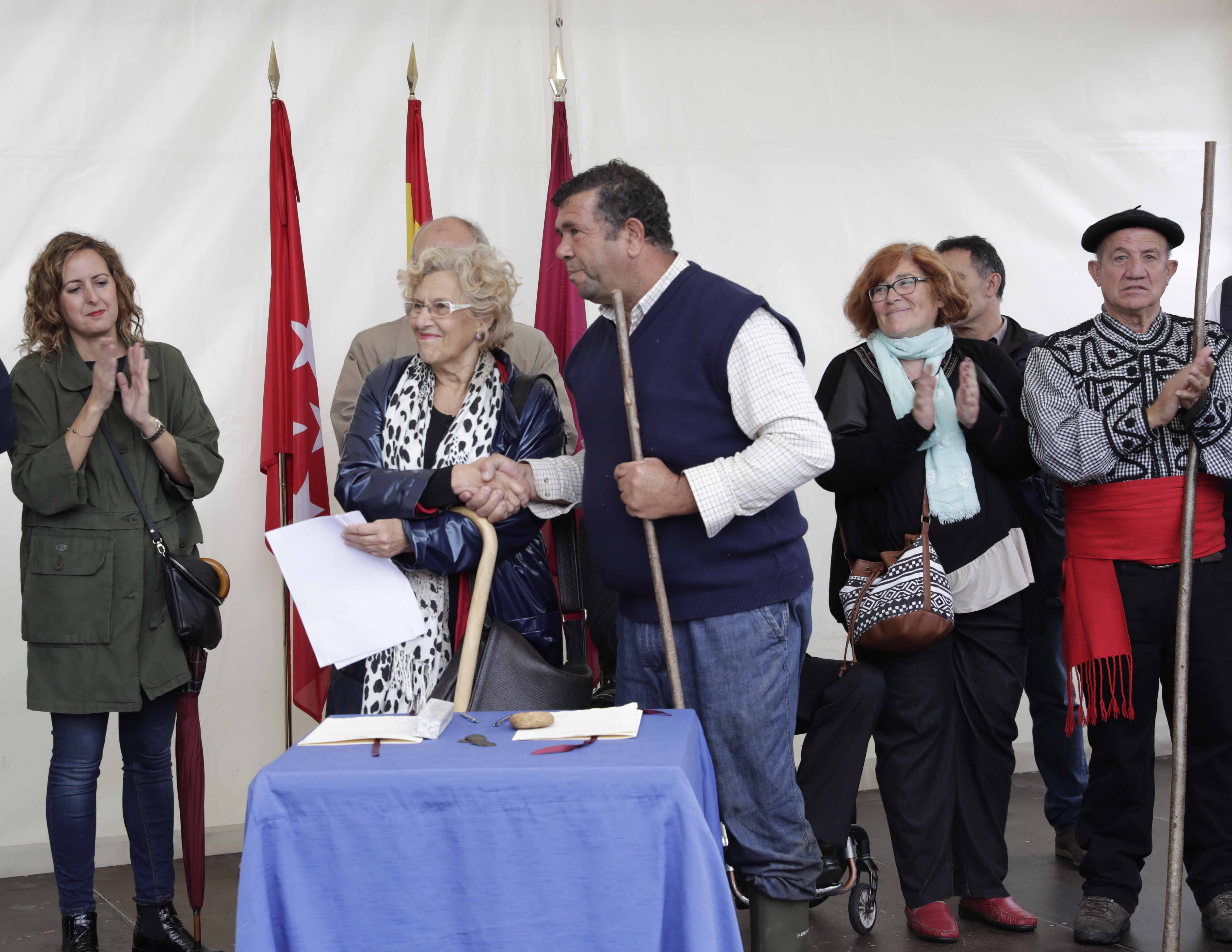 La alcaldesa ha querido agradecer a las madrileñas y madrileños que “Madrid sea algo cada vez más importante. Es precioso que hoy en día podamos tener en este Madrid diverso la representación de la trashumancia y hace tres días la mayor cumbre en materia de tecnología e informática. Madrid es todo y Madrid se desequilibraría si no pensara en la naturaleza”, ha dicho Carmena que junto a los representantes de los ganaderos han vuelto a rubricar la Concordia para renovar el compromiso de la ciudad de Madrid con un patrimonio único en el mundo: 125.000 km de longitud y 420.000 hectáreas de superficie, protegido desde 1 273. Junto a ellos han estado presentes miembros de la Corporación y de otras instituciones, así como de las entidades que organizan la fiesta, donde ha asegurado que “se repetirá y a ampliar y por qué no convertirlo en un paseo tradicional y turístico desde Cantabria y a Extremadura”.