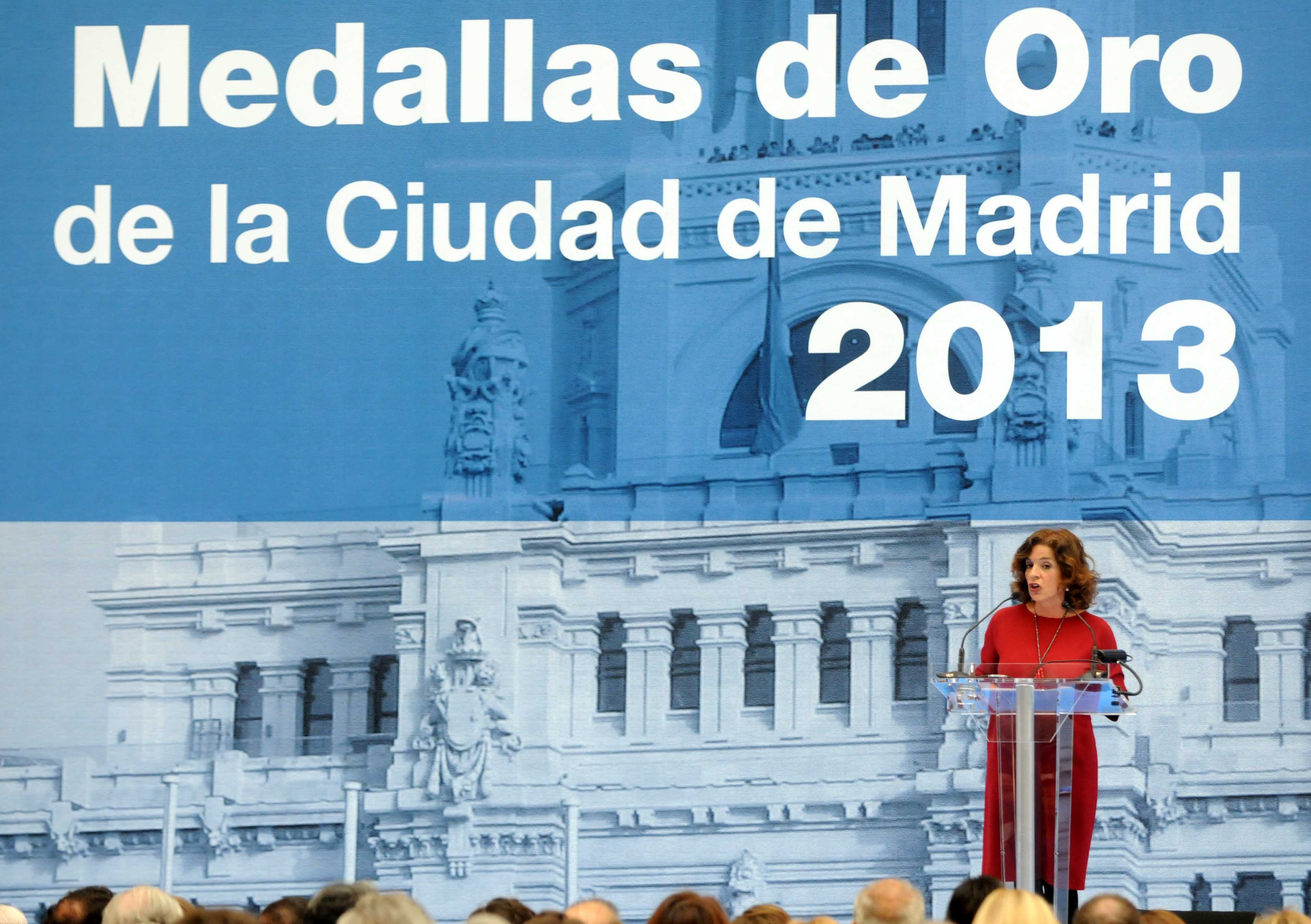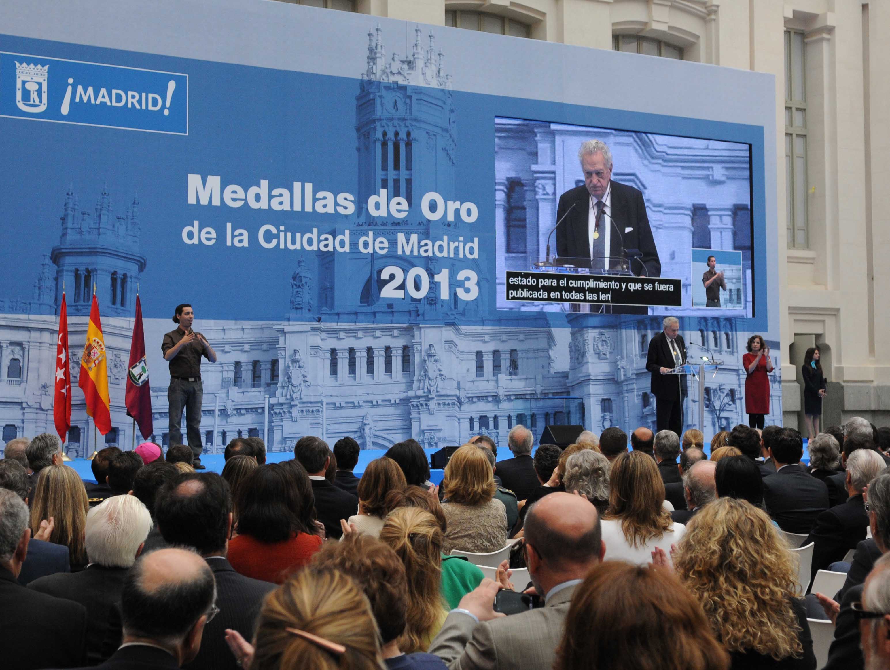 Diversos momentos de la entrega de las Medallas de Oro de Madrid. Ana Botella, alcaldesa de la ciudad, ha presidido el acto en el que Fernando Álvarez de Miranda, en representación de las Cortes Constituyentes; Miguel Carballeda, en nombre de la ONCE y la galerista Soledad Lorenzo han recogido sus distinciones.