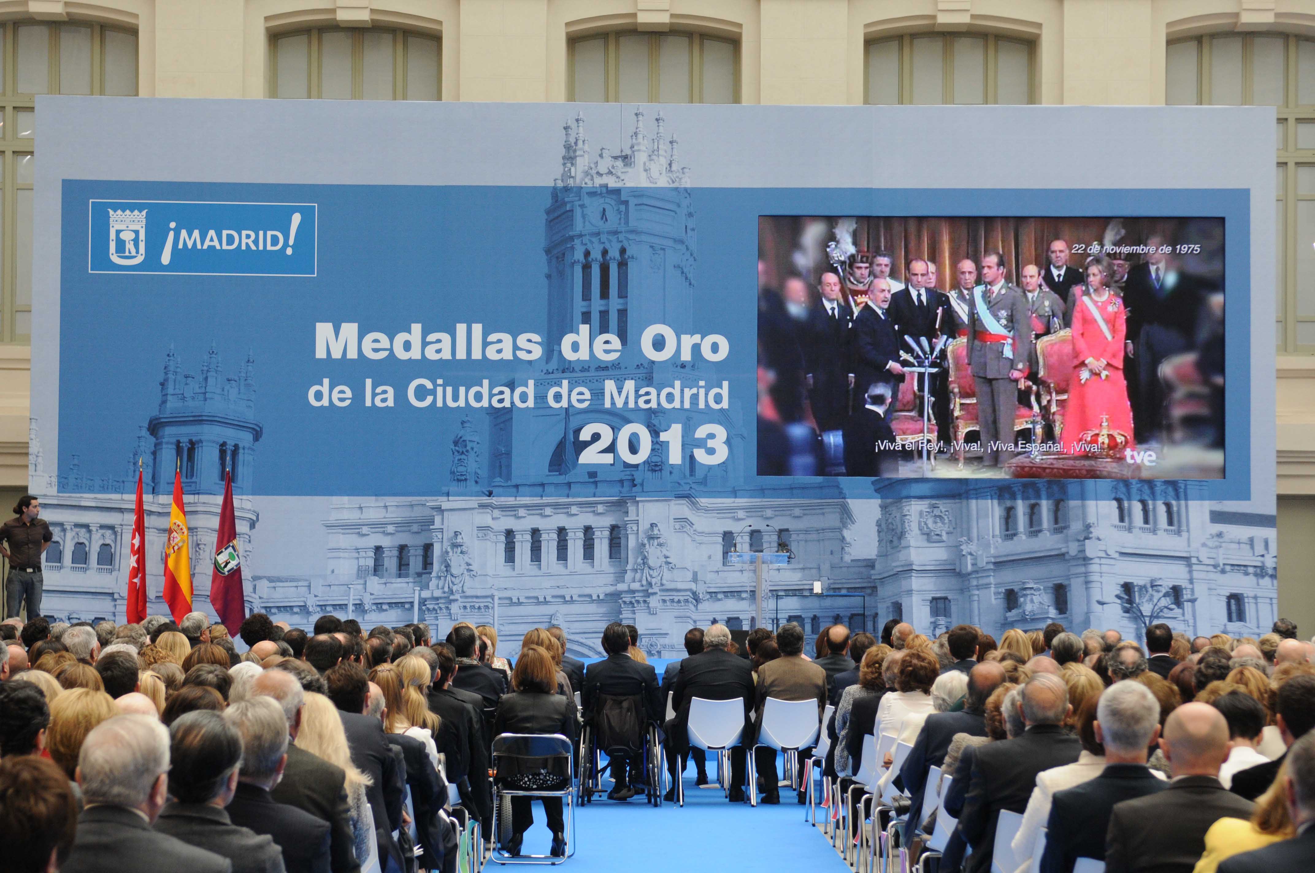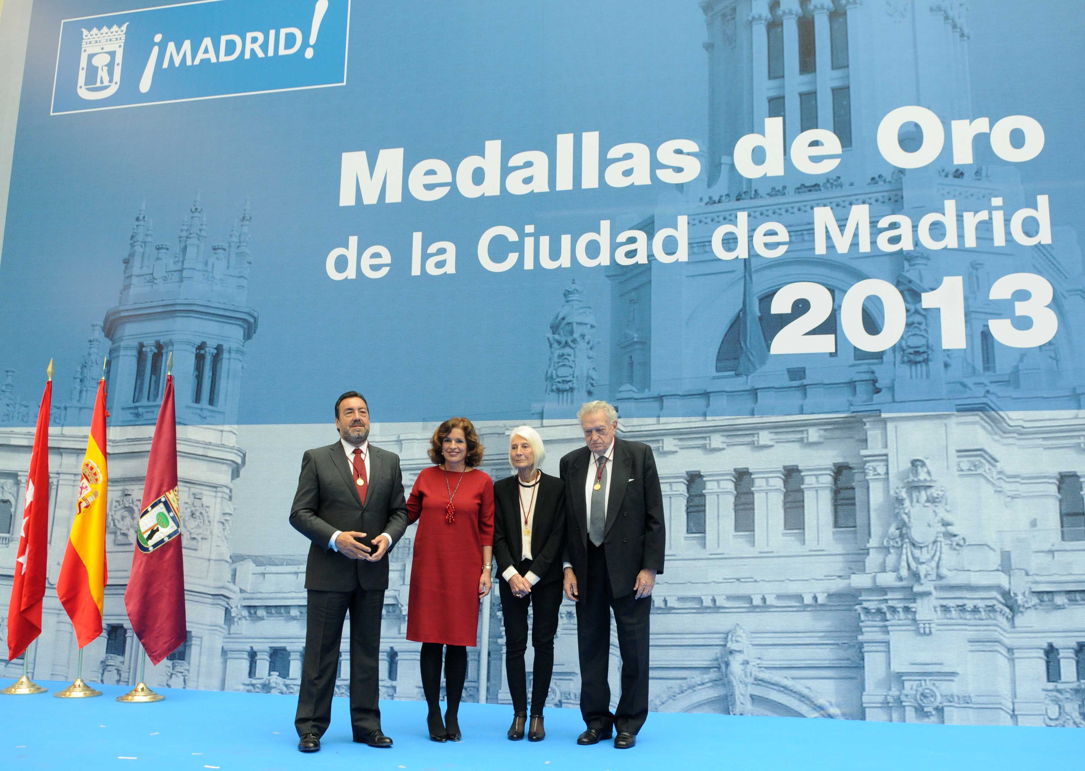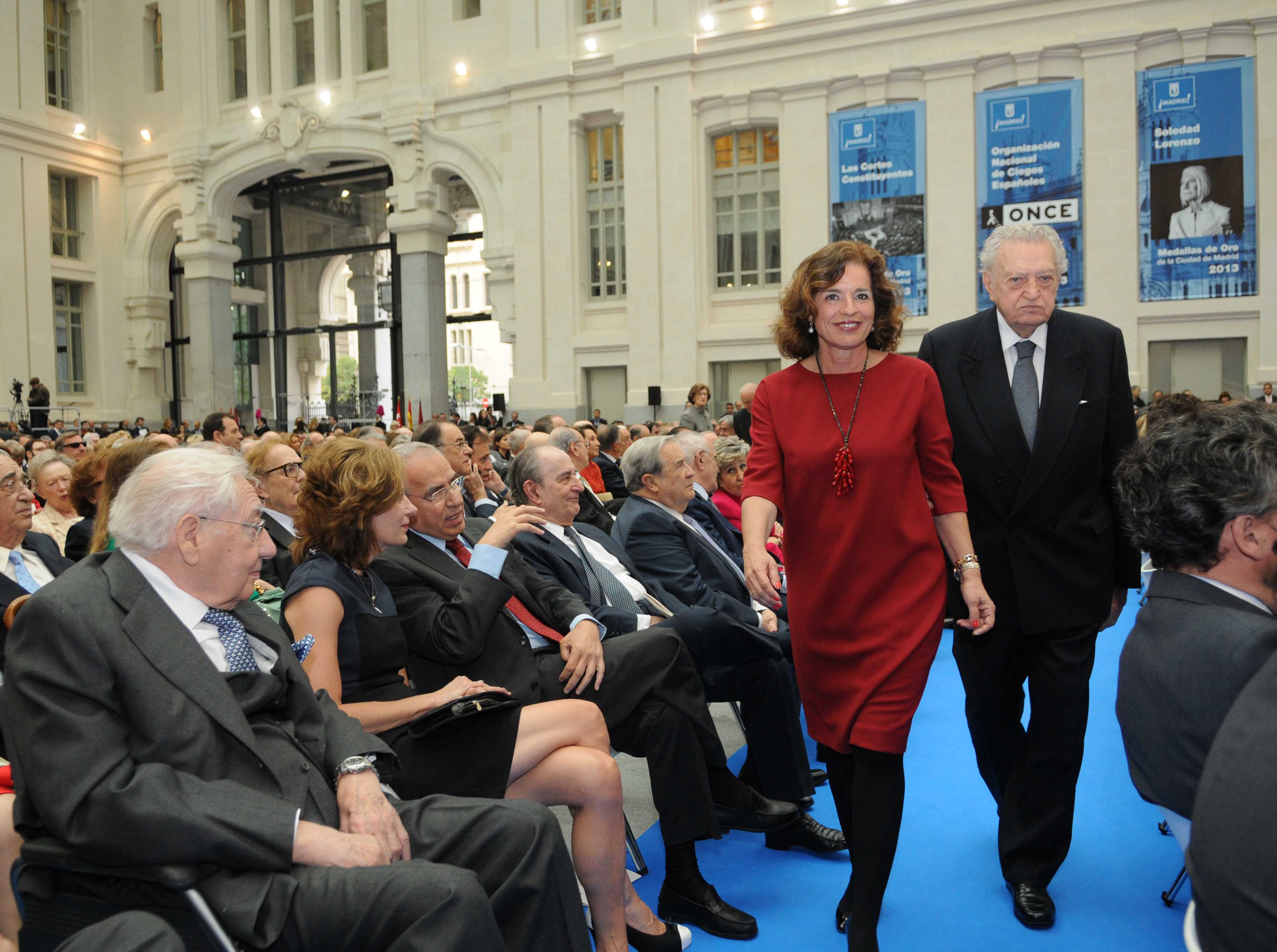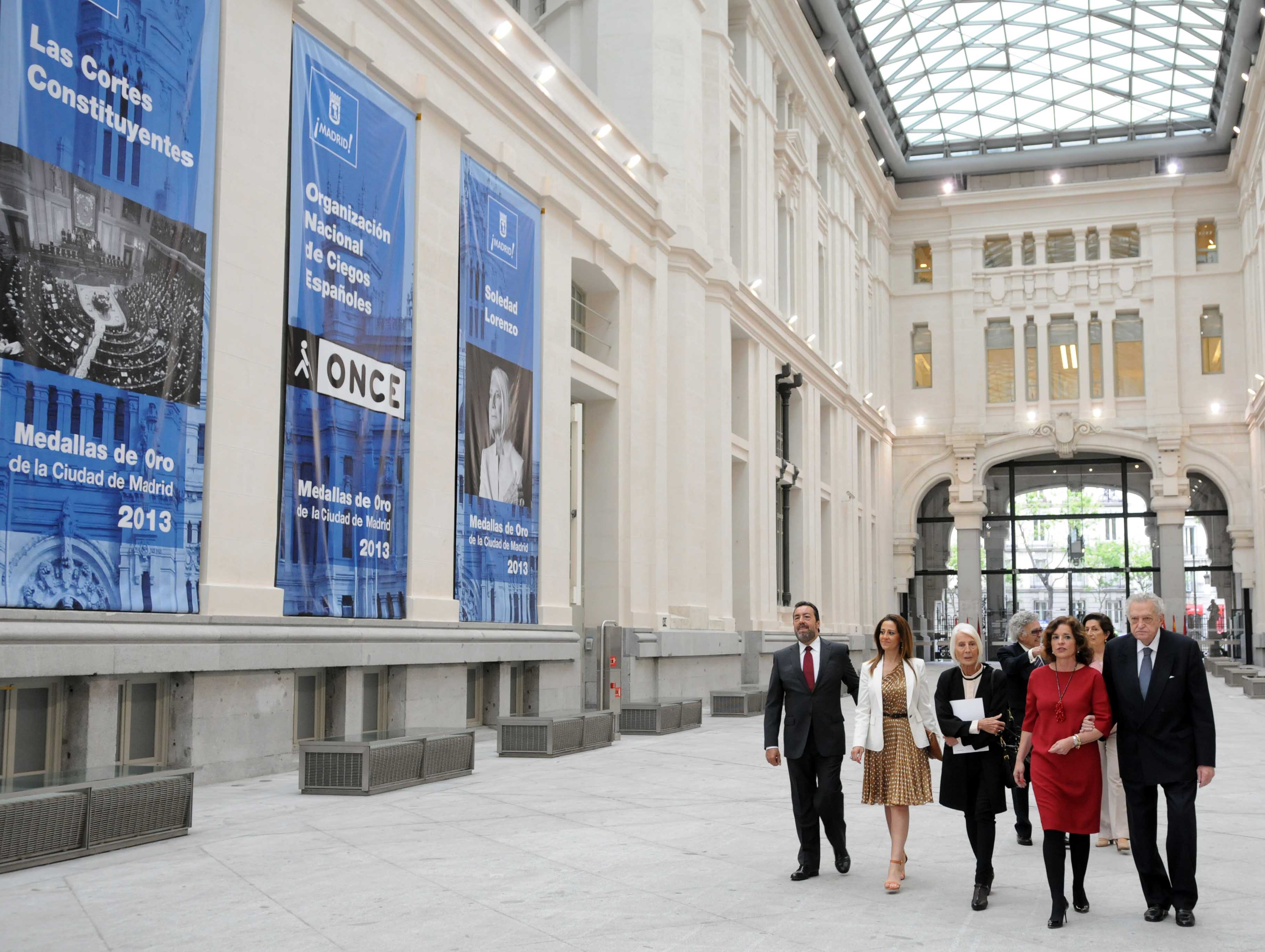 Ana Botella, alcaldesa de la ciudad, ha entregado esta mañana en la Galería de Cristal de Cibeles, las Medallas de Oro de Madrid, un reconocimiento que, en sus palabras, es para aquellos que “desde Madrid, han trabajado ejemplarmente por el bien de nuestra Nación y de todos sus ciudadanos”. Las Cortes Constituyentes de 1978, la Organización Nacional de Ciegos y la galerista Soledad Lorenzo han sido los galardonados este año. En el año en el que la Constitución celebra su 35 aniversario, el Ayuntamiento ha querido destacar a quienes participaron su aprobación y mostraron su voluntad “de romper con la inercia de una Historia en la que las Constituciones habían sido promulgadas por media España contra la otra media”. Creada en 1938, la Organización Nacional de Ciegos cumple 75 años “ilusión y trabajo inagotable por la integración de las personas con discapacidad”. En este tiempo se ha convertido en “un referente en todo el mundo a la hora de proporcionar los mejores servicios especializados a sus más de 71.000 afiliados, de los cuales cerca de 10.000 son madrileños”. Soledad Lorenzo, santanderina de nacimiento, en 1986 abrió en el número 5 de la calle Orfila, la galería que lleva su nombre. Allí, como recordó la alcaldesa, protagonizó “una de las aventuras artísticas y empresariales más extraordinarias del galerismo español e internacional”. En sus paredes han colgado obra desde Tàpies o Palazuelo hasta Barceló, Broto, Pérez-Villalta o Sicilia. “Ha sido, además, una embajada del arte español en las grandes ferias internacionales” y una pieza clave “del esplendor de las artes plásticas en el Madrid de las últimas tres décadas”./ Nota: Pinche en “Textos” para acceder a la intervención íntegra de la alcaldesa y a la reseña de los premiados