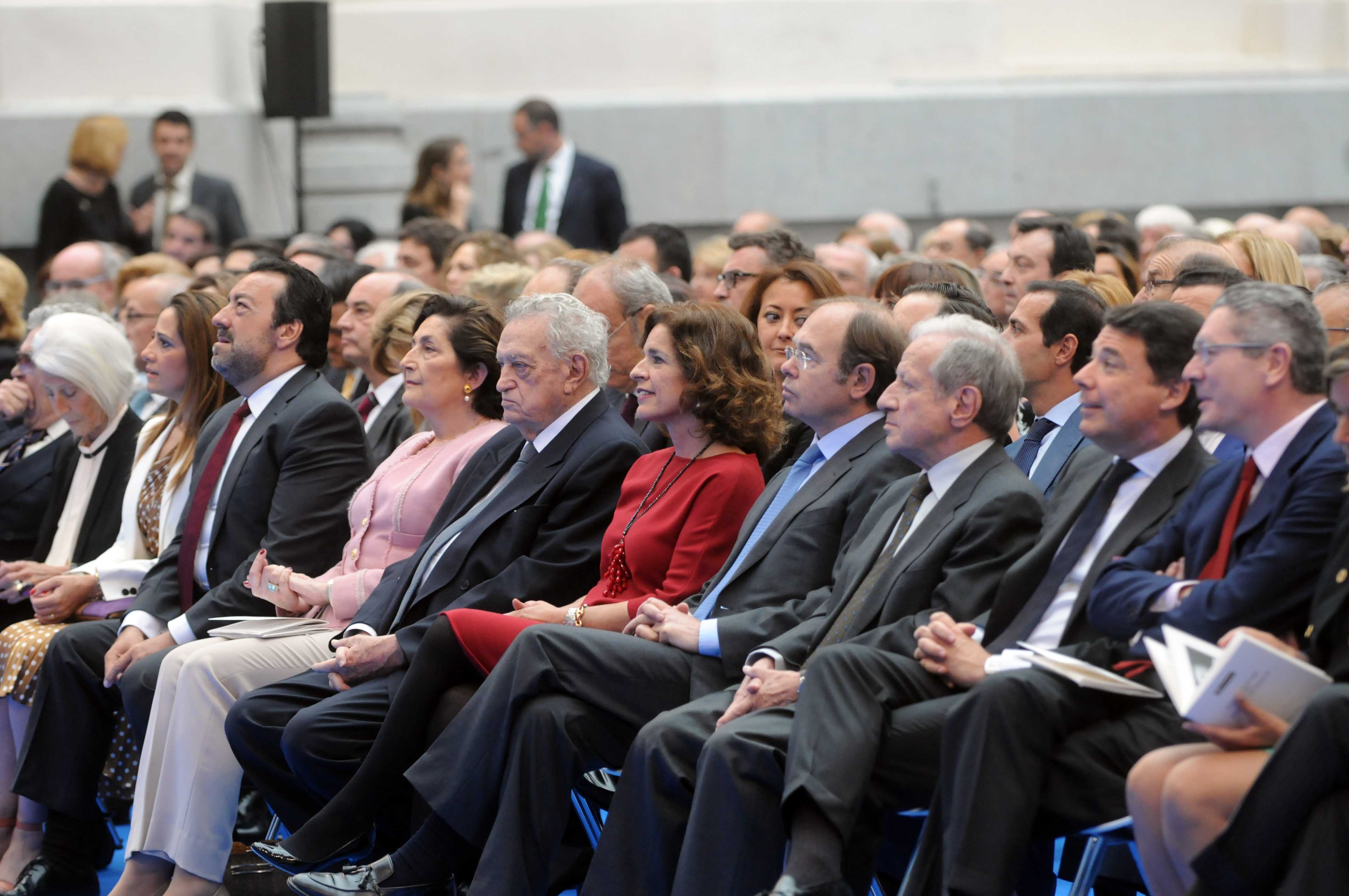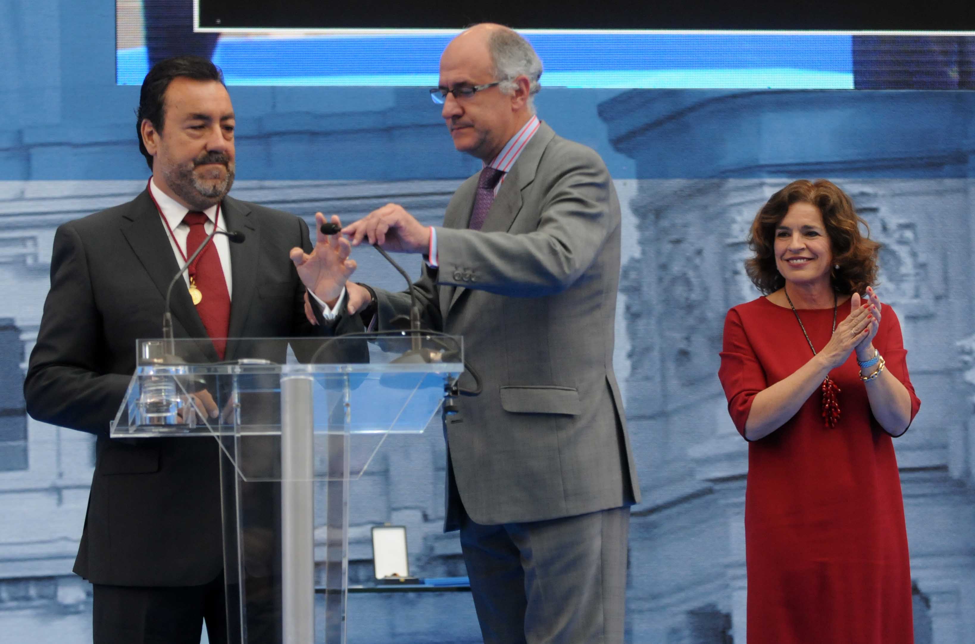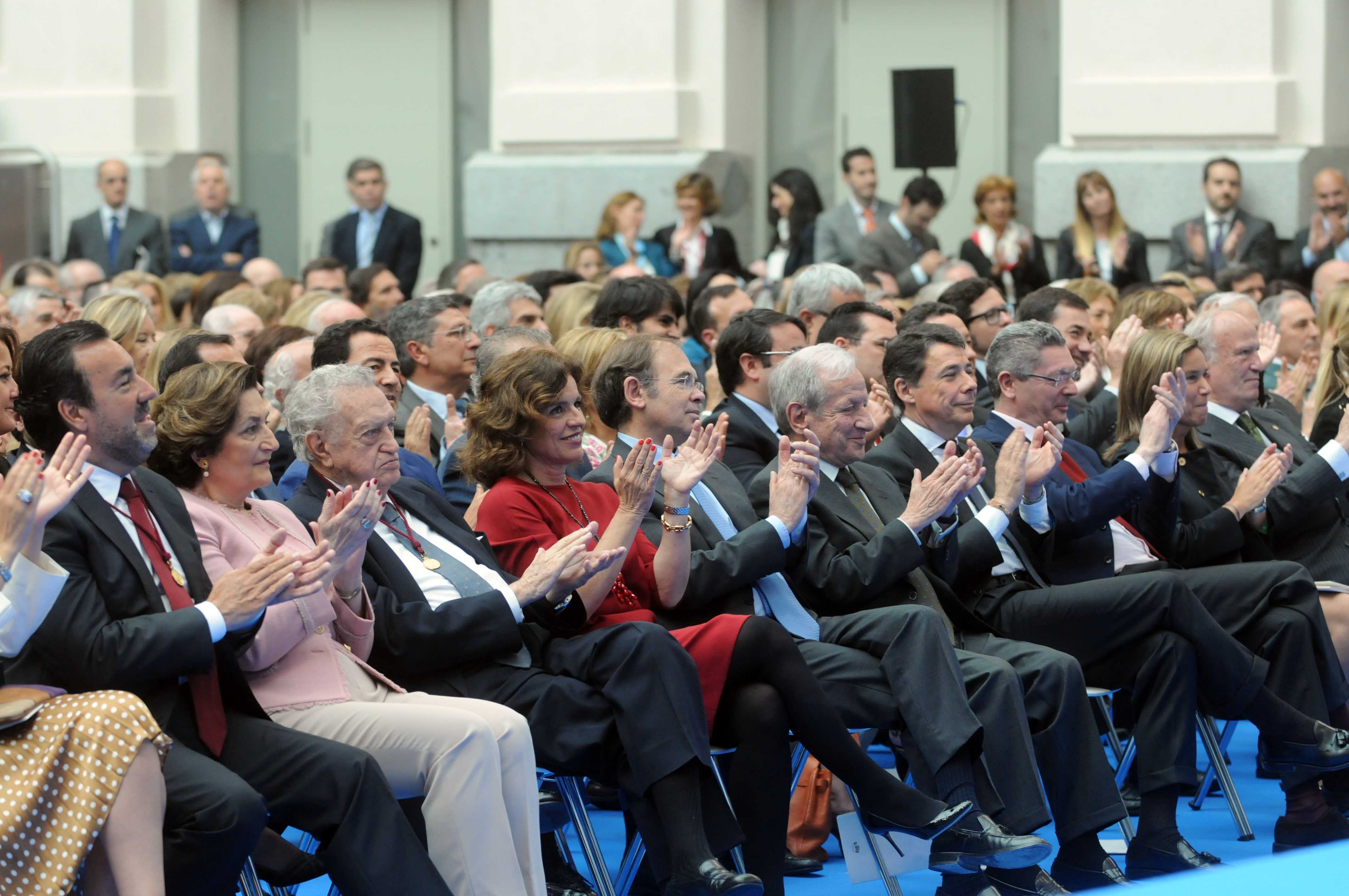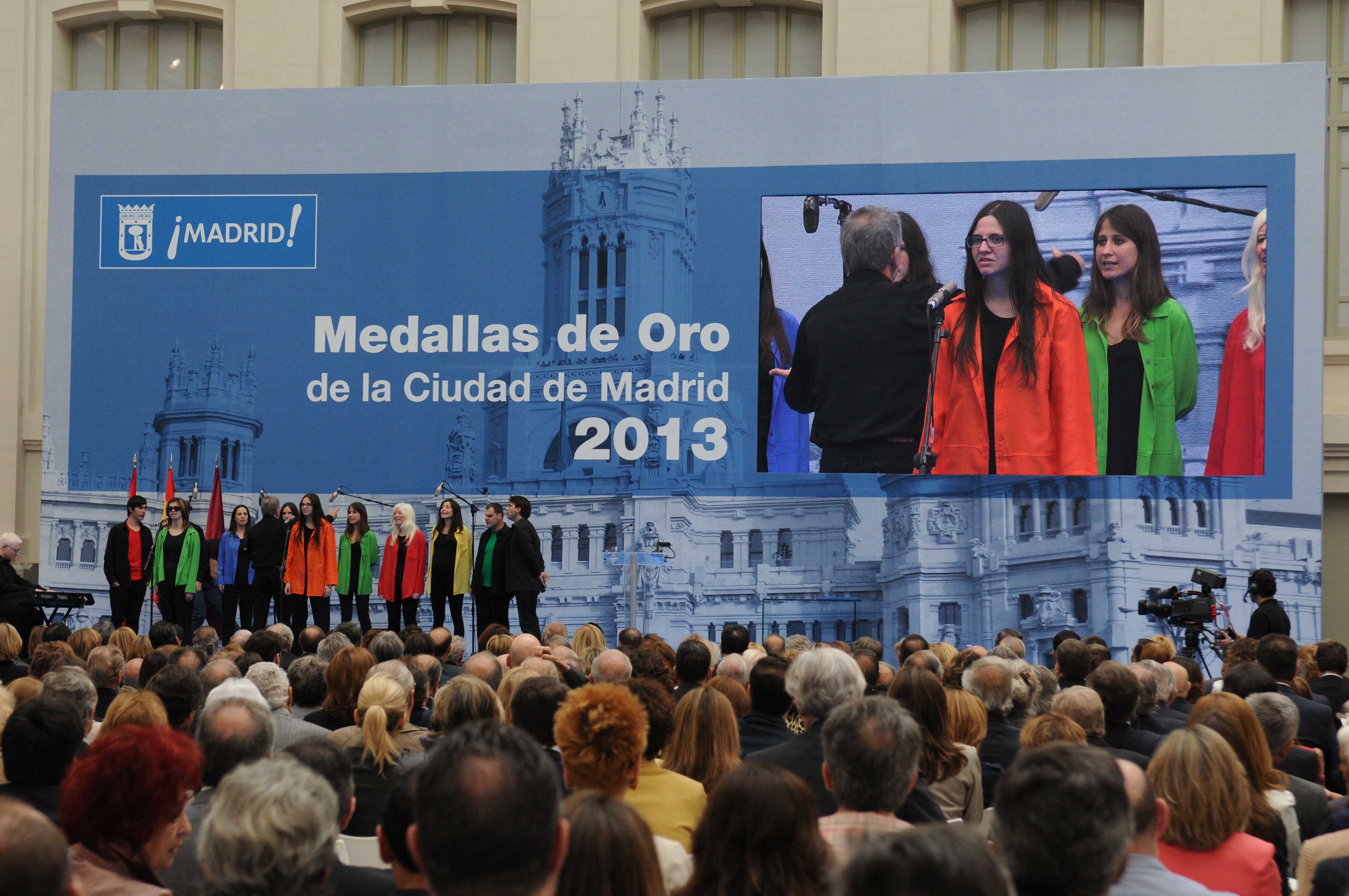 Ana Botella, alcaldesa de la ciudad, ha entregado esta mañana en la Galería de Cristal de Cibeles, las Medallas de Oro de Madrid, un reconocimiento que, en sus palabras, es para aquellos que “desde Madrid, han trabajado ejemplarmente por el bien de nuestra Nación y de todos sus ciudadanos”. Las Cortes Constituyentes de 1978, la Organización Nacional de Ciegos y la galerista Soledad Lorenzo han sido los galardonados este año. En el año en el que la Constitución celebra su 35 aniversario, el Ayuntamiento ha querido destacar a quienes participaron su aprobación y mostraron su voluntad “de romper con la inercia de una Historia en la que las Constituciones habían sido promulgadas por media España contra la otra media”. Creada en 1938, la Organización Nacional de Ciegos cumple 75 años “ilusión y trabajo inagotable por la integración de las personas con discapacidad”. En este tiempo se ha convertido en “un referente en todo el mundo a la hora de proporcionar los mejores servicios especializados a sus más de 71.000 afiliados, de los cuales cerca de 10.000 son madrileños”. Soledad Lorenzo, santanderina de nacimiento, en 1986 abrió en el número 5 de la calle Orfila, la galería que lleva su nombre. Allí, como recordó la alcaldesa, protagonizó “una de las aventuras artísticas y empresariales más extraordinarias del galerismo español e internacional”. En sus paredes han colgado obra desde Tàpies o Palazuelo hasta Barceló, Broto, Pérez-Villalta o Sicilia. “Ha sido, además, una embajada del arte español en las grandes ferias internacionales” y una pieza clave “del esplendor de las artes plásticas en el Madrid de las últimas tres décadas”./ Nota: Pinche en “Textos” para acceder a la intervención íntegra de la alcaldesa y a la reseña de los premiados