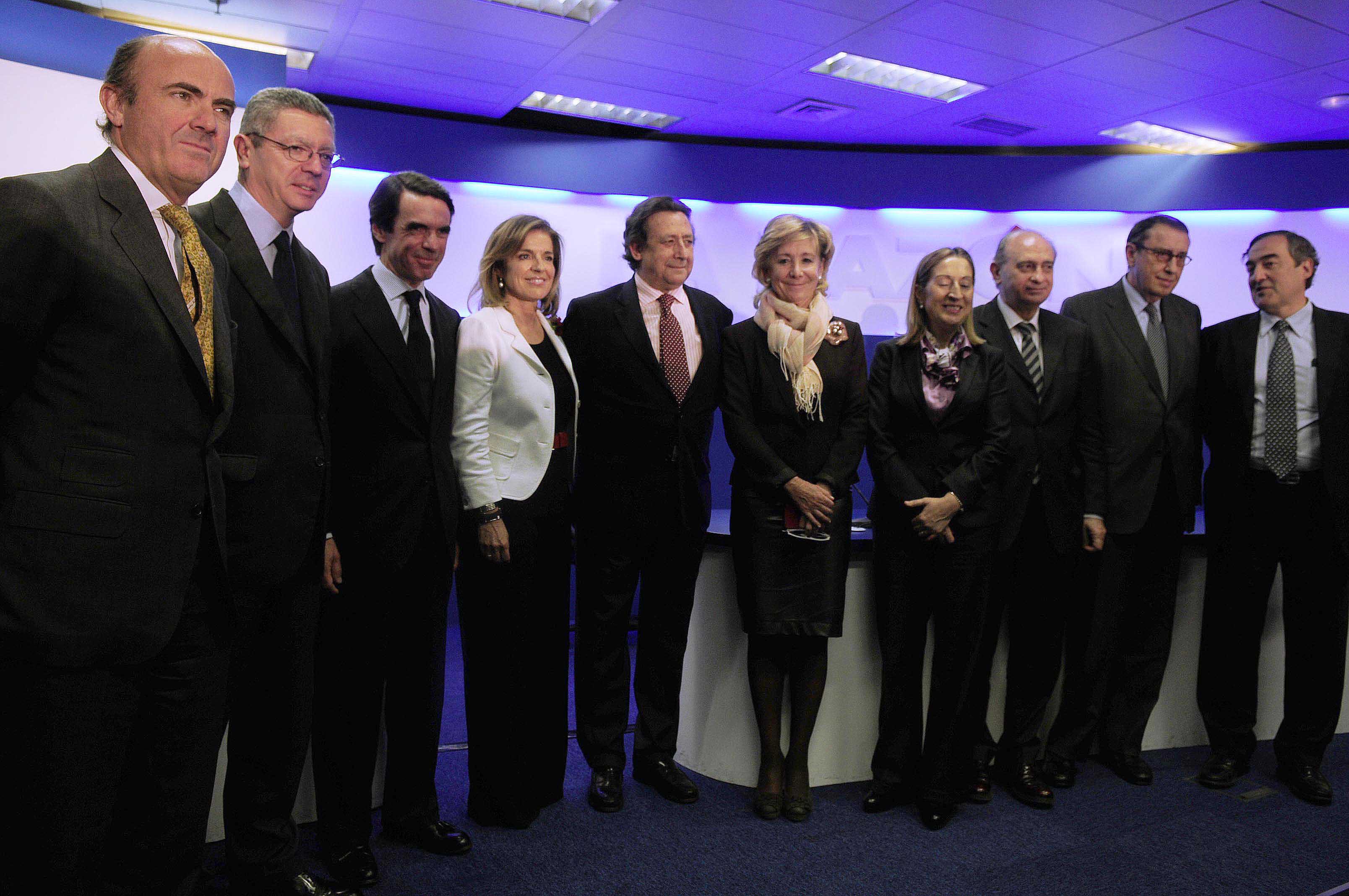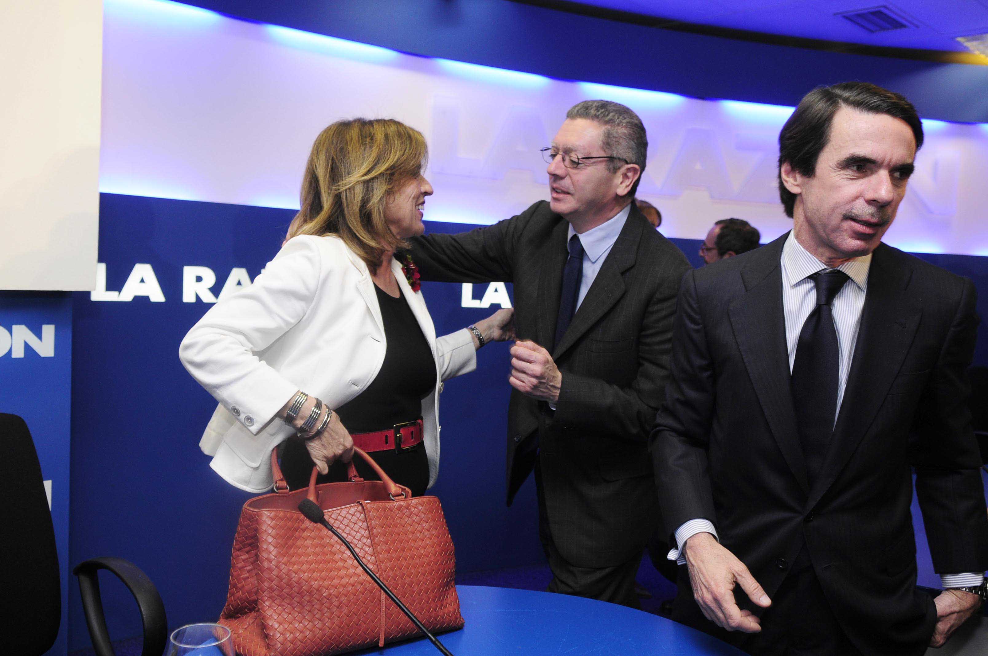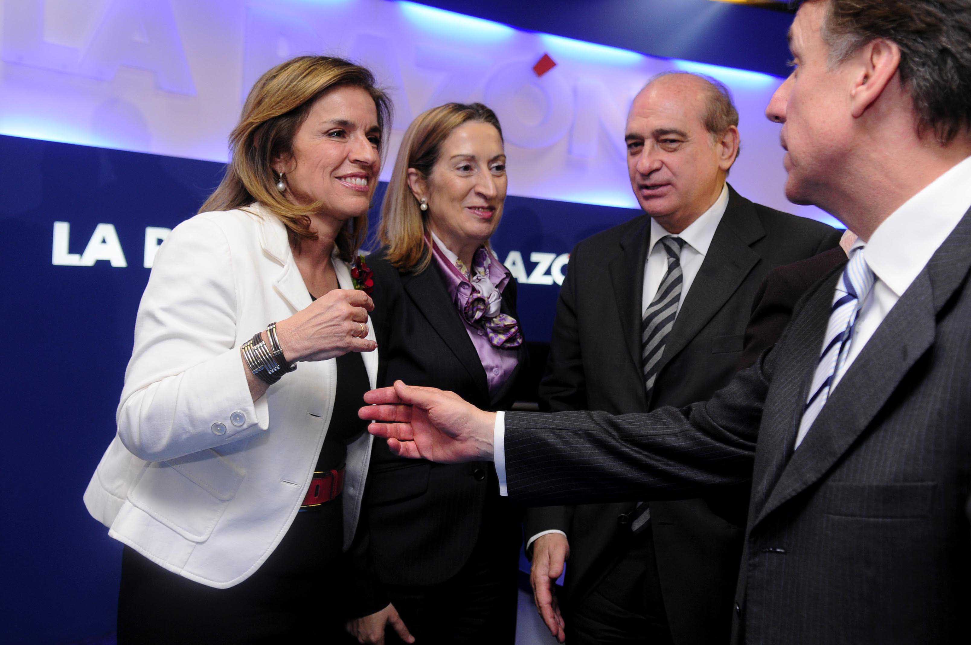 La alcaldesa de la Ciudad de Madrid, Ana Botella, durante el encuentro "La Razón de...", un acto que ha contado con la participación de Alfonso Ussía, Francisco Marhuenda, director de La Razón; Gloria Lomana, directora de Informativos de Antena 3, y Javier González Ferrari, presidente de Onda Cero. Los ministros Alberto Ruiz-Gallardón, Jorge Fernández, Luis de Guindos y Ana Pastor se han acercado a un acto, que ha contado con la asistencia de otras muchas personalidades como el ex presidente del Gobierno José María Aznar, o Esperanza Aguirre, presidenta de la Comunidad de Madrid.