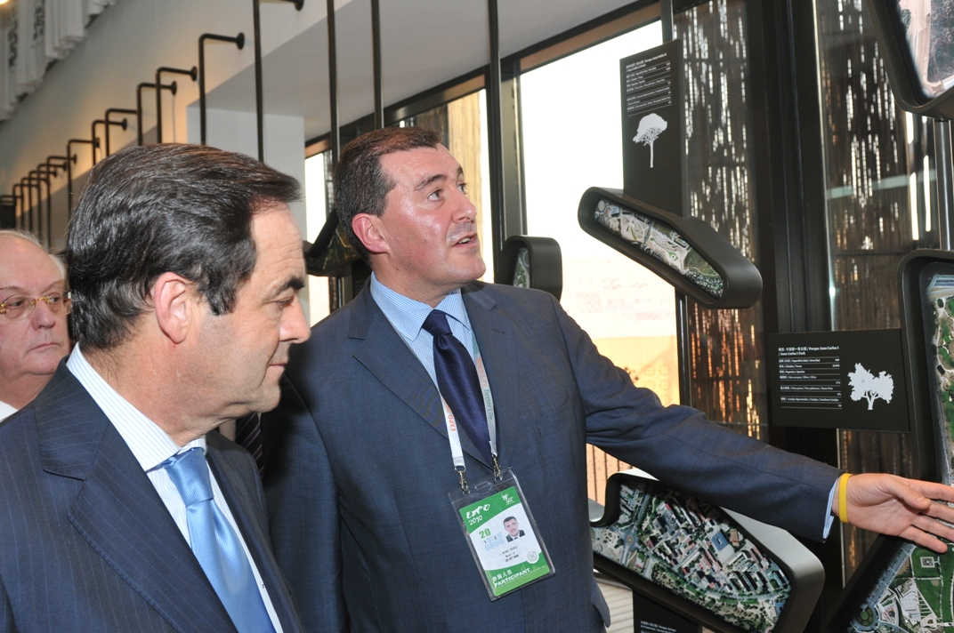 Ignacio Niño, coordinador general de Madrid Global, ha inaugurado el Pabellón Madrid en la Expo 2010 Shanghái. En las fotos, con el presidente del Congreso de los Diputados, José Bono.