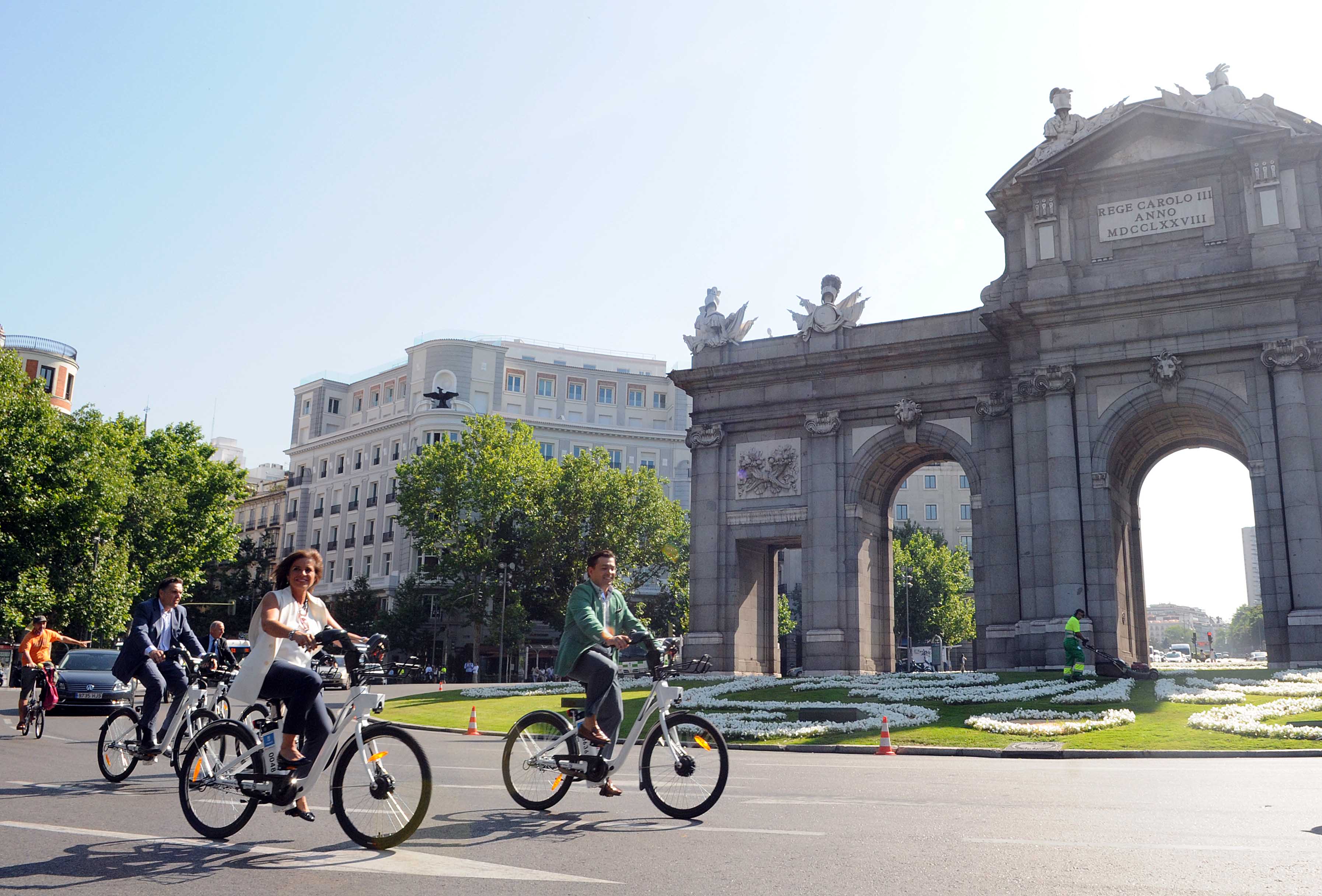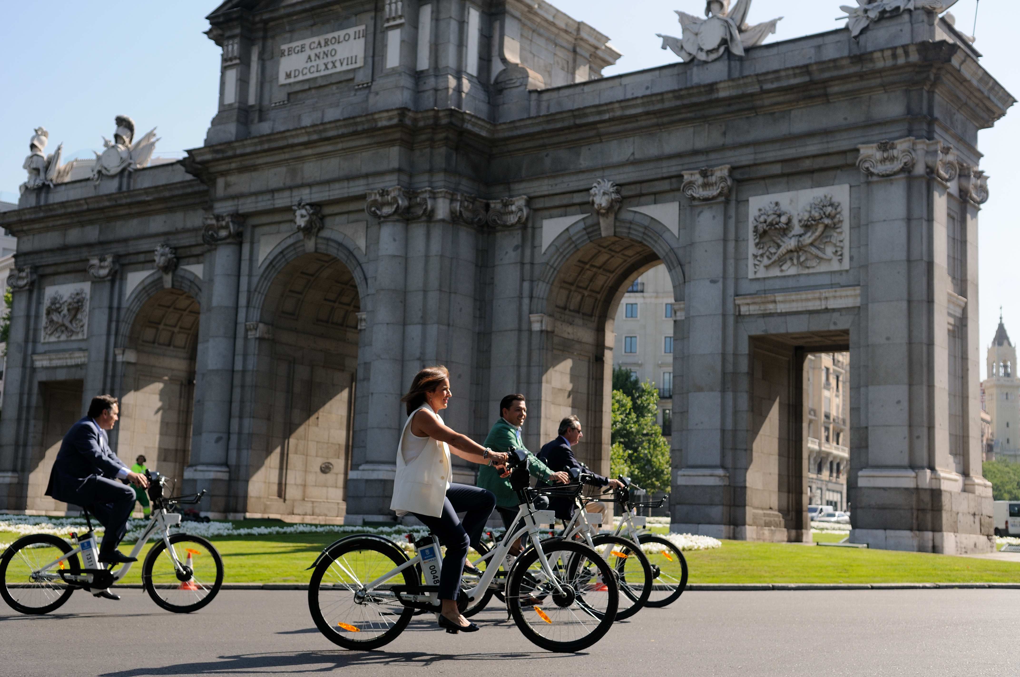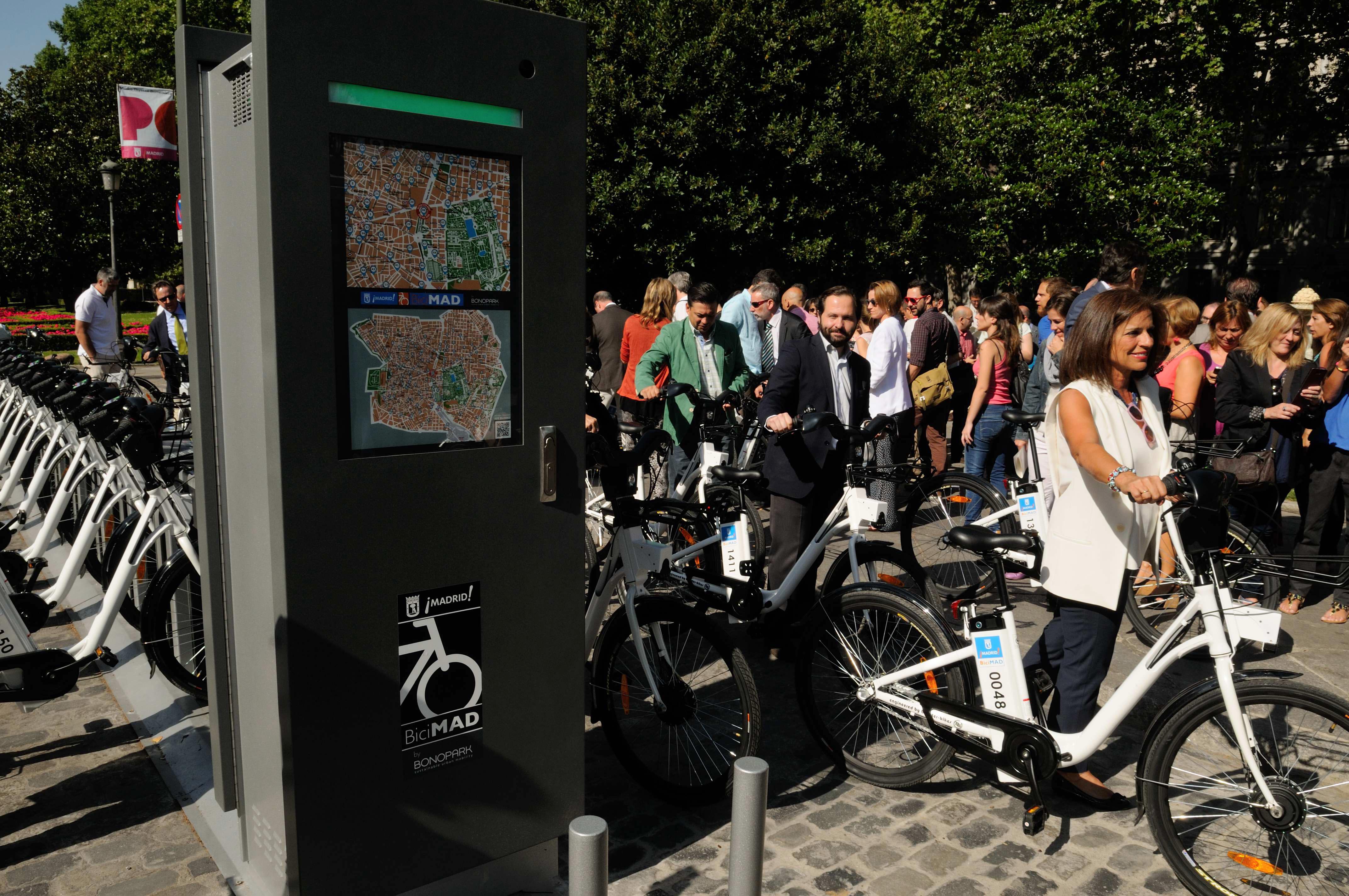Práctico, sencillo, sostenible. BiciMAD, el nuevo sistema público de bicicletas presentado hoy por Ana Botella, convierte a Madrid en la primera capital de Europa en utilizar en su totalidad bicicletas eléctricas en un proyecto de estas características. Funciona todos los días de la semana, las 24 horas del día, y empieza su andadura con una flota de 1.560 bicicletas y 3.120 anclajes, distribuidos en 123 estaciones que se reparten por los distritos de Centro, Salamanca, Arganzuela, Retiro, Moncloa-Aravaca y Chamberí. Es, ha dicho la alcaldesa, "la pieza del puzzle" que hasta ahora faltaba en el modelo de movilidad sostenible diseñado por su Gobierno.