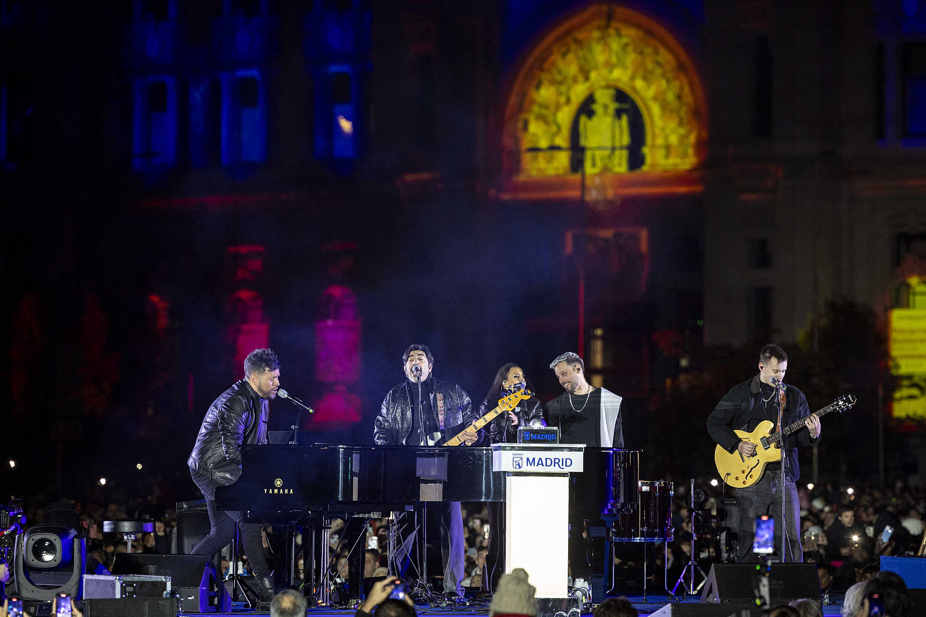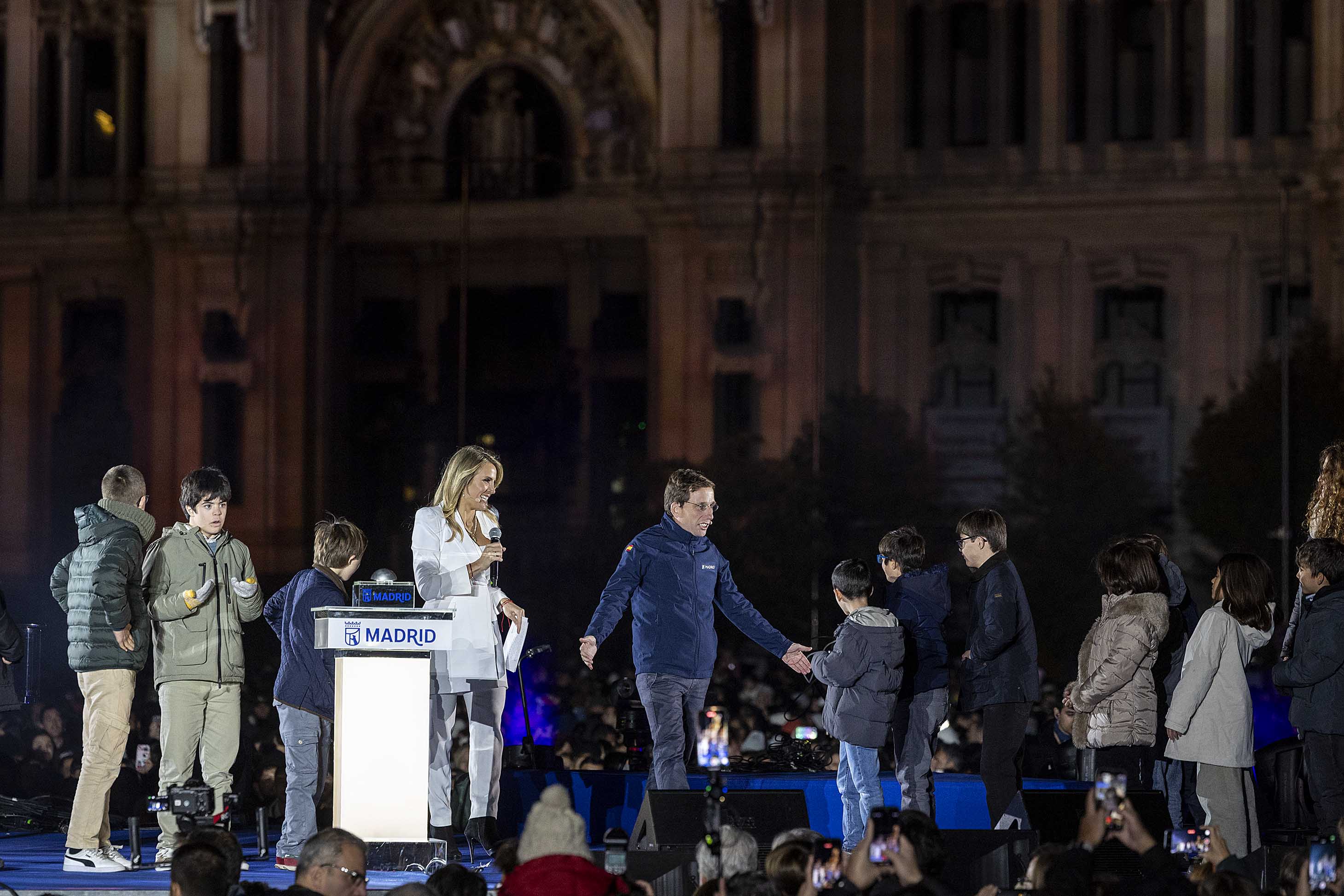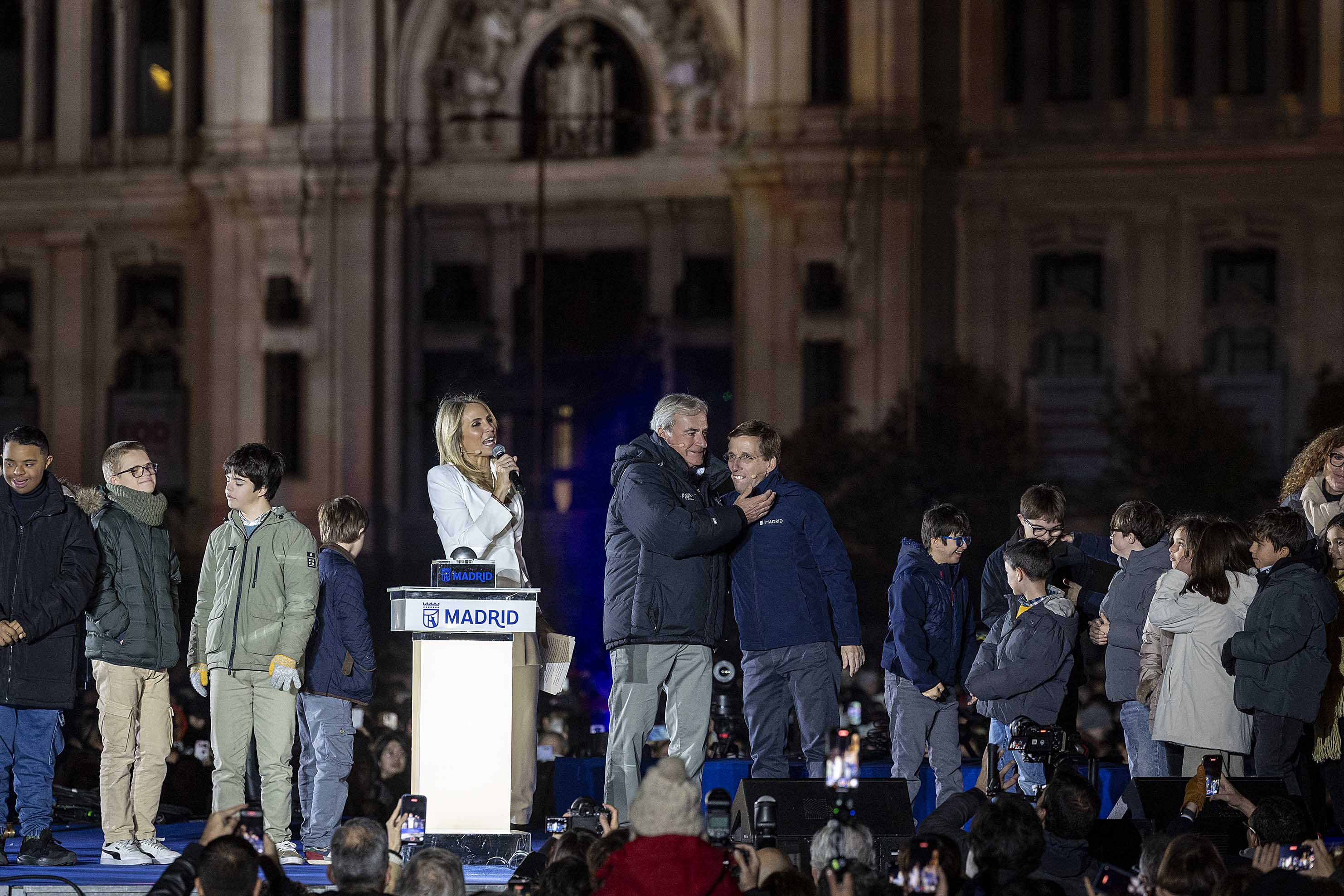 El acto, presentado por la periodista Angie Rigueiro, ha contado también con la actuación de cuatro jóvenes artistas de ‘Crescendo’, el programa del Teatro Real y su Fundación de Amigos que cada año promueve el desarrollo artístico y profesional de jóvenes talentos y futuras promesas de la lírica. La actuación de Pablo López, uno de los artistas más reconocidos del panorama musical español actual, ha tomado el relevo en el escenario, al que han subido también los niños ganadores del concurso escolar de diseño de luces de Navidad, cuyas propuestas han sido transformadas en motivos luminosos que forman parte del alumbrado madrileño, y alumnos con síndrome de Down del Colegio de Educación Especial María Corredentora.