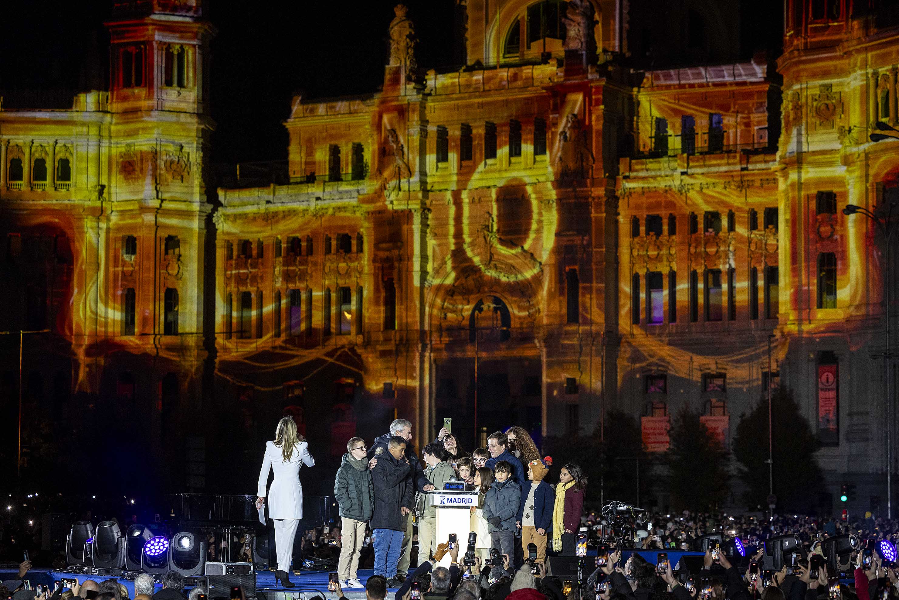 El videomapping que ha dado paso al encendido, La energía de la Navidad, ha convertido la fachada del Palacio de Cibeles en un gran lienzo vivo de luz y sonido. La pieza, fruto de la colaboración entre el Ayuntamiento de Madrid y Endesa, ha propuesto un cuento contemporáneo en el que Madrid, cosmopolita, abierta y, a la vez, profundamente familiar, ha sido la gran protagonista. El relato ha recorrido la ciudad desde su lugar más íntimo, el hogar, hasta el espacio compartido de sus calles y plazas, subrayando el alma más madrileña de estas fiestas y la idea de una luz que nace en cada casa y se expande por toda la ciudad.