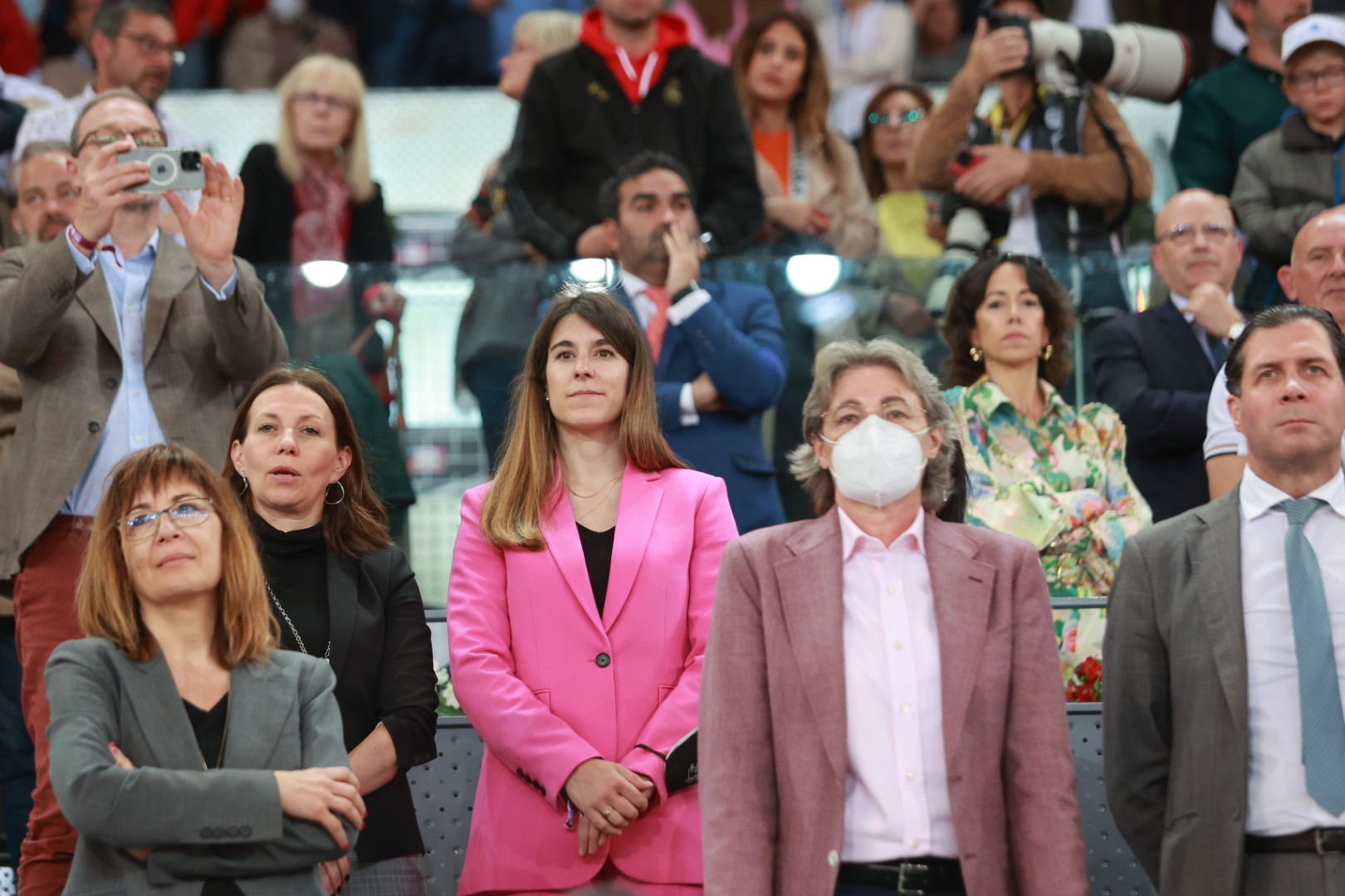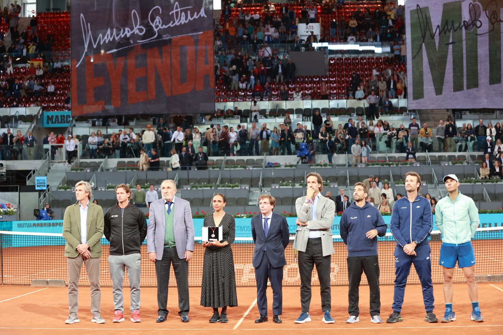 Claudia Rodríguez, viuda del tenista Manolo Santana, ha recibido hoy de manos del alcalde de Madrid, José Luis Martínez-Almeida, la distinción de Hijo Predilecto que el Ayuntamiento de la capital ha otorgado al tenista a título póstumo, en el marco de Mutua Madrid Open, torneo del que fue director durante 17 años para después pasar a ser su presidente de honor.