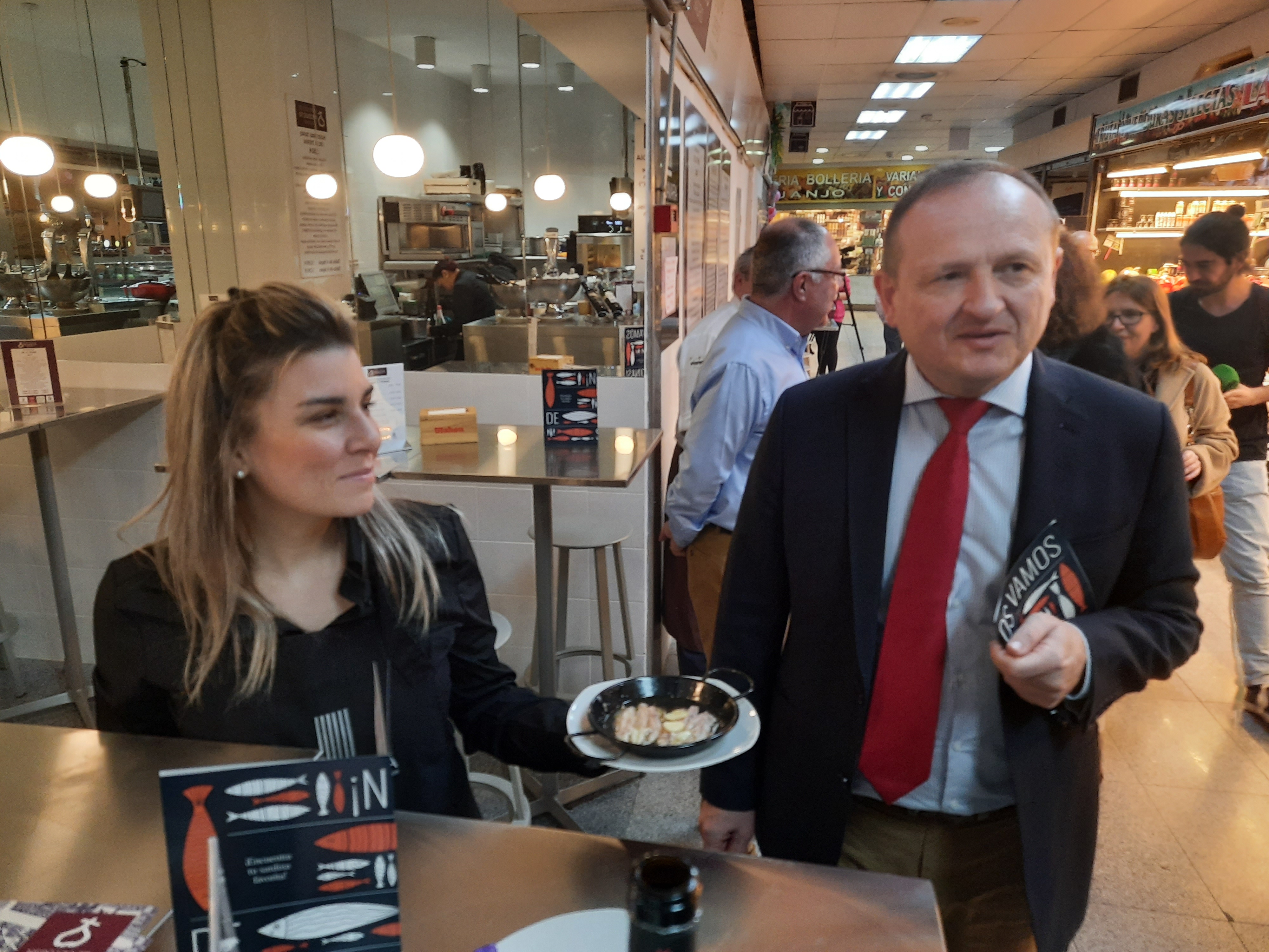 El delegado de Economía, Innovación y Empleo, Miguel Ángel Redondo, ha visitado hoy el Mercado de San Antón, uno de los lugares que acoge esta ruta gastronómica para despedir el carnaval. En palabras del delegado, “¡Nos vamos de sardinas! es una original iniciativa que nos permite acercarnos a la hostelería y al comercio de Madrid”. Redondo ha valorado “el gran esfuerzo que han hecho los mercados municipales implicados en esta particular ruta para ofrecer tapas de sardinas dulces y saladas”.