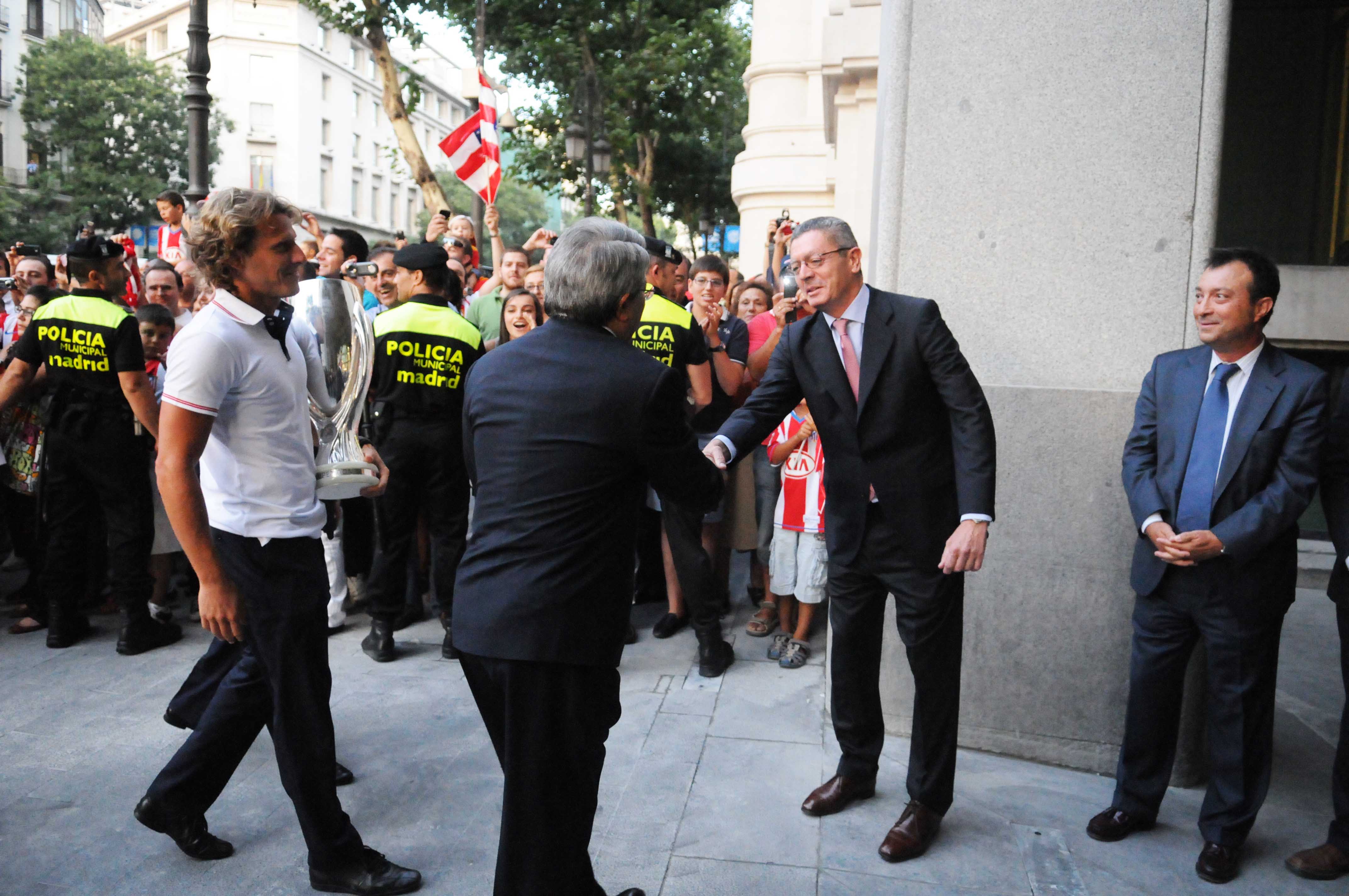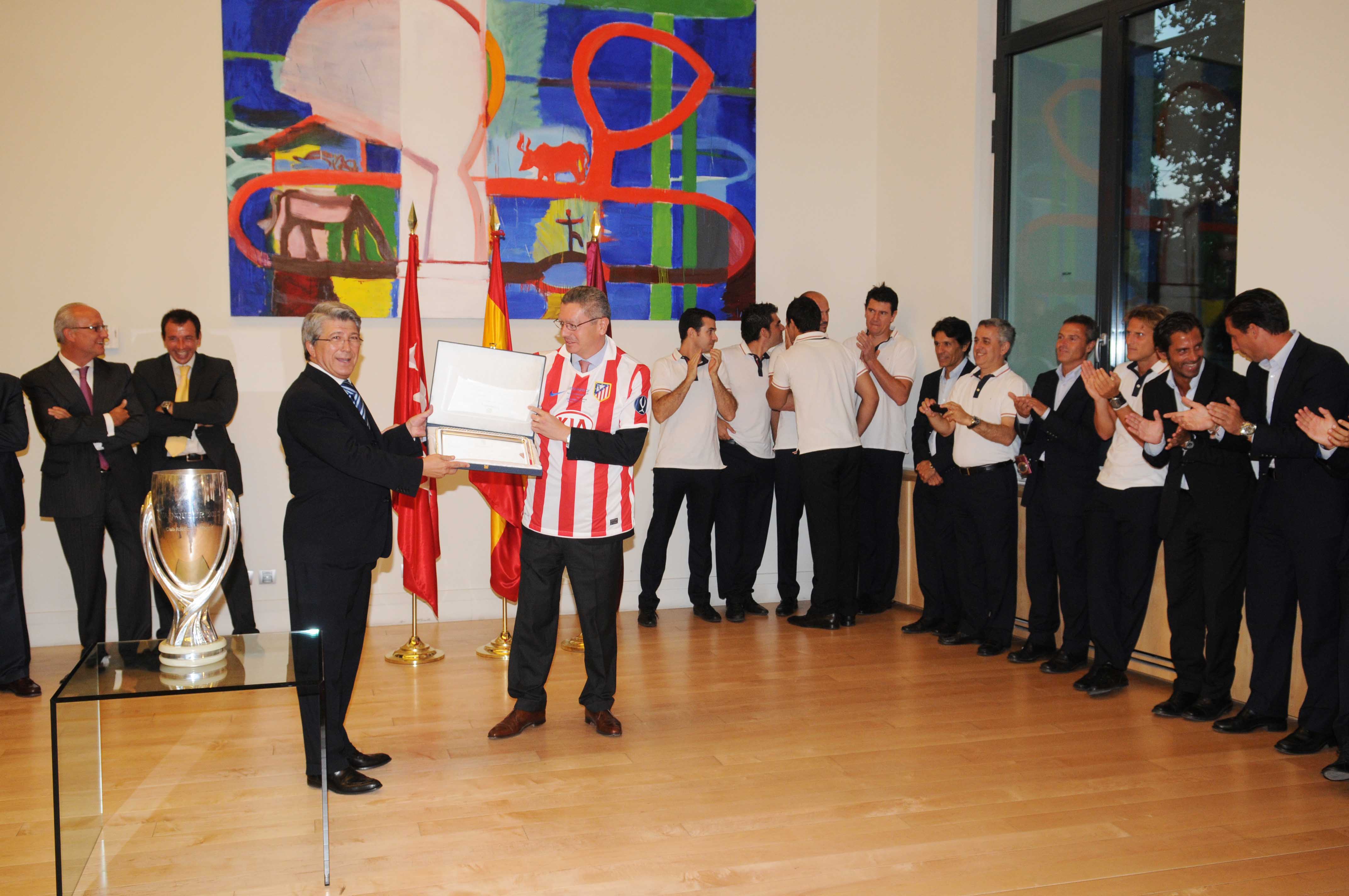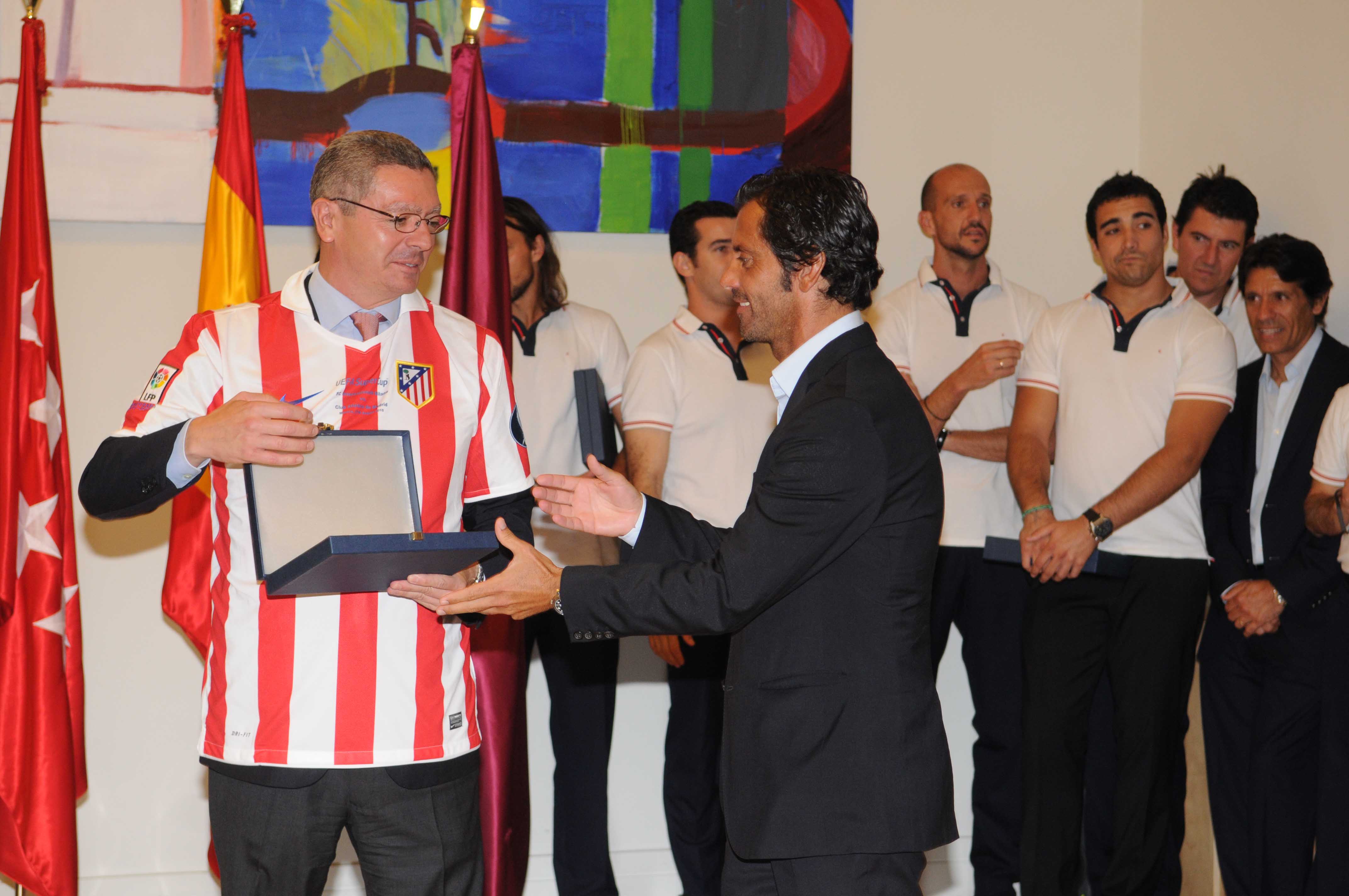 El alcalde de Madrid, Alberto Ruiz-Gallardón, ha recibido al Atlético de Madrid en la sede del Ayuntamiento.