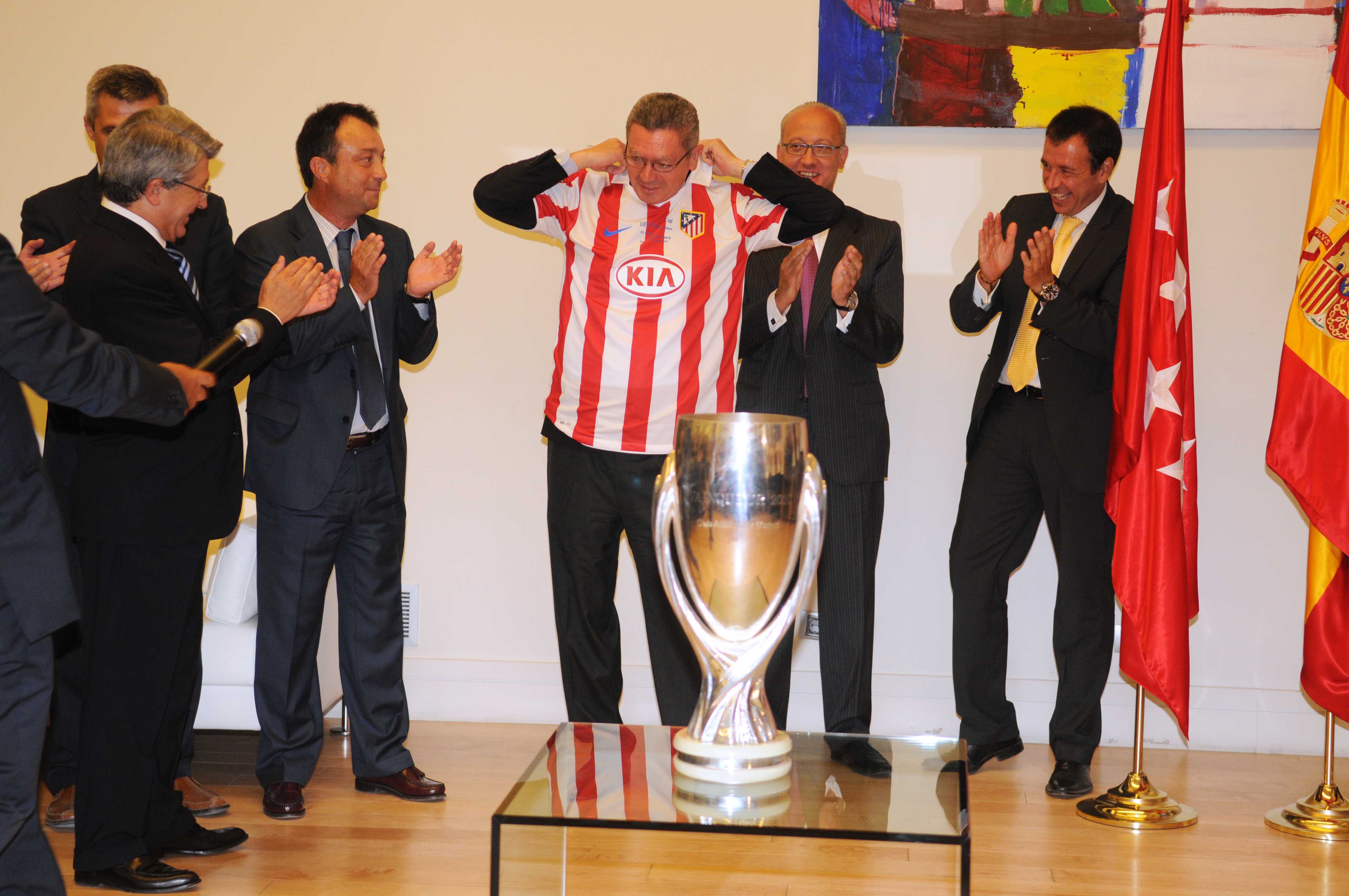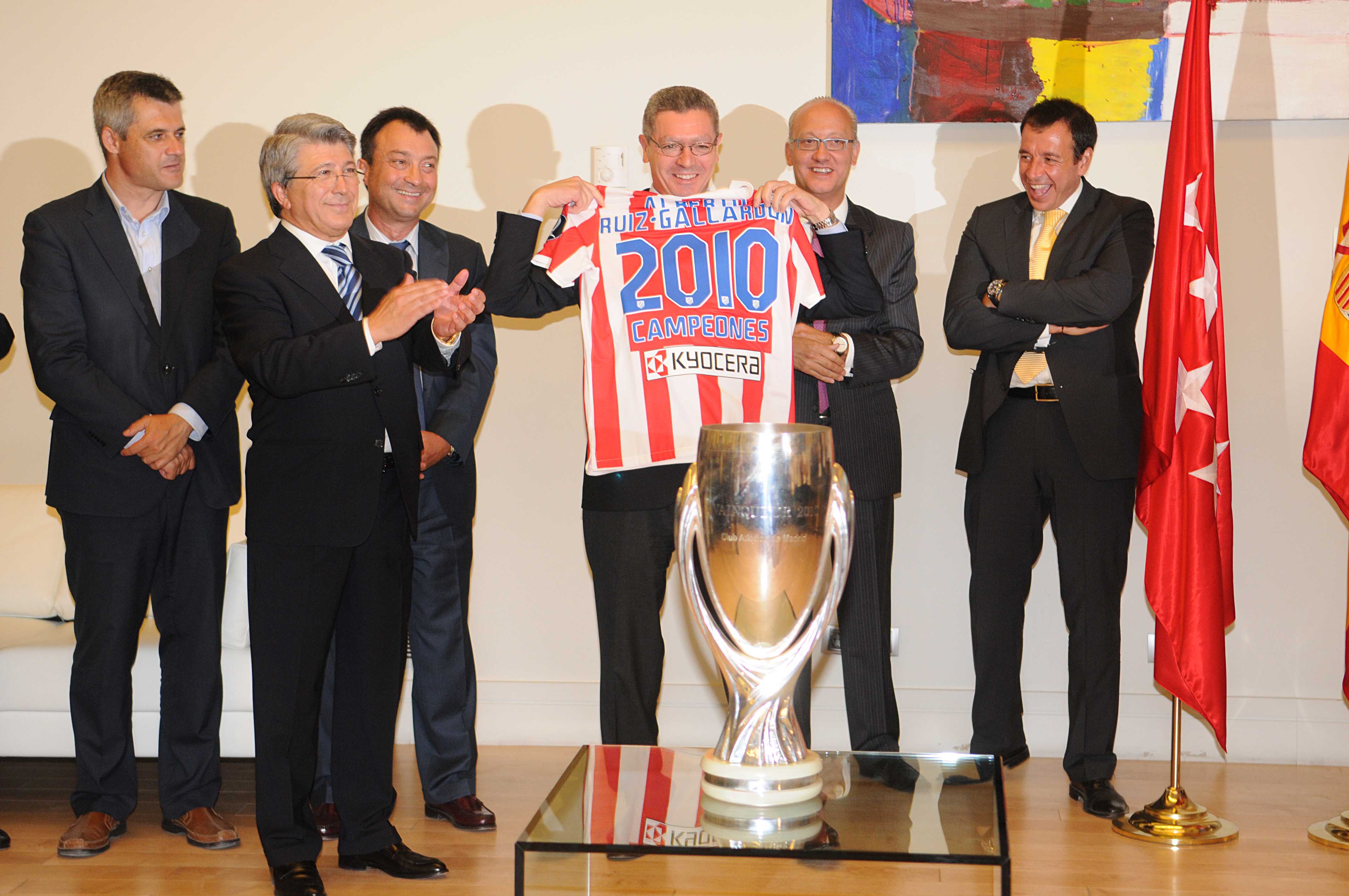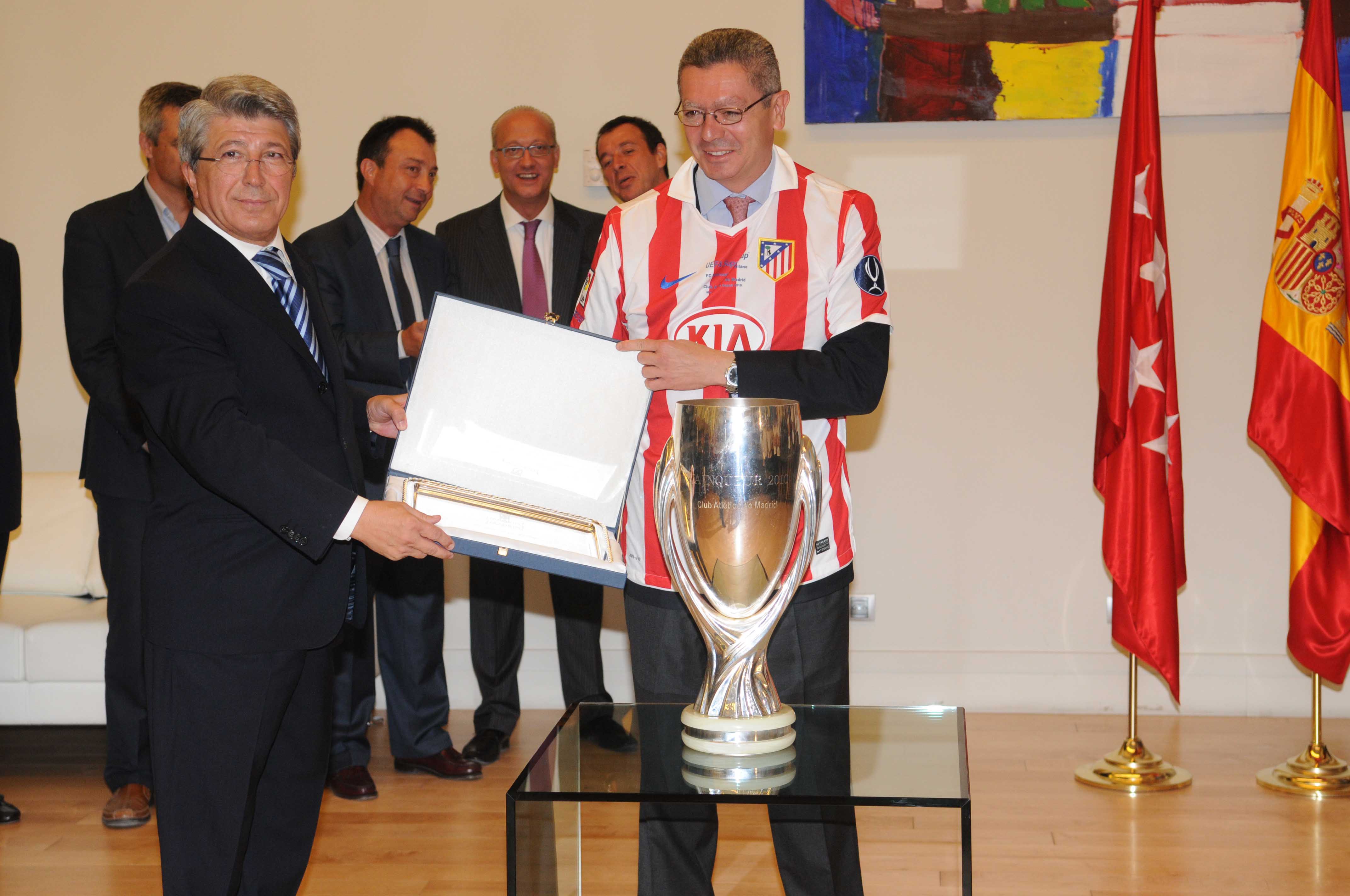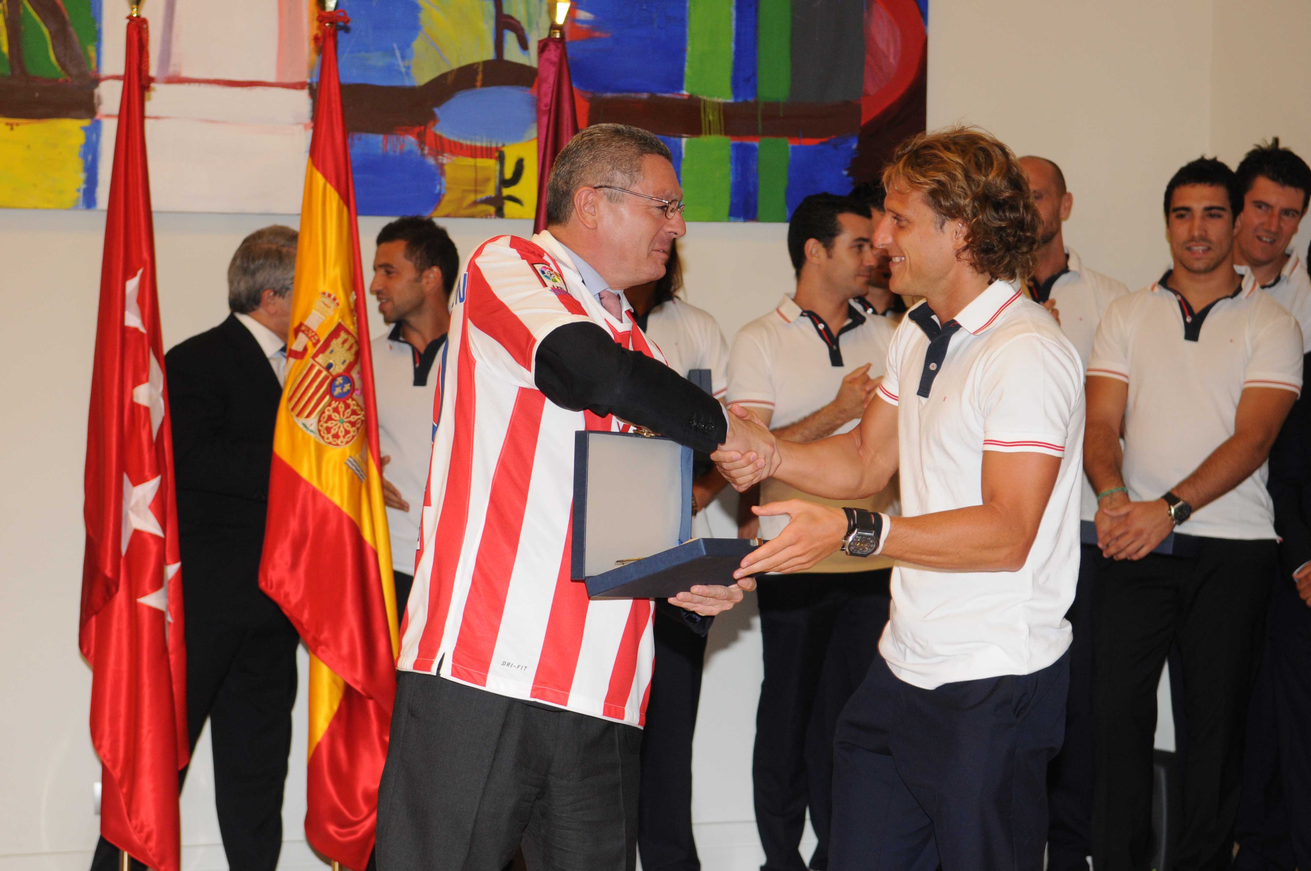 El alcalde de Madrid, Alberto Ruiz-Gallardón, ha recibido al Atlético de Madrid en la sede del Ayuntamiento.