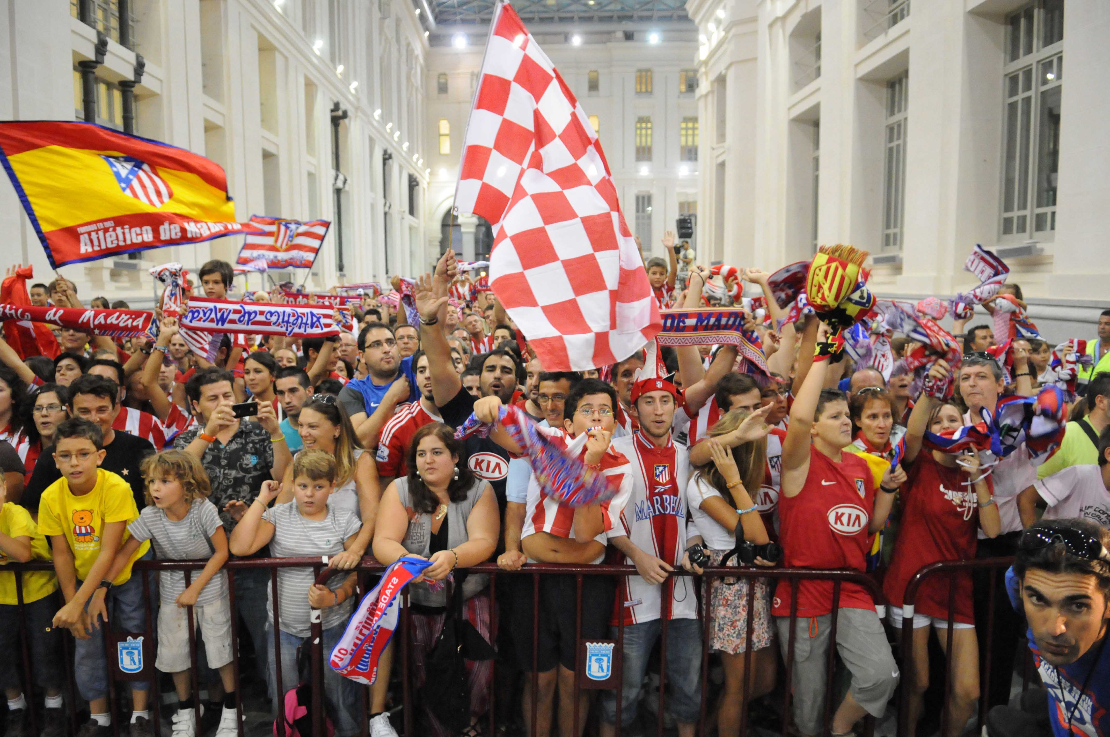 El equipo del Atlético de Madrid ha vuelto esta tarde al Ayuntamiento para recibir el homenaje de los ciudadanos después de proclamarse campeón de la Supercopa de Europa. El alcalde de Madrid, Alberto Ruiz-Gallardón, ha recordado que hace poco más de tres meses, el 13 de mayo pasado, el palacio de Cibeles se abrió para los jugadores del club madrileño que acababan de proclamarse campeones de la Copa de la UEFA en Hamburgo. Hoy tocaba celebrar la victoria del Atlético en Mónaco, donde el pasado viernes obtuvo una rotunda victoria frente al Inter de Milán por dos goles a cero, marcados por Reyes y Agüero. Y los aficionados han seguido al equipo por Madrid, en un itinerario que ha concluido en la sede del Ayuntamiento entre aplausos y vítores.