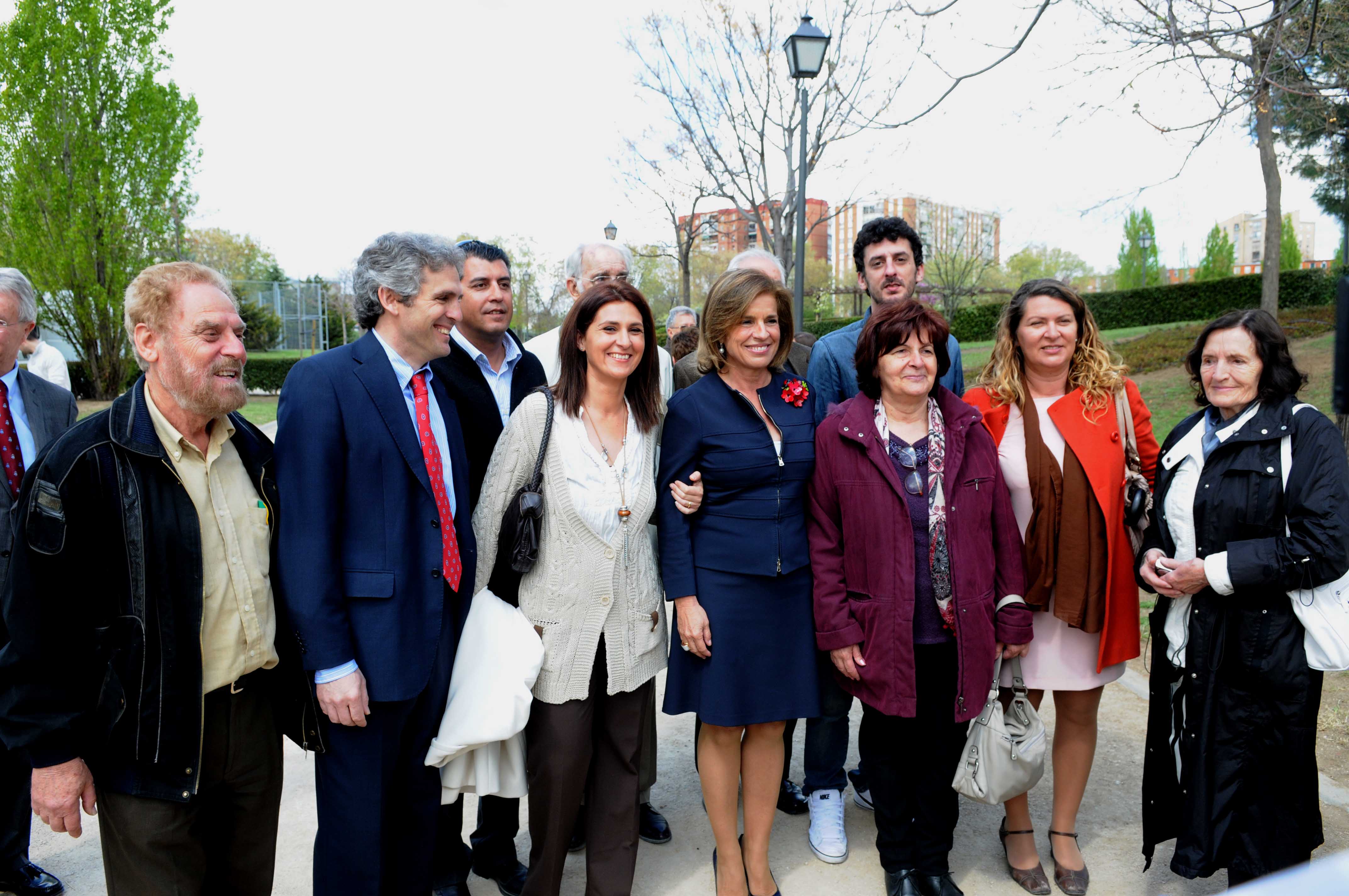 La alcaldesa de Madrid, Ana Botella, presidió esta mañana el homenaje al concejal del Ayuntamiento Andrés Saborit que desde hoy tiene una calle con su nombre y un monolito en su recuerdo en el Parque de la Cuña Verde de Latina. En las imágenes, Botella en varios momentos del acto en el que estuvieron presentes el hijo y los nietos del homenajeado