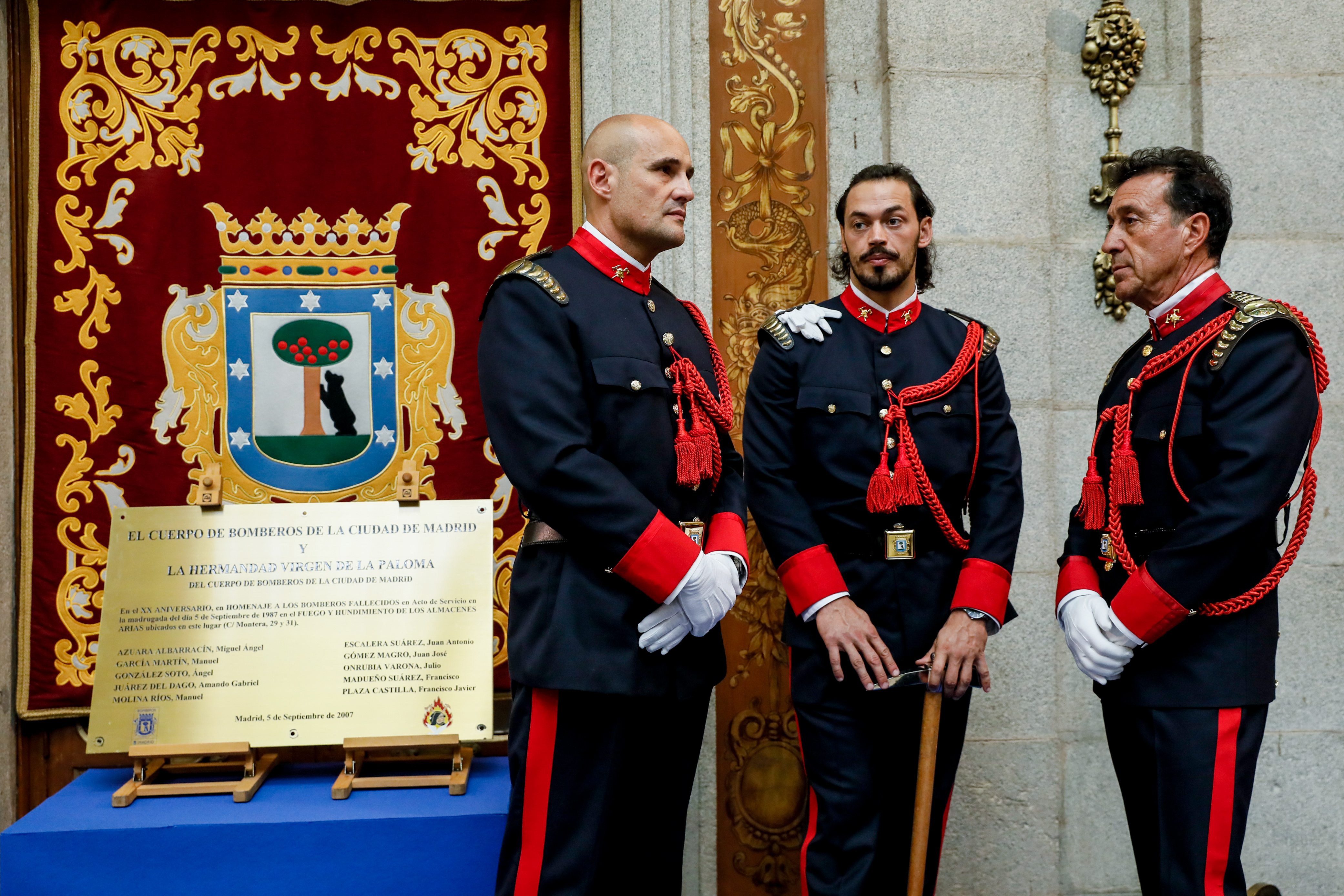 En el acto, que ha tenido lugar en el Patio de Cristales de la Plaza de la Villa, también han participado el concejal del distrito de Centro, Carlos Segura, representantes de la corporación municipal y de sus diferentes grupos, así como miembros del cuerpo municipal de Bomberos y familiares de los bomberos fallecidos.