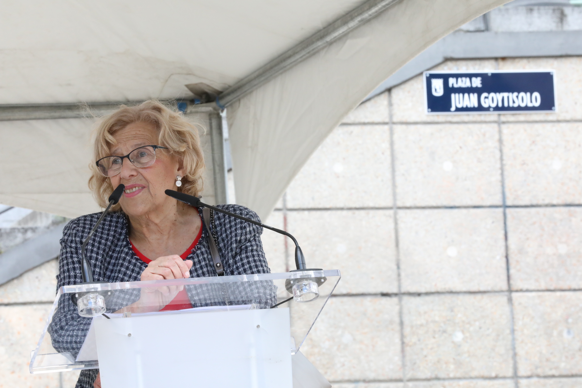 - Manuela Carmena: “Juan decía que el mundo es la casa de los que carecen de ella. Que esta plaza sea una plaza del mundo, sea una plaza del mundo en la que encuentren su hogar los que carecen de ella”
