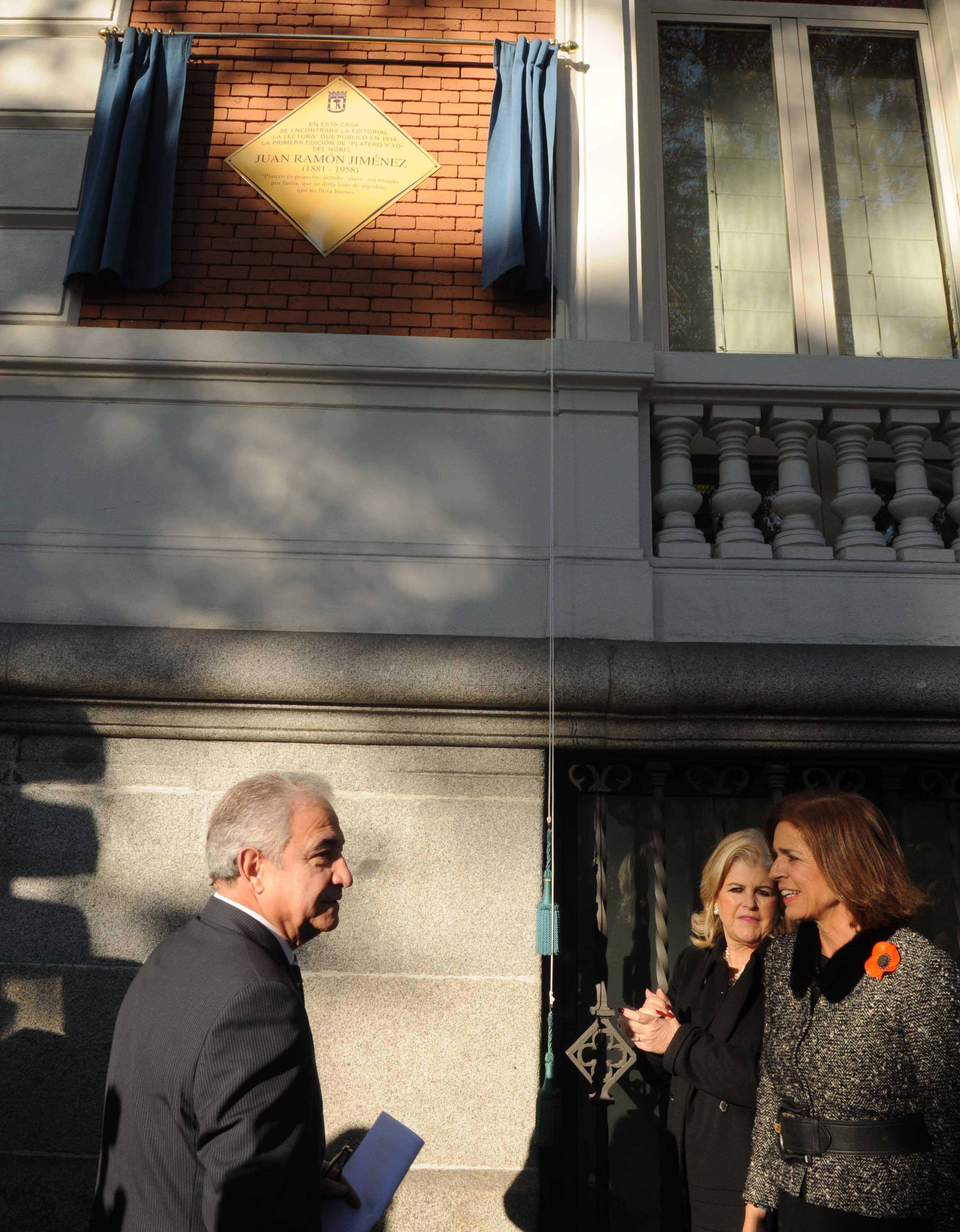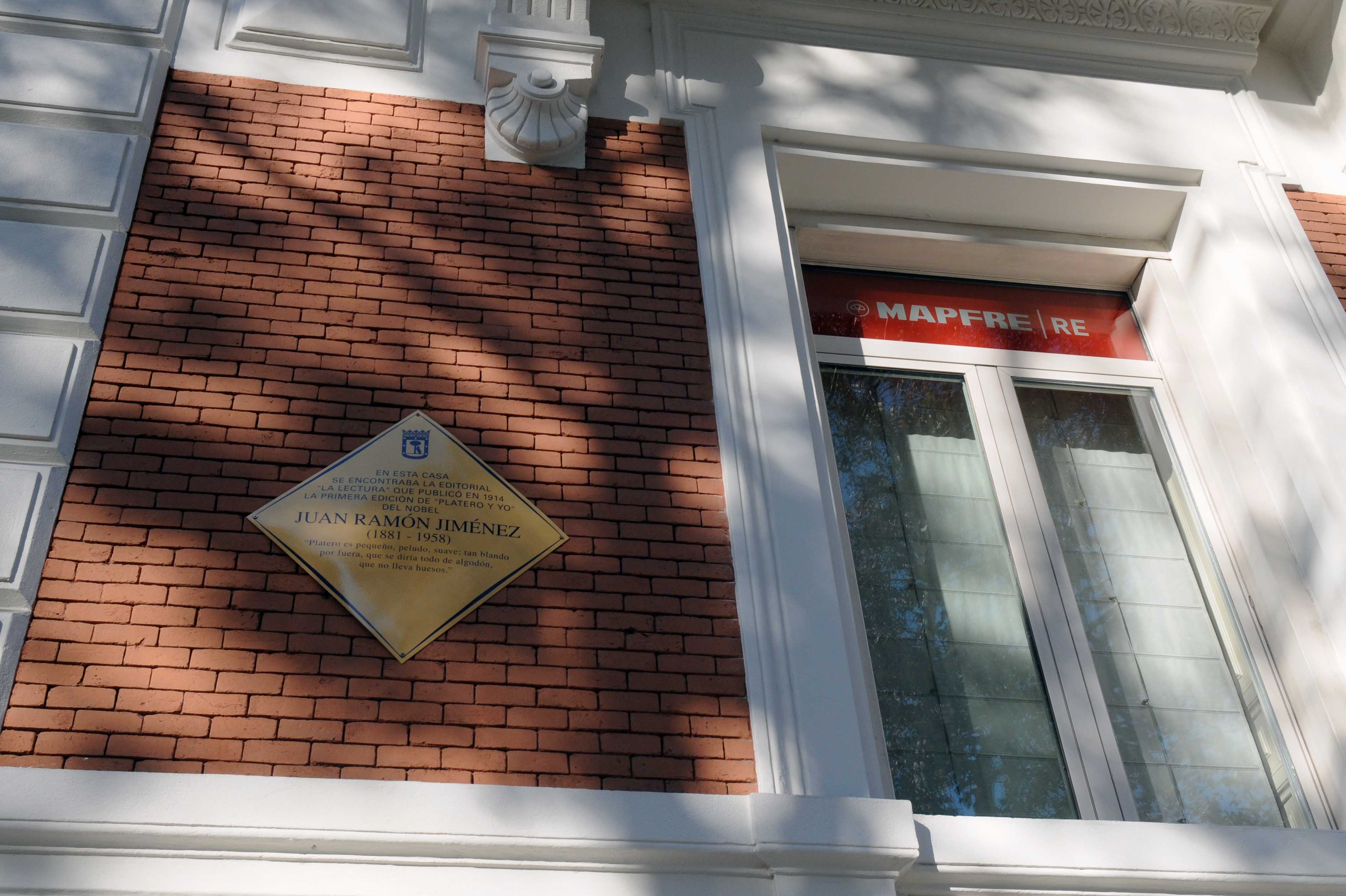 El 12 de diciembre de 1914, hoy hace cien años, desde la editorial La Lectura situada en el Paseo de Recoletos , donde se levanta la sede de MAPFRE, salían a la luz las primeras páginas de un libro universal. Era la primera edición de "Platero y yo", al que la alcaldesa Ana Botella ha rendido homenaje y con él a su autor Juan Ramón Jiménez. El recuerdo del premio Nóbel está muy presente en la capital donde vivió durante treinta años.