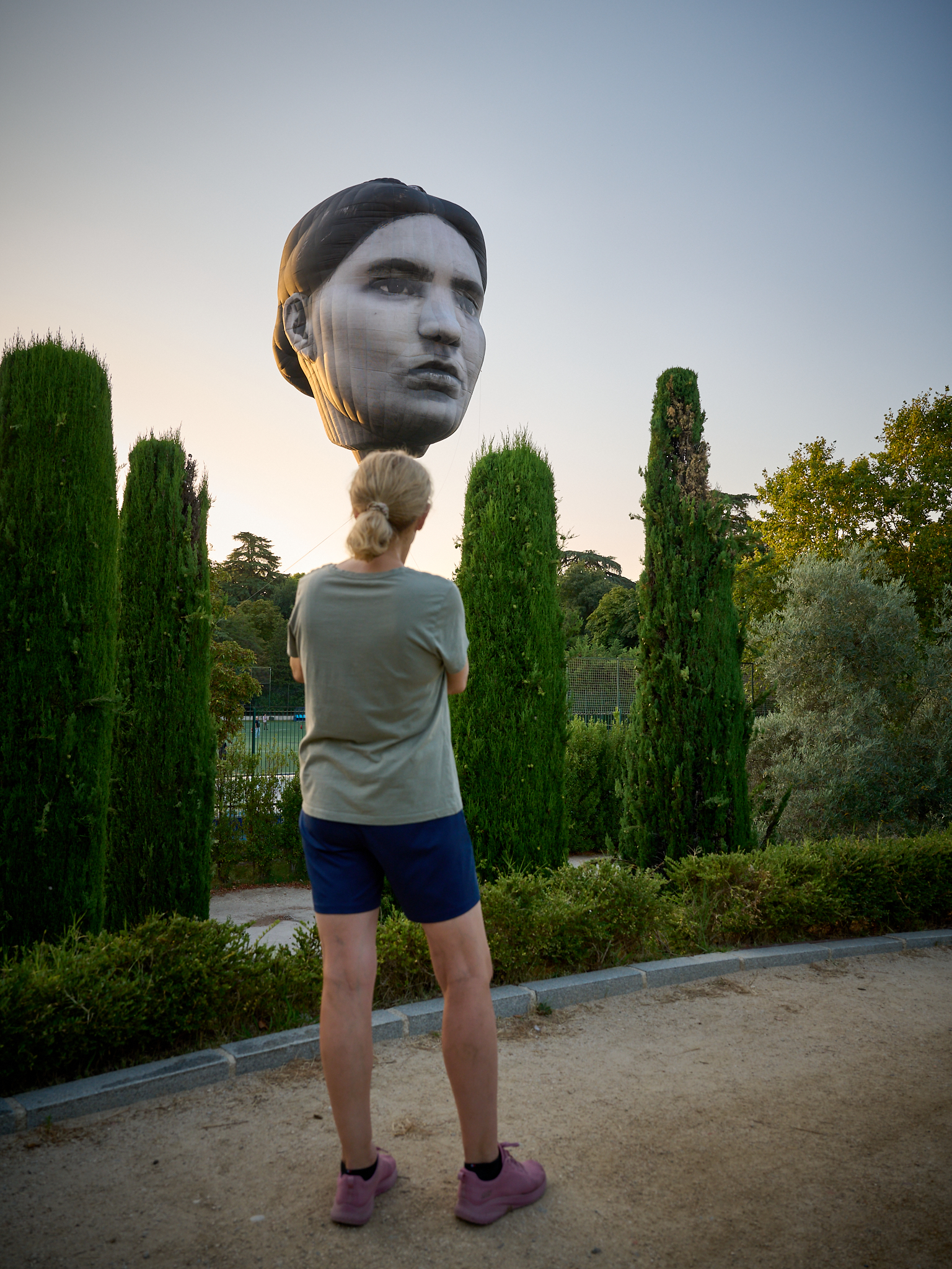 Una enorme cabeza anónima de una persona real, que ha sido elegida a través de un reclutamiento internacional abierto, sin distinción de edad, sexo o nacionalidad, sobrevuela Madrid. El rostro abrumador de alguien que podría ser cualquiera de nosotros y nos devuelve la mirada. Este es el punto del que parte el colectivo de artistas para lograr su objetivo: confirmar nuestra forma de ser, lo que somos, visualizándonos como parte del paisaje.