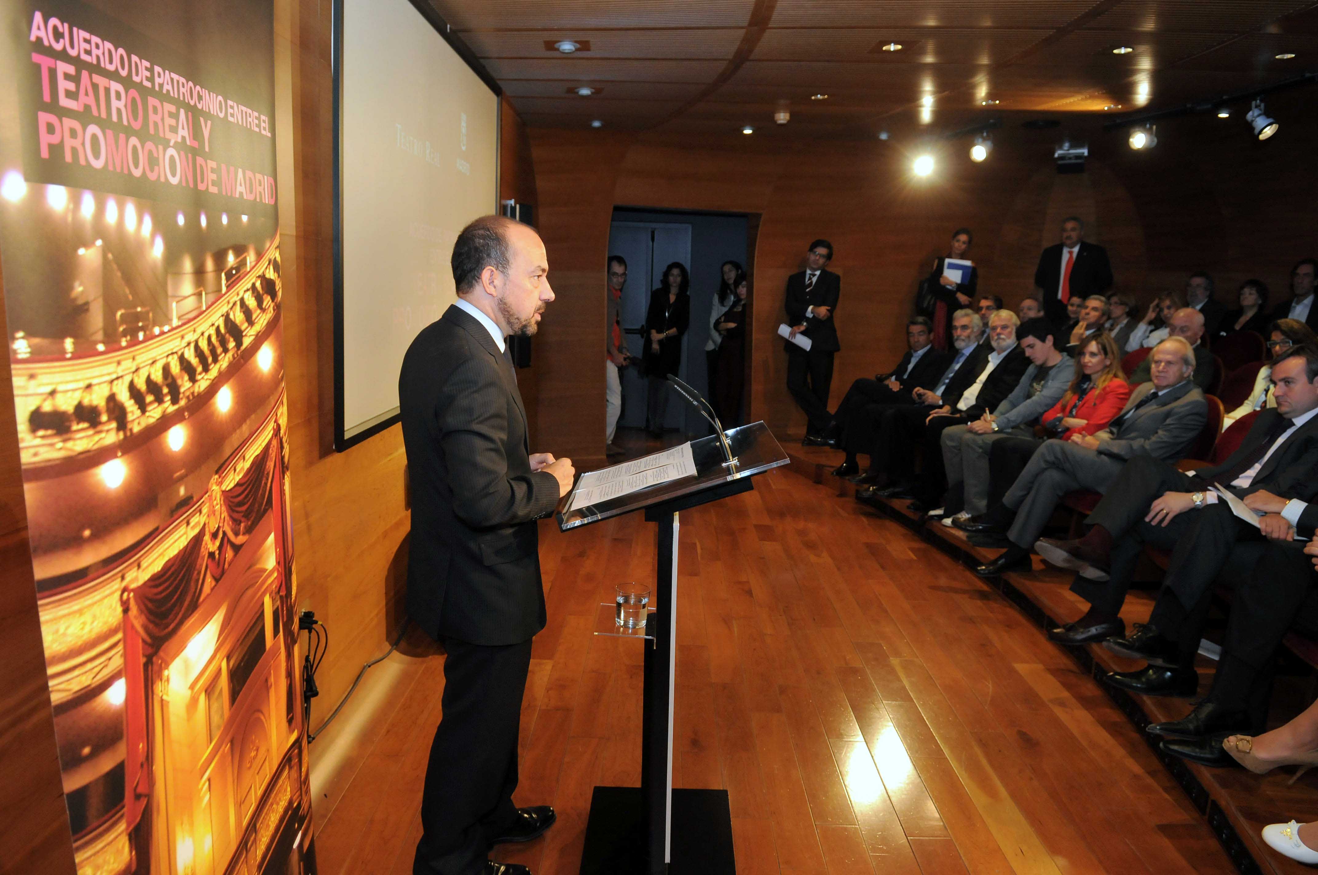 El Ayuntamiento de Madrid contará con un aliado de excepción para promocionar la imagen de la capital dentro y fuera de España: el Teatro Real. El delegado del Área de Gobierno de Economía y Empleo, Miguel Ángel Villanueva, ha presentado hoy un acuerdo de colaboración con el director general de la Fundación Teatro Real, Miguel Muñiz, por el que la Empresa Municipal Promoción de Madrid se convierte en patrocinador de la institución y la marca ¡MADRID! estará presente en la Temporada de Ópera 2009/2010.