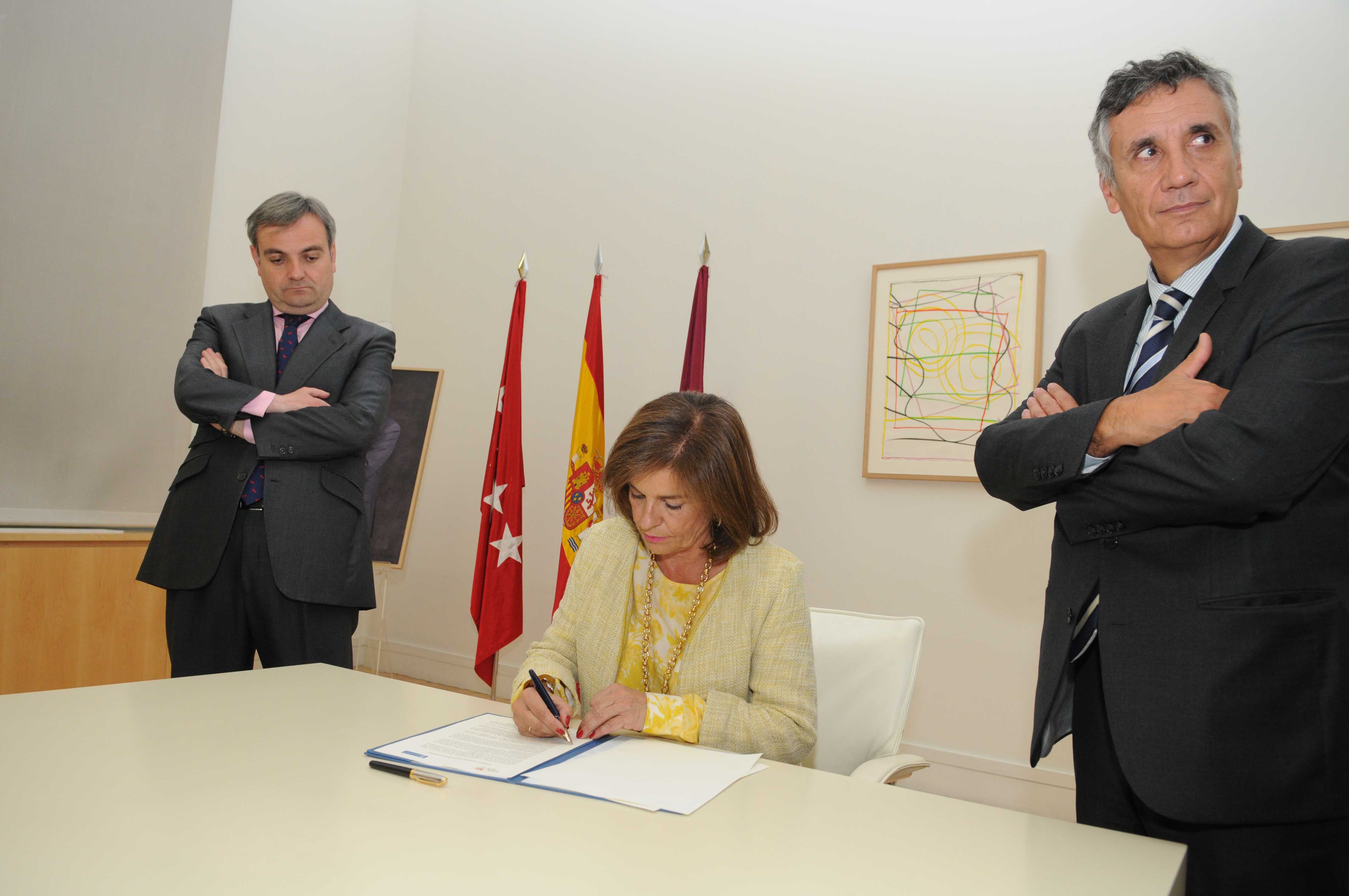 La alcaldesa de Madrid durante la firma de adhesión de la Ciudad de Madrid a la “Alianza de Ciudades contra la Obesidad”. Se trata de un proyecto que promueve la colaboración estrecha entre las autoridades locales, la comunidad científica, la sociedad civil y el sector privado de las ciudades españolas en el diseño de proyectos urbanos que promuevan tanto una alimentación saludable como una actividad física regular.