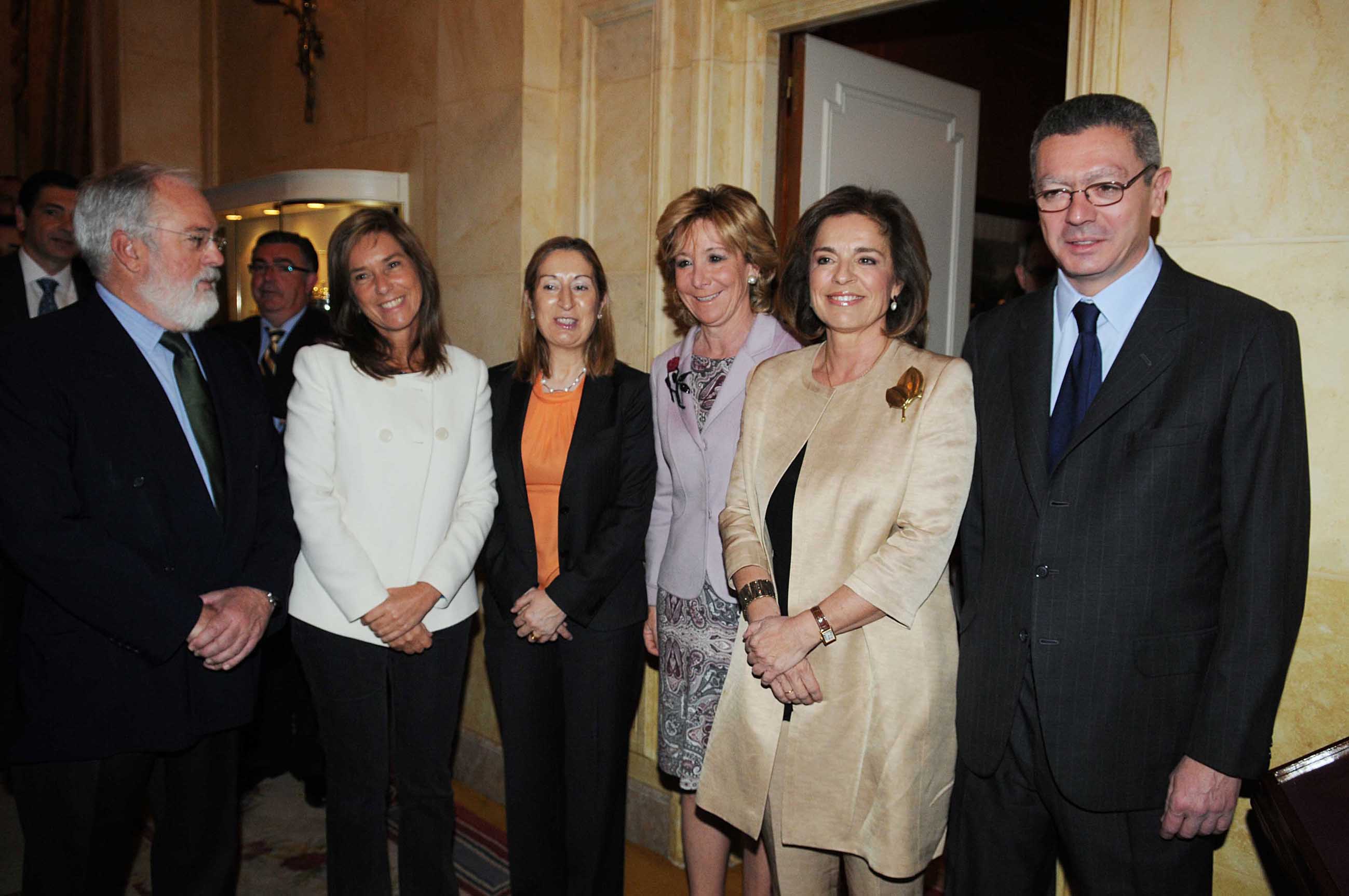 Entre los asistentes a la conferencia, las ministras de Fomento, Ana Pastor; Empleo y Seguridad Social, Fátima Báñez, y de Sanidad y Asuntos Sociales, Ana Mato; los ministros de Justicia y exalcalde de Madrid, Alberto Ruiz-Gallardón; Industria, José Manuel Soria, y de Agricultura, Miguel Arias-Cañete. También el vicepresidente del Senado, Juan José Lucas; la presidenta de la Comunidad de Madrid, Esperanza Aguirre; el presidente de la Asamblea, José Ignacio Echeverría; el vicesecretario de Estudios y Programas del PP, Esteban González Pons; el secretario ejecutivo de Política Local del PP, Manuel Cobo. Por parte del Ayuntamiento de la Ciudad de Madrid han acudido el vicealcalde, Miguel Ángel Villanueva, concejales del Gobierno municipal y representantes de los grupos de la oposición. Tampoco han faltado miembros del mundo empresarial como Florentino Pérez, Baldomero Falcones, José Manuel Entrecanales y Ángel Simón.