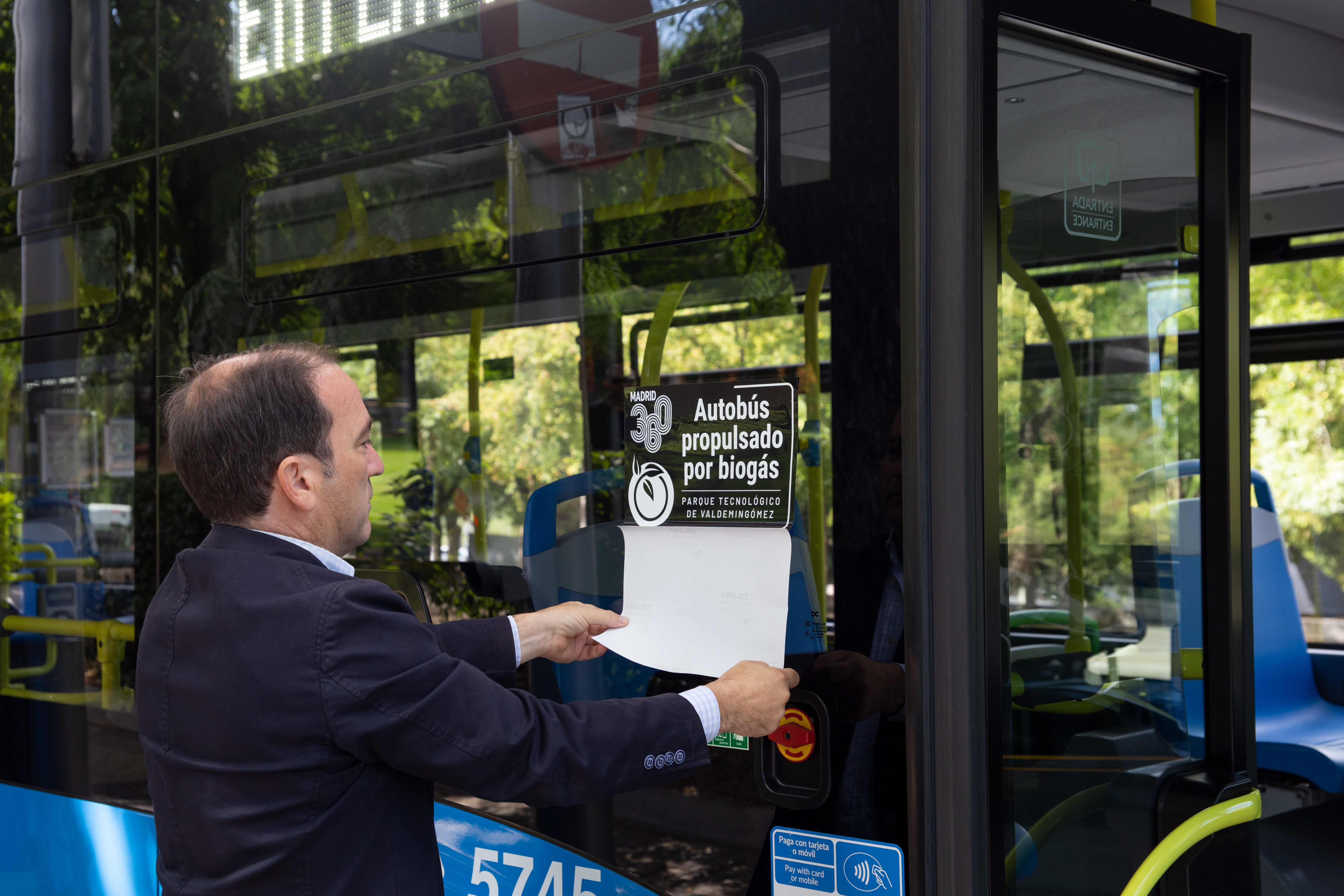 La energía renovable generada a partir de los residuos orgánicos en el Parque Tecnológico de Valdemingómez servirá para mover el transporte público madrileño. El delegado de Medio Ambiente y Movilidad, Borja Carabante, acompañado por el delegado de Economía, Innovación y Empleo, Miguel Ángel Redondo, ha presentado esta mañana la iniciativa fruto del acuerdo entre la Empresa Municipal de Transportes de Madrid y el Área de Medio Ambiente y Movilidad a través del Parque Tecnológico de Valdemingómez. Gracias al convenio entre ambas entidades, una de las líneas de autobuses municipales de GNC utilizará el biometano generado en el parque tecnológico madrileño. A la presentación han acudido el director gerente de la EMT, Alfonso Sánchez, la directora general del Parque Tecnológico de Valdemingómez, María José Delgado, y los directores generales de las compañías Axpo Iberia, Ignacio Soneira, y PreZero, Gonzalo Cañete.