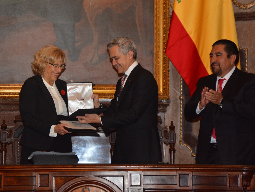 El pasado año, Carmena y el coordinador general de Asuntos Internacionales del Gobierno de la Ciudad de México, Cuauhtémoc Cárdenas reiteraron su compromiso mutuo con la firma de una declaración de intenciones para iniciar un programa de cooperación integral entre ambas ciudades, a través de la Unión de Ciudades Capitales Iberoamericanas (UCCI)./