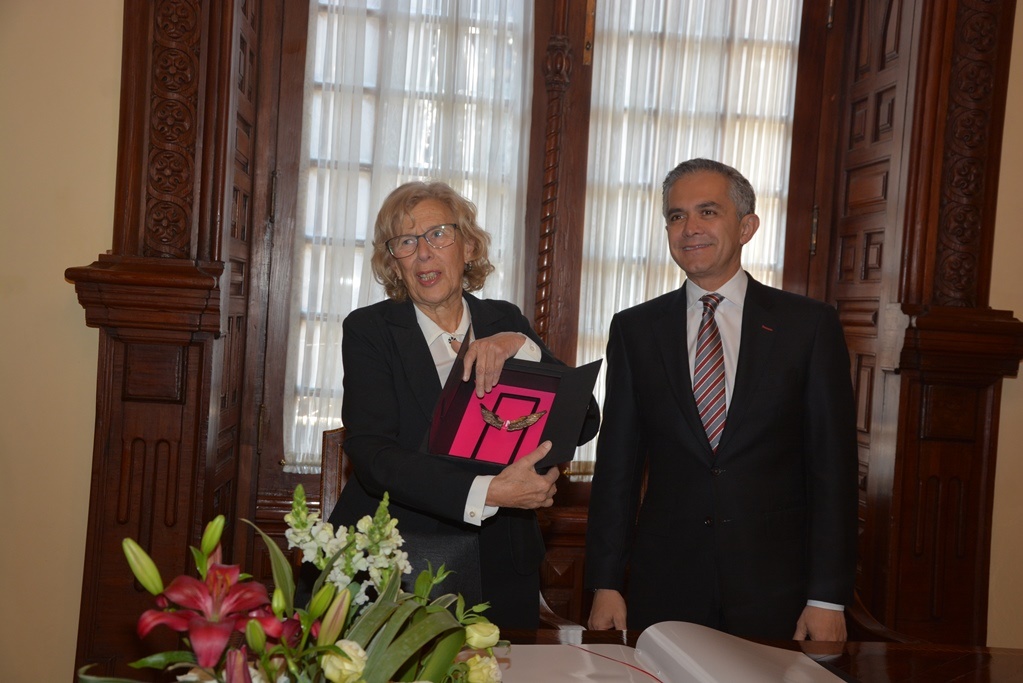Las relaciones entre Madrid y Ciudad de México se fortalecen y estrechan día a día. Hoy, coincidiendo con la visita de la alcaldesa de Madrid, Manuela Carmena, a la capital mexicana, ha firmado un memorando de colaboración con el jefe de Gobierno, Miguel Ángel Mancera, en el que ambos plasman la voluntad compartida de hacer aún más fuertes los vínculos que unen a las dos capitales. Durante su visita a la sede consistorial, la alcaldesa ha sido nombrada Huésped Distinguida de la Ciudad de México, después del encuentro mantenido con el regidor mexicano.